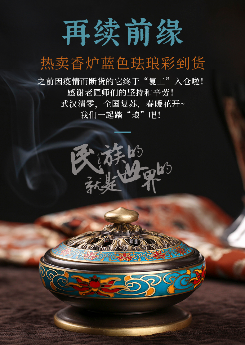 《珐琅彩香炉》铜炉 景泰蓝工艺