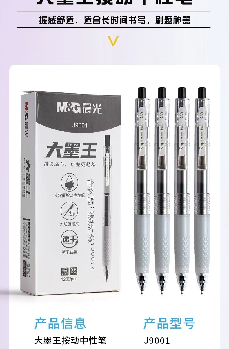 【一支顶4支!刷题神器来了🐂】晨光大墨王✍️速干不晕染,1500米超长书写📏让作业轻松到底!大墨王来啦 晨光AGPJ9001水笔0.5大墨王系列按动ST笔头 速干油墨按动中性笔