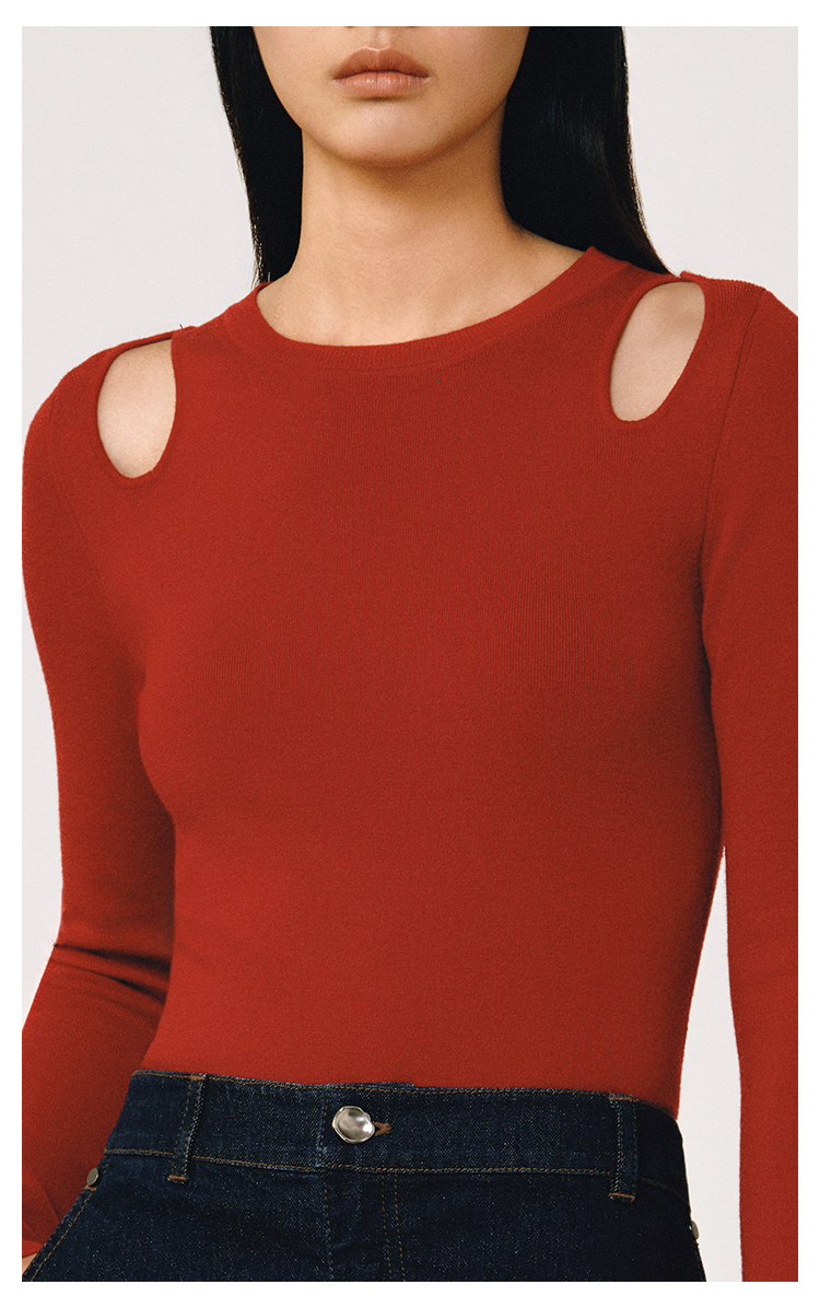 【JASON WU】(多色)25年新款肩部镂空简约百搭上衣针织衫女