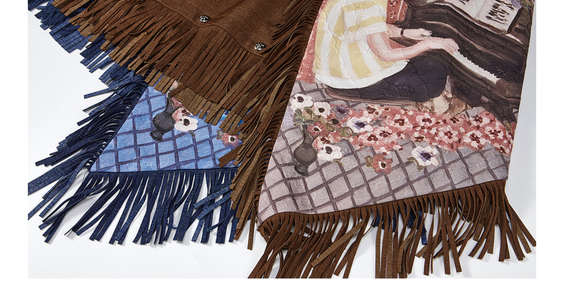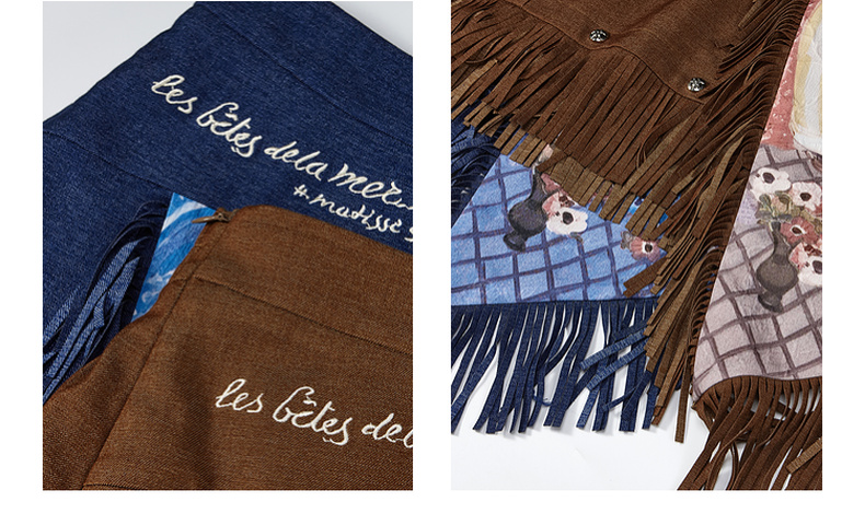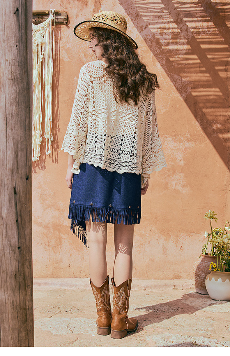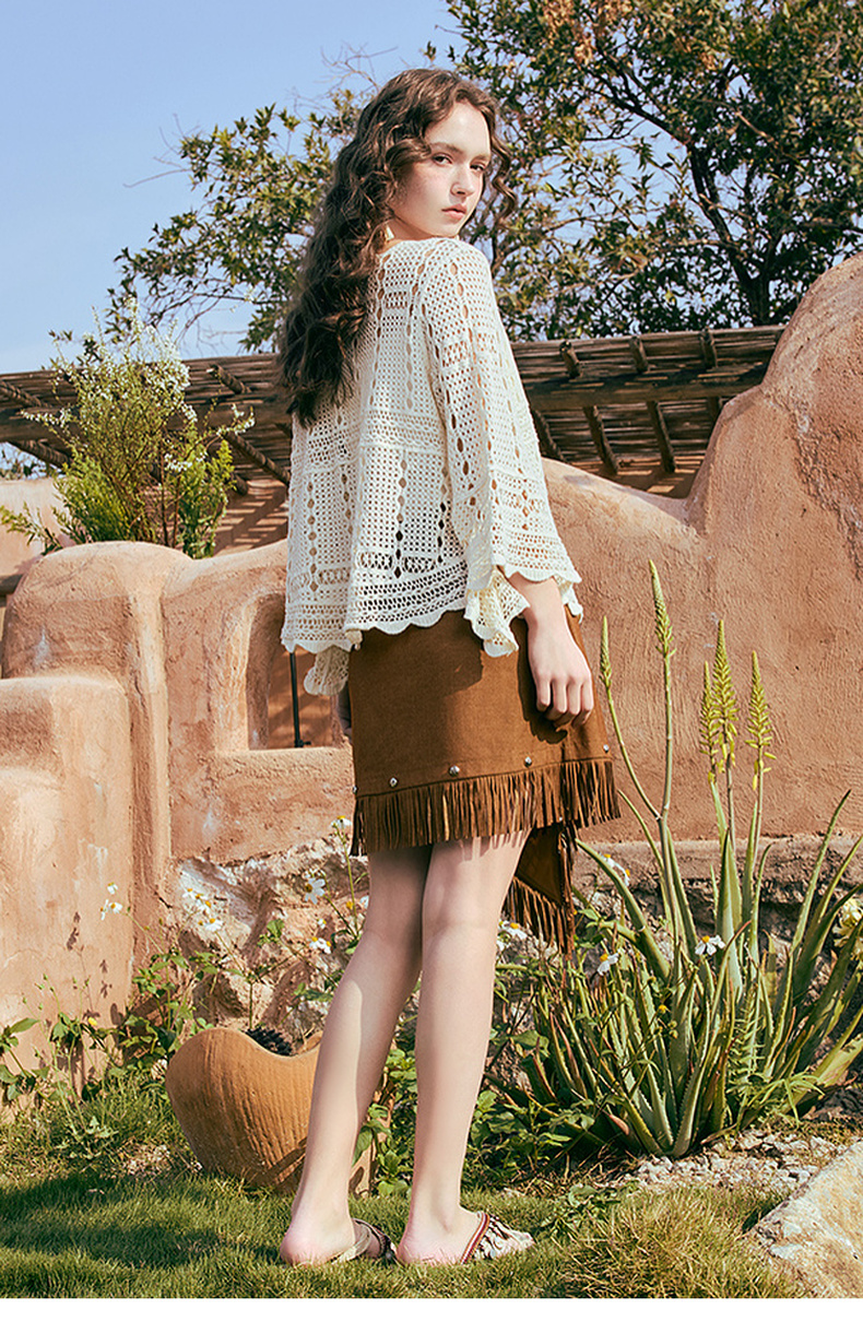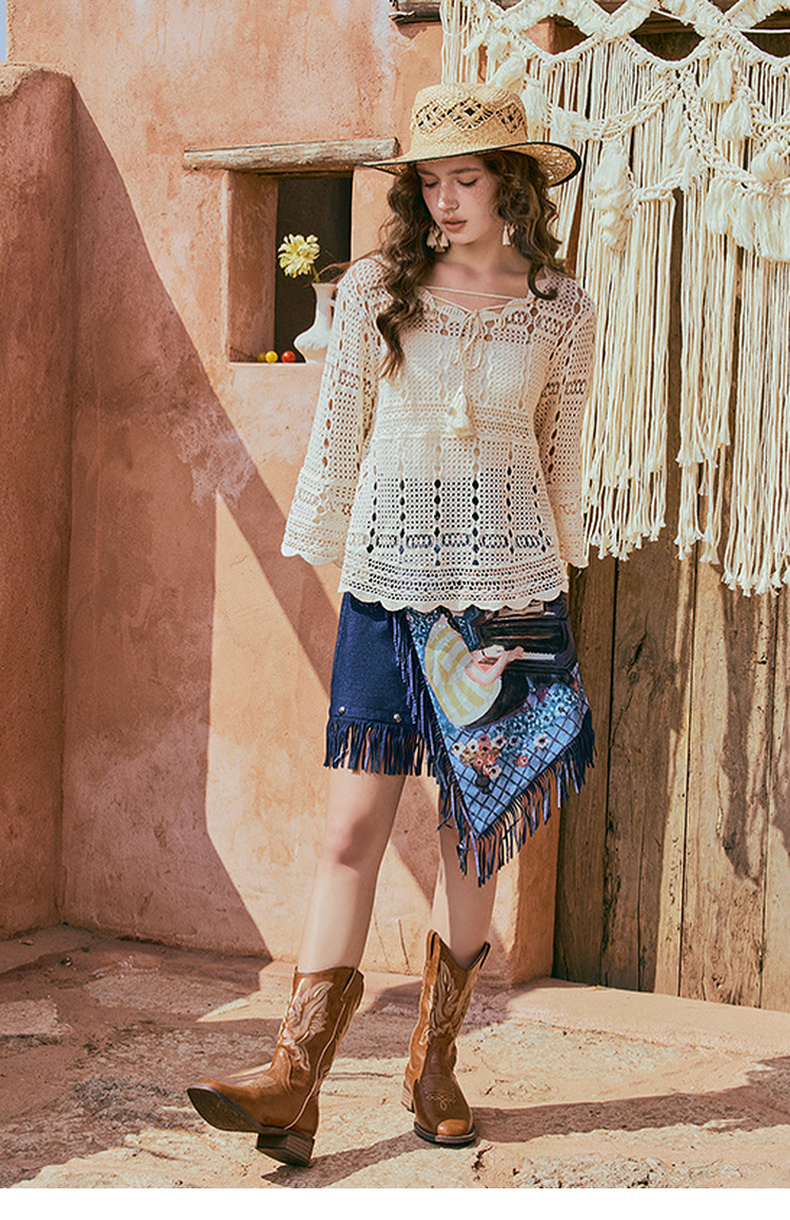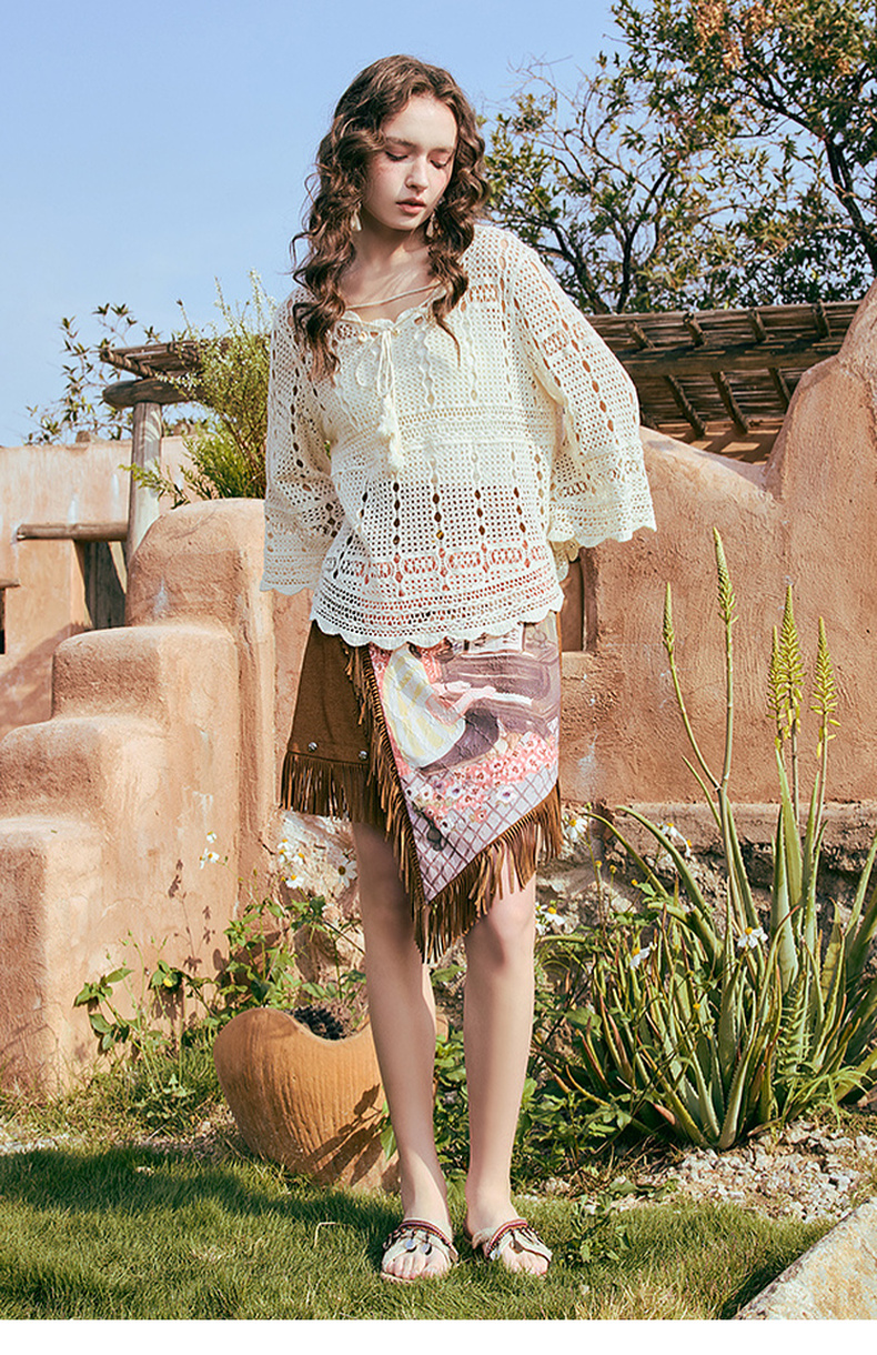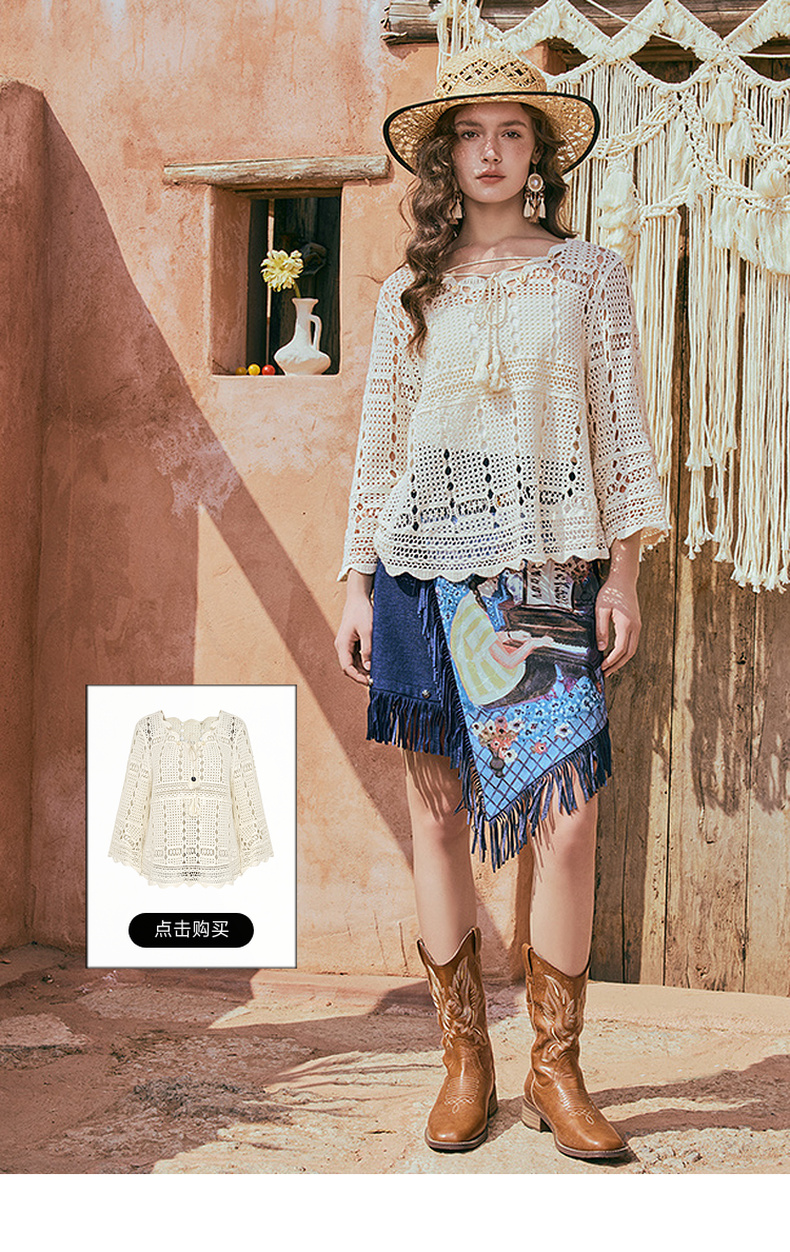 两三事游吟夜曲2025夏新款铆钉装饰印花刺绣流苏不规则裙摆半身裙