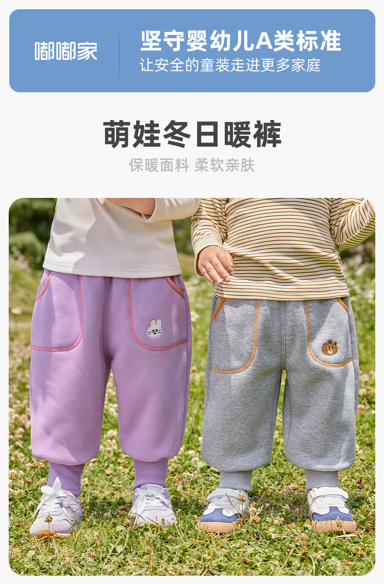 嘟嘟家儿童秋季加厚长裤男童内里加绒裤子女童保暖休闲裤秋装宝宝