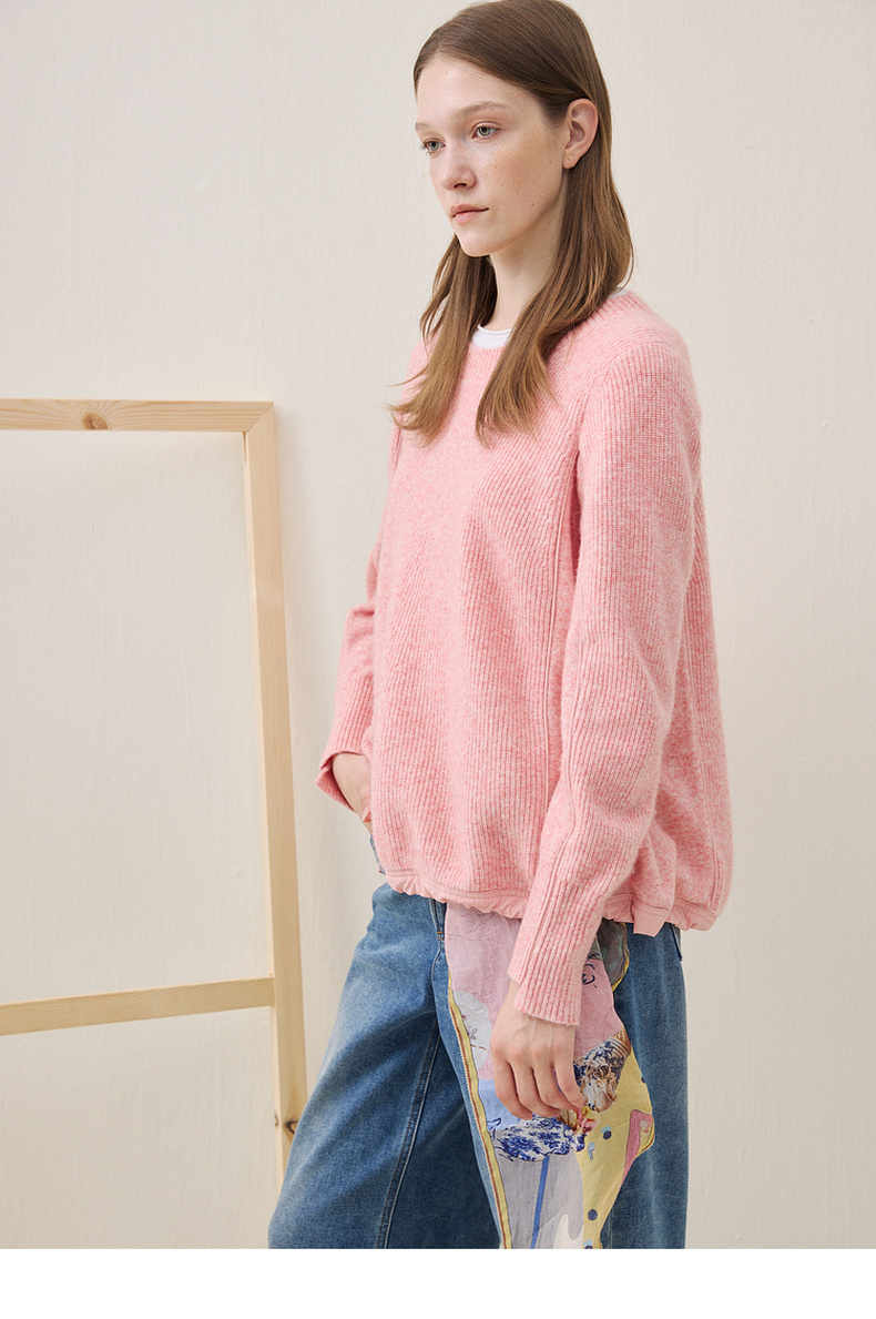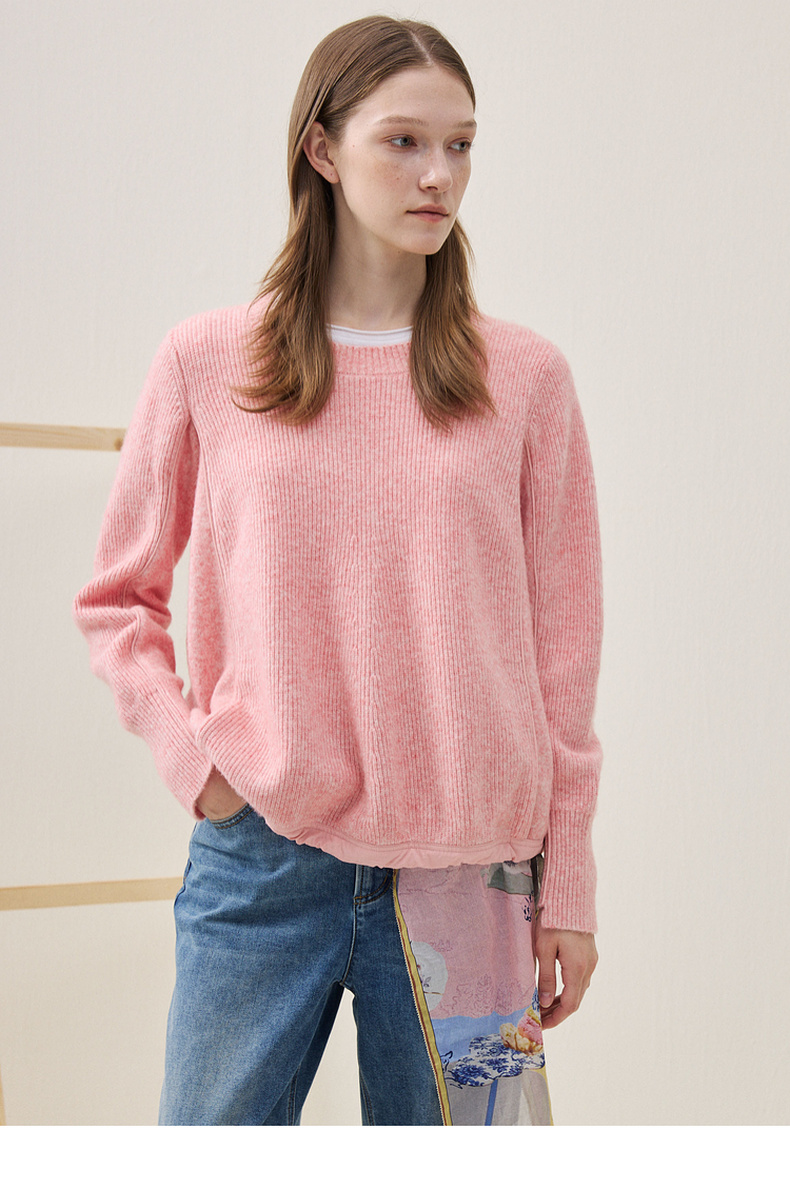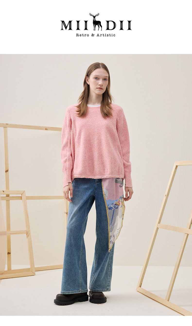 谜底套头针织衫长袖2025冬季新品宽松设计感下摆毛衣女254MZ1860