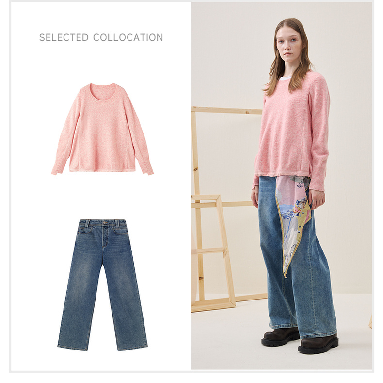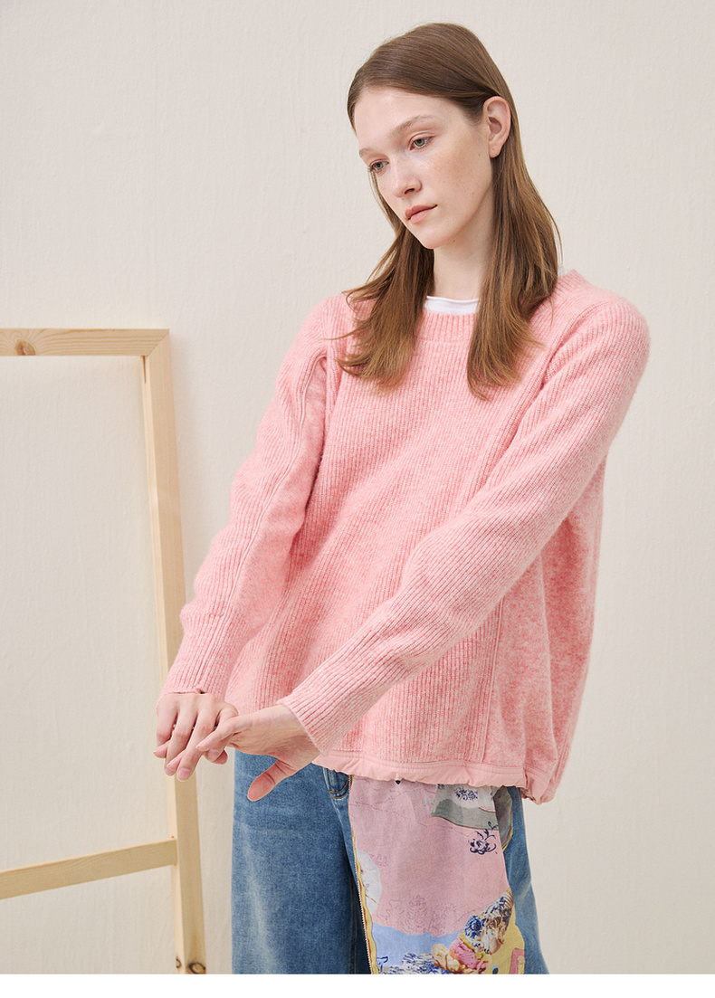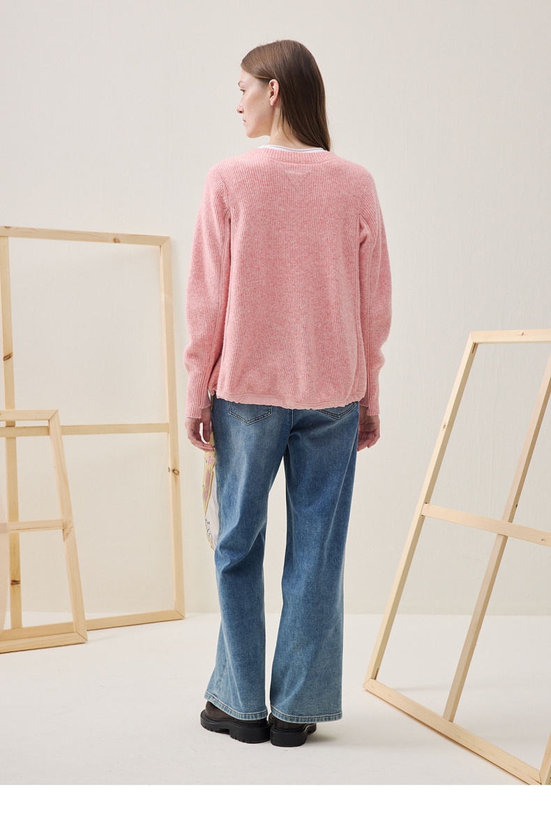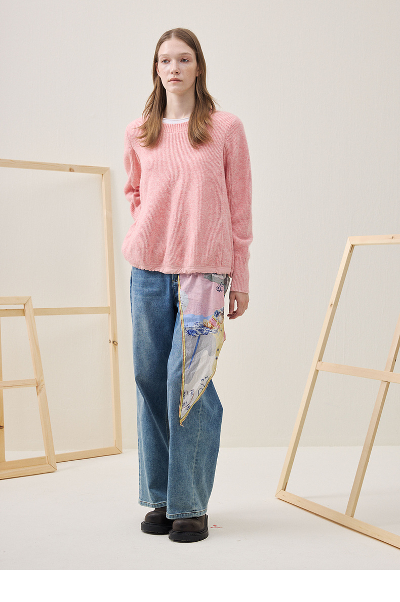 谜底套头针织衫长袖2025冬季新品宽松设计感下摆毛衣女254MZ1860