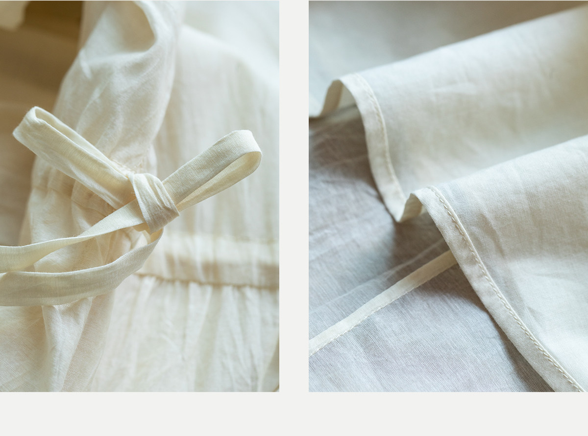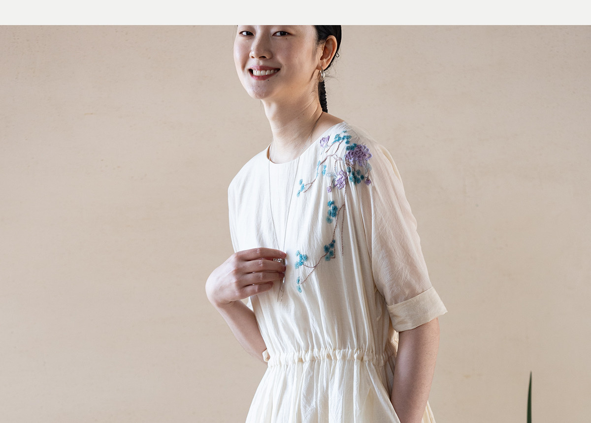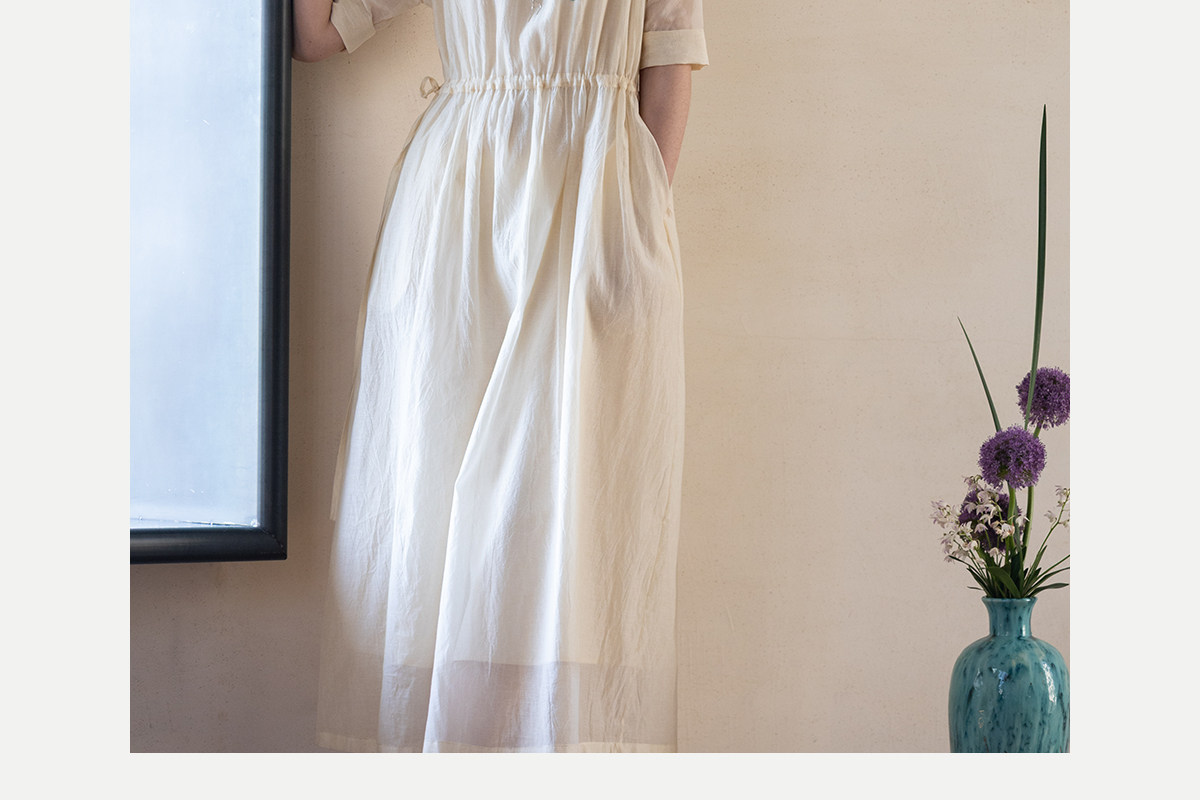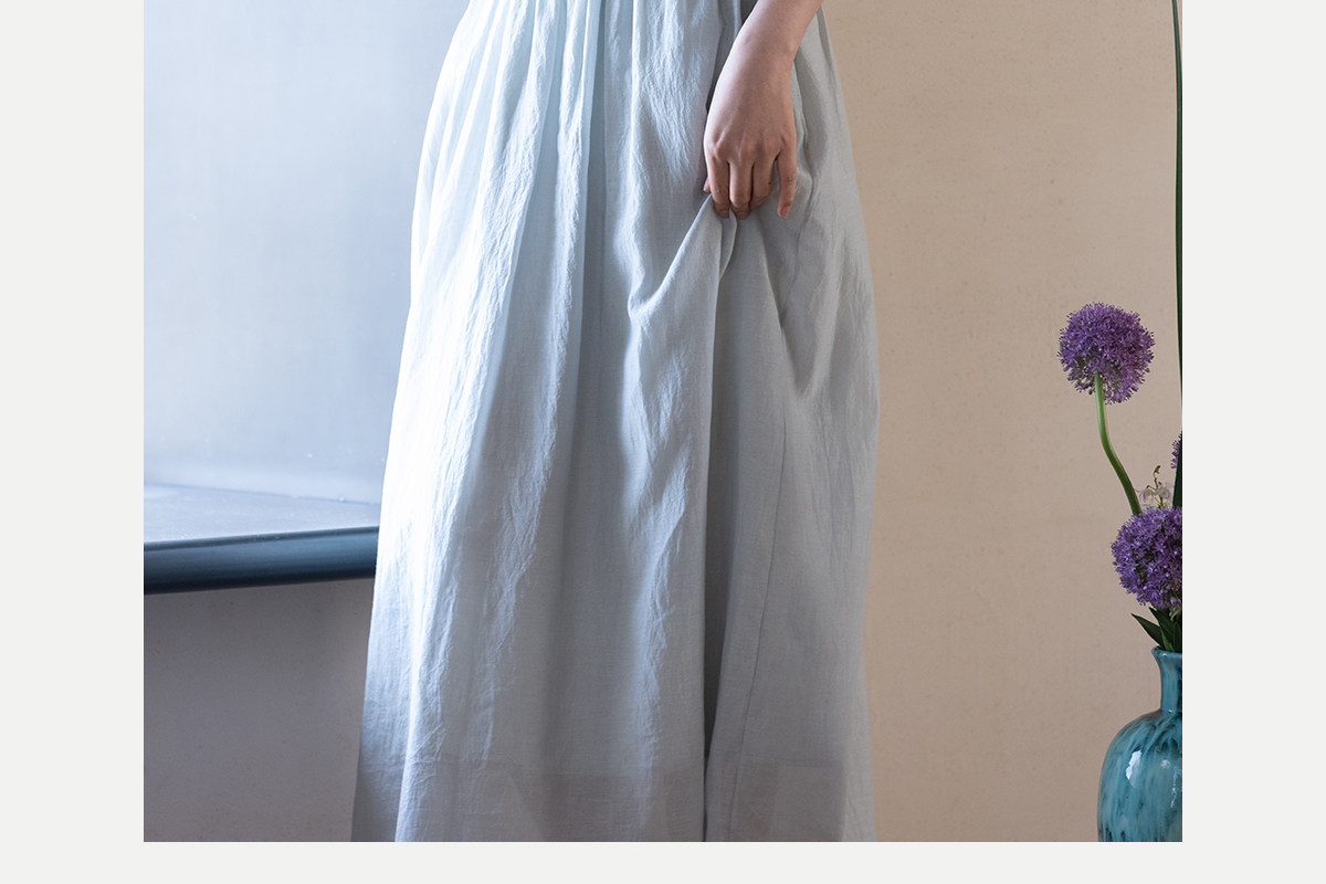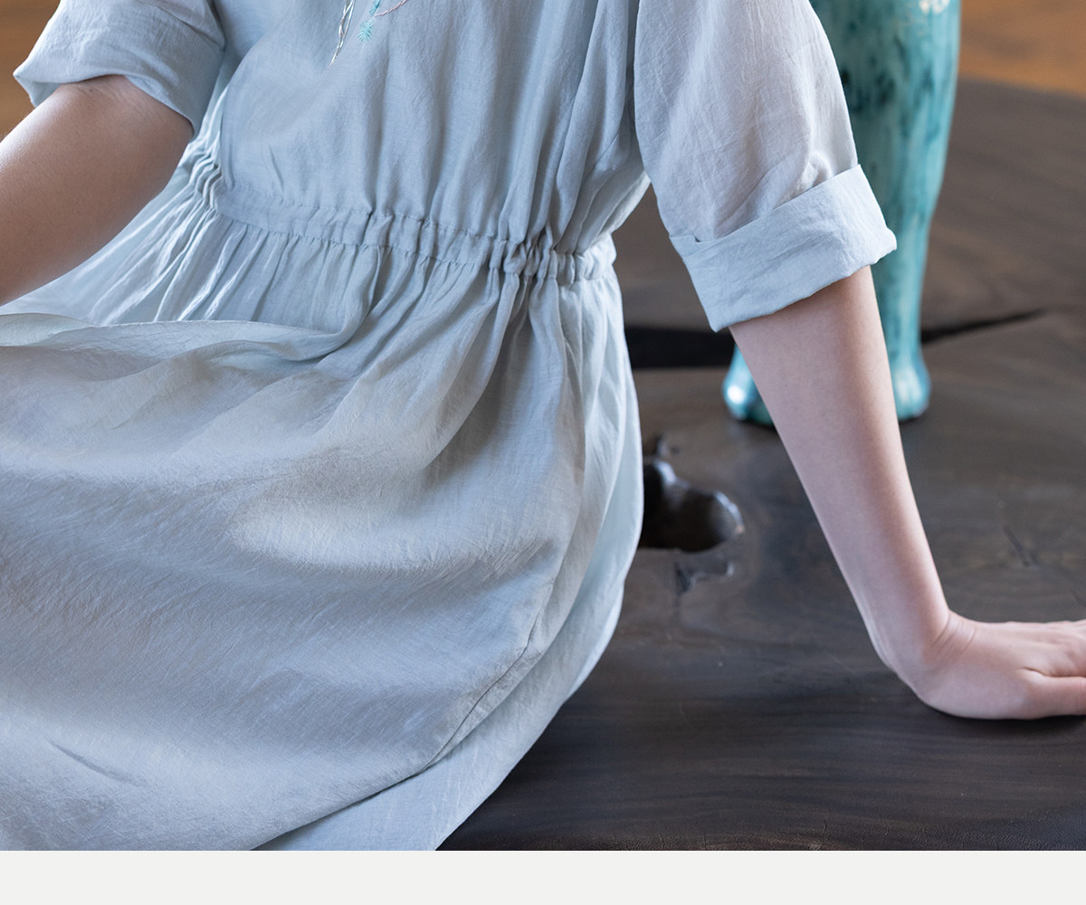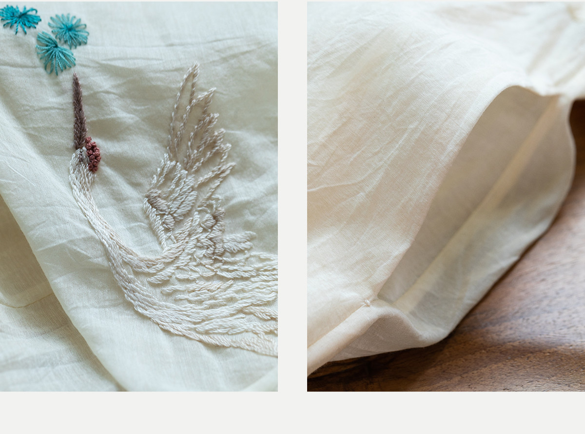 牧衣游原创 丝棉手工刺绣连衣裙女轻薄炒色宽松圆领文艺长裙 流夏