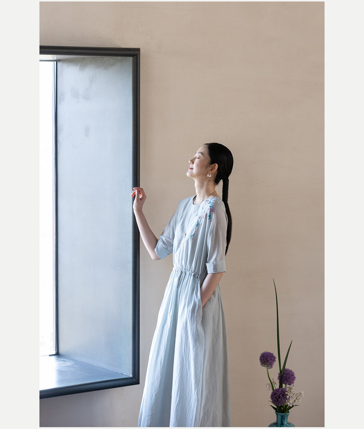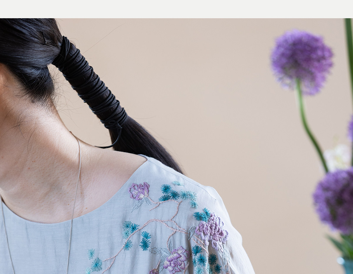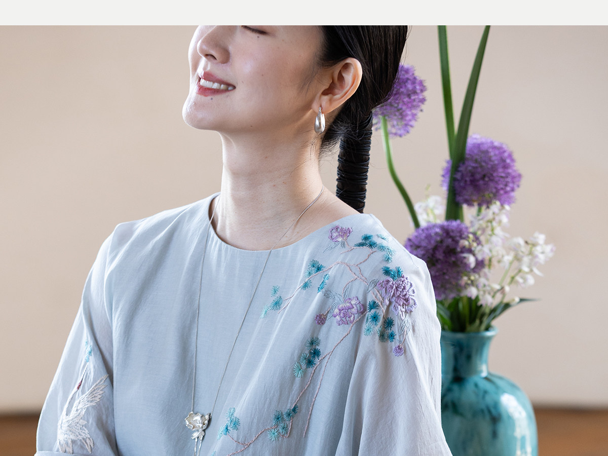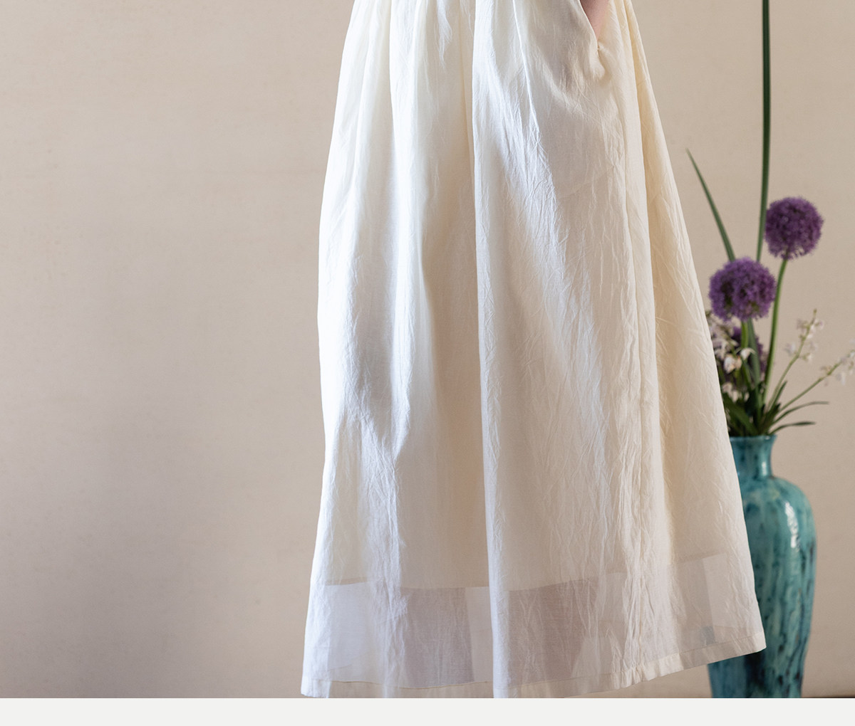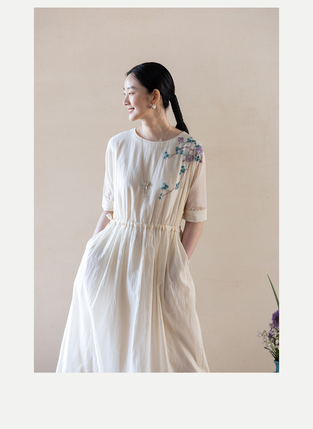 牧衣游原创 丝棉手工刺绣连衣裙女轻薄炒色宽松圆领文艺长裙 流夏