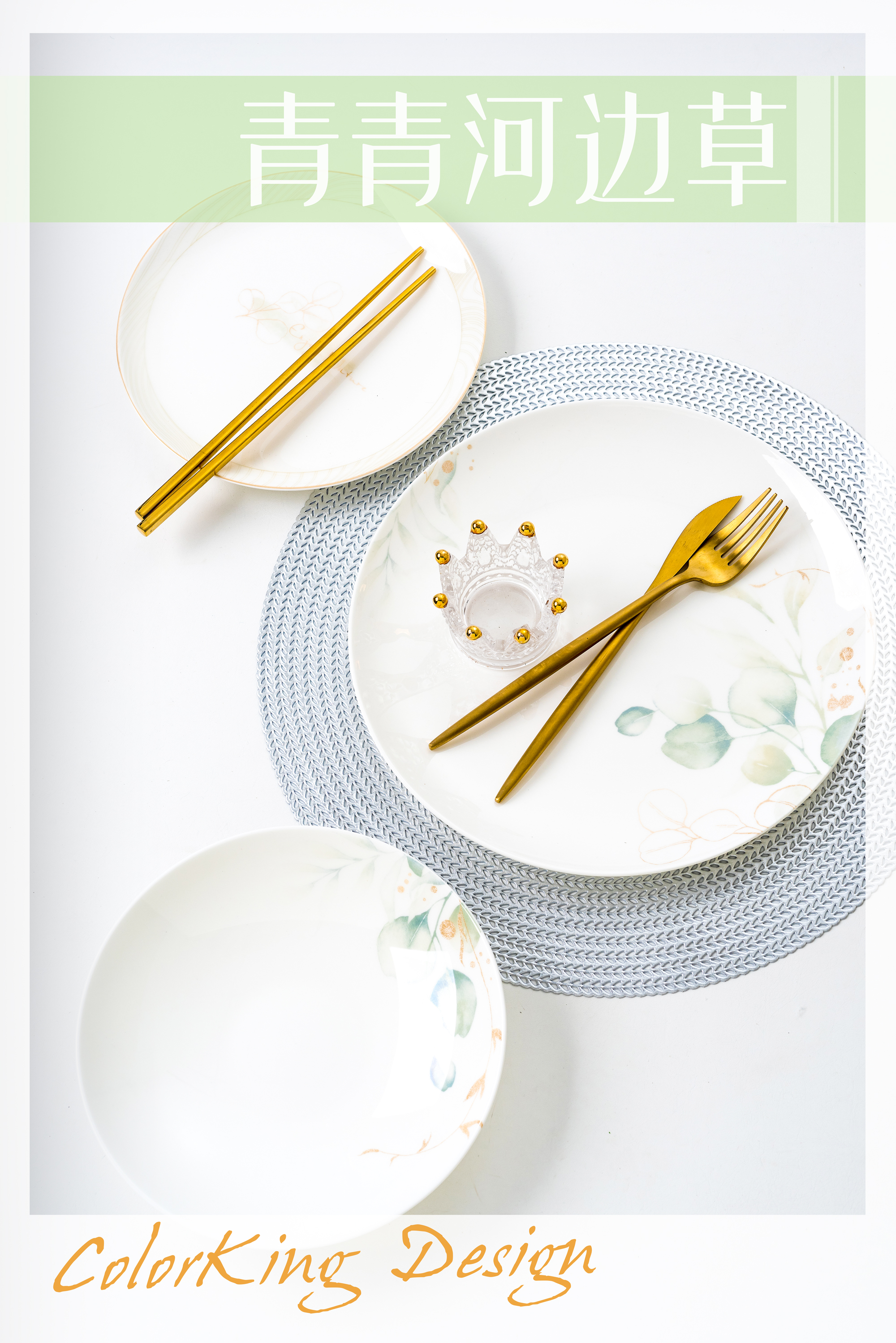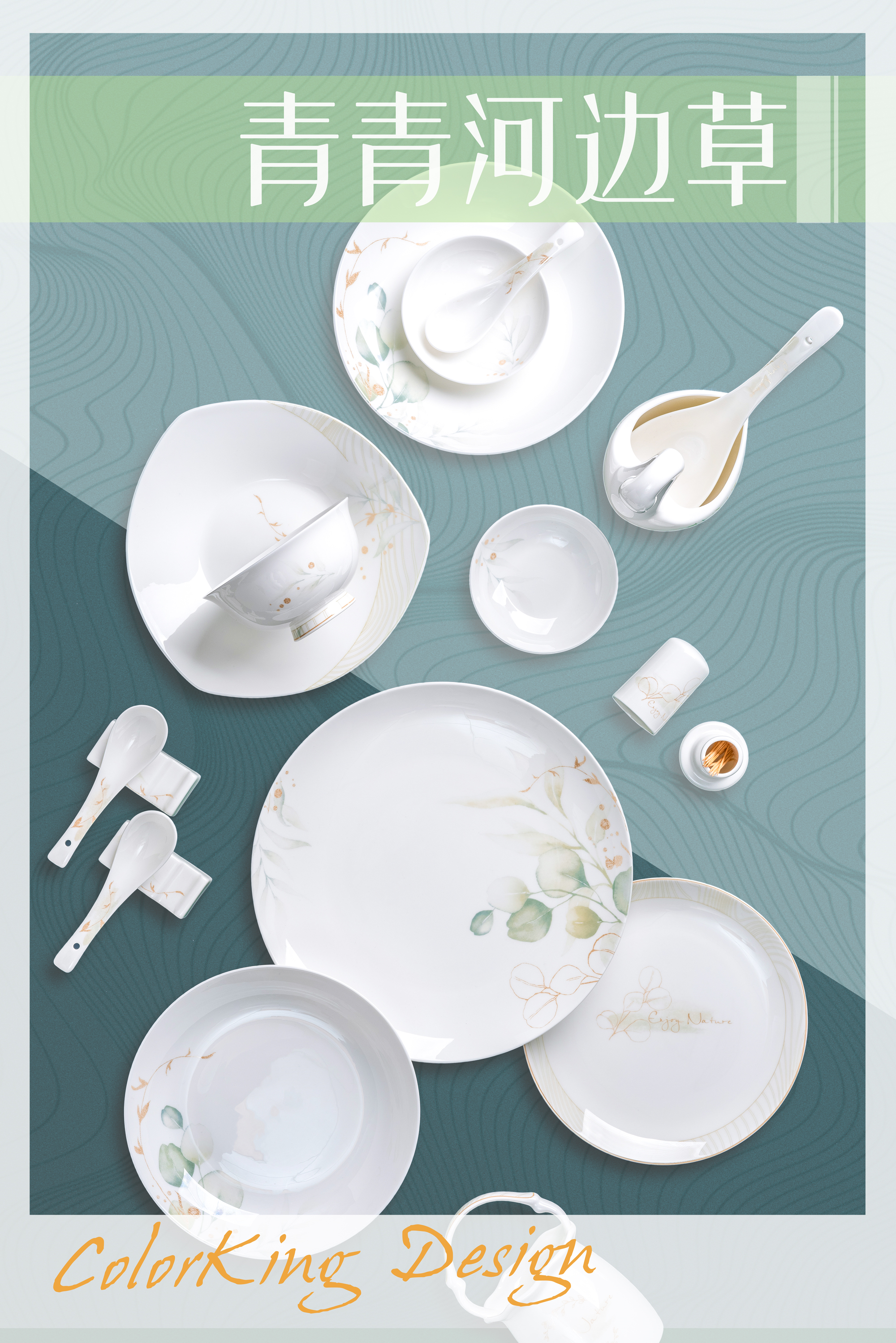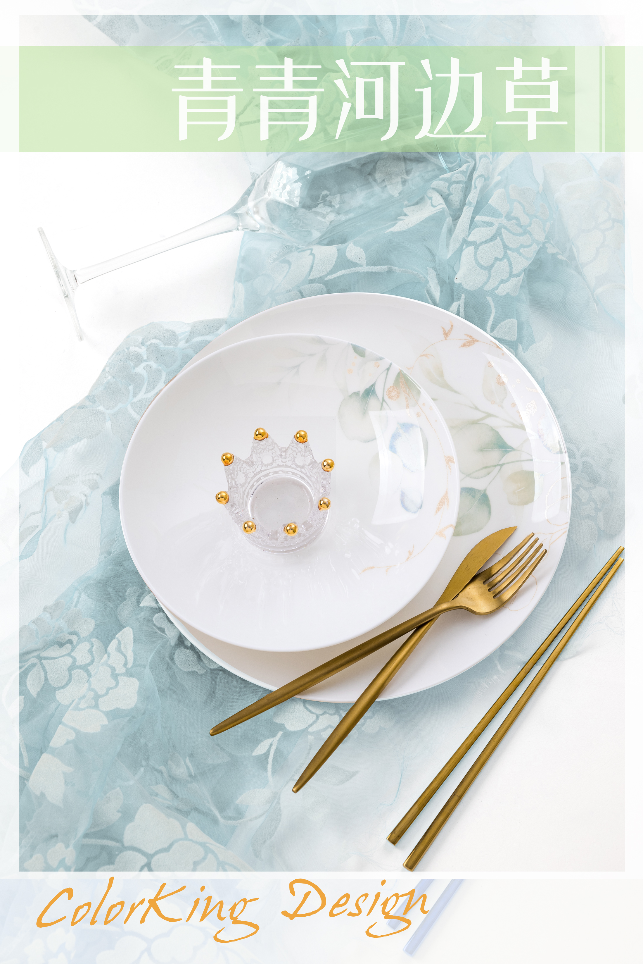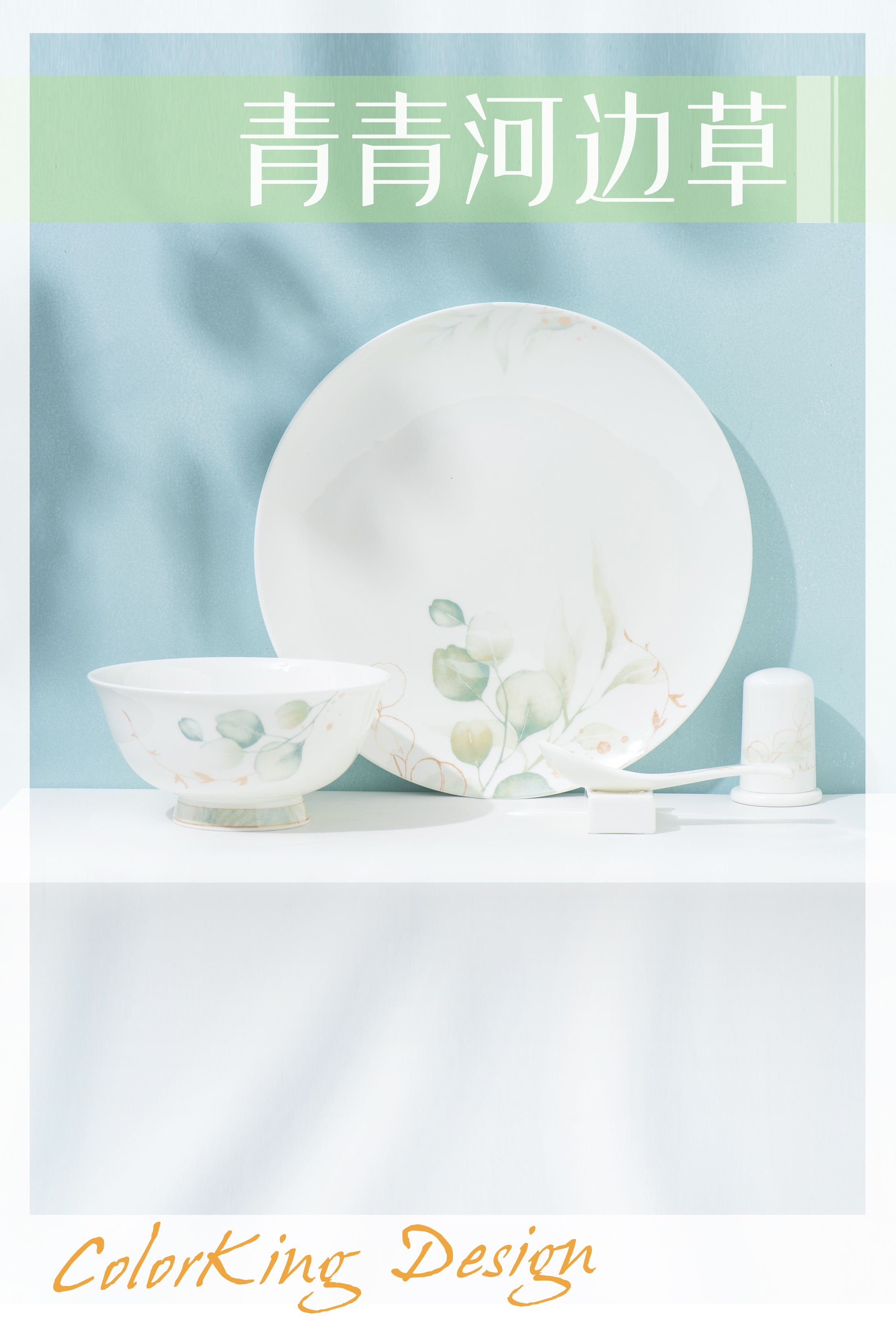 凡瑞斯唐山骨瓷中式餐具青青河边草10人用50头