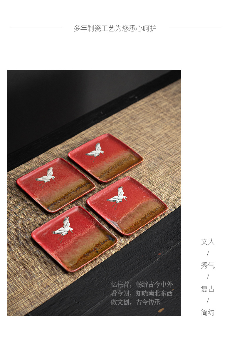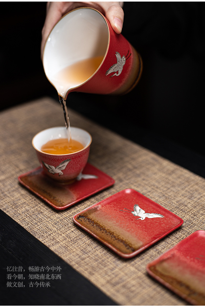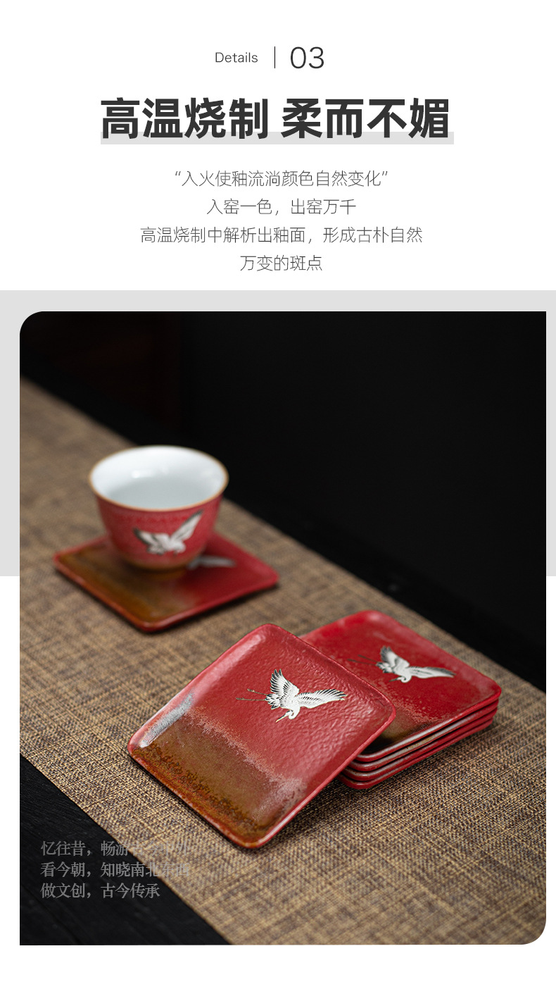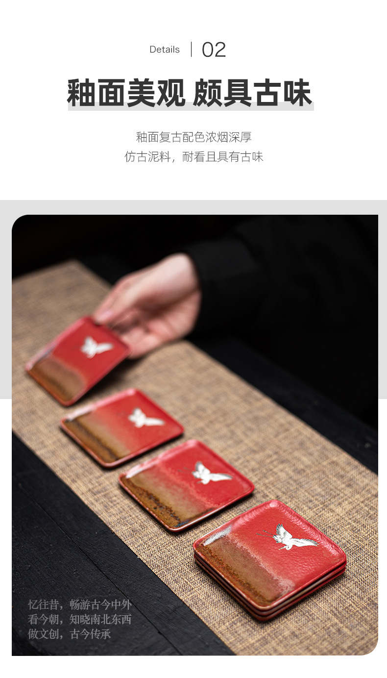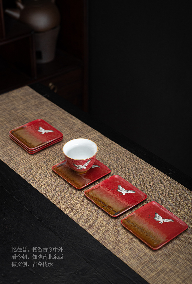 宫墙红中式方形杯垫陶瓷功夫茶具配件茶道茶艺茶台轻奢茶桌隔热垫