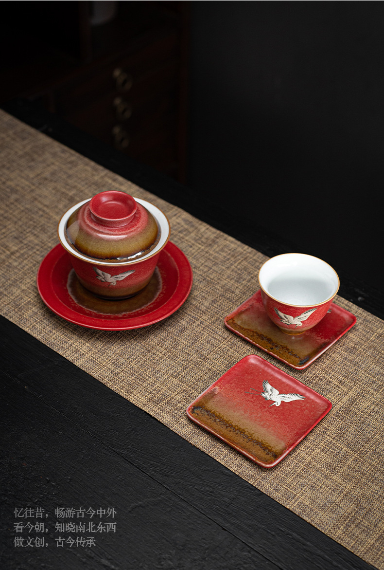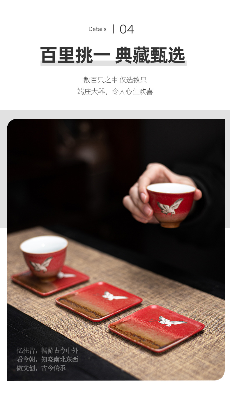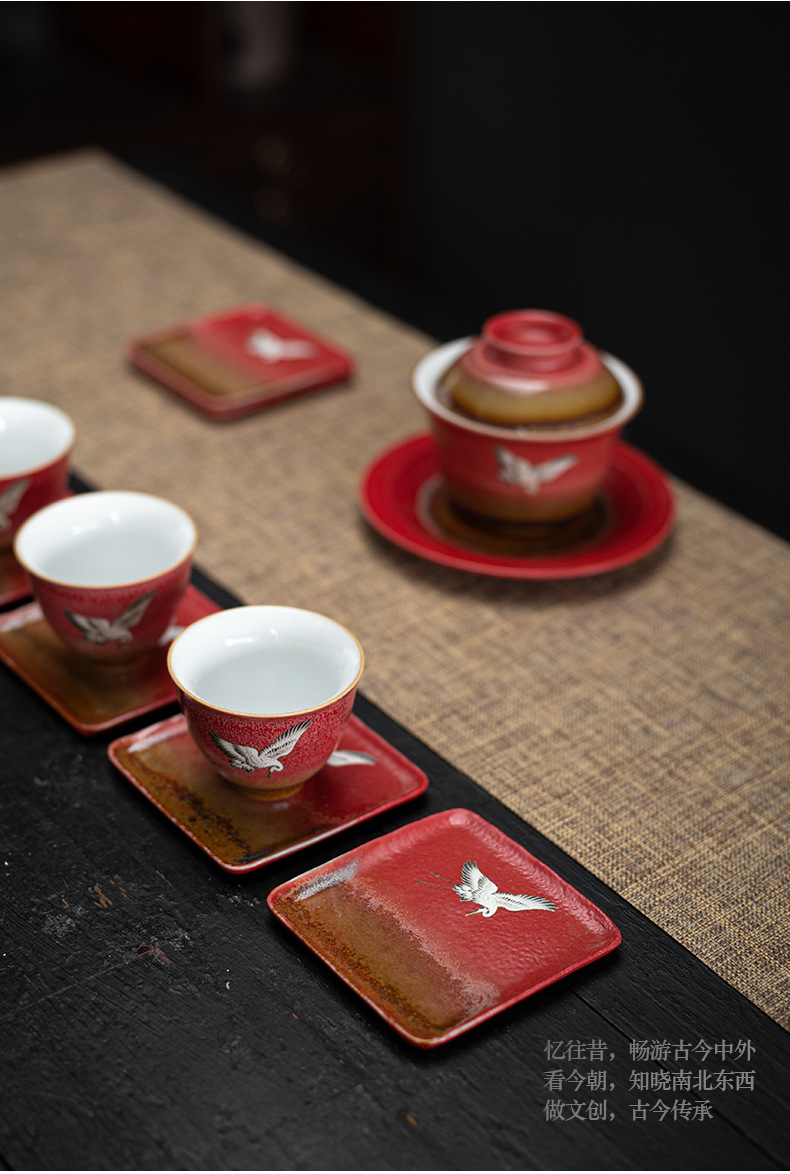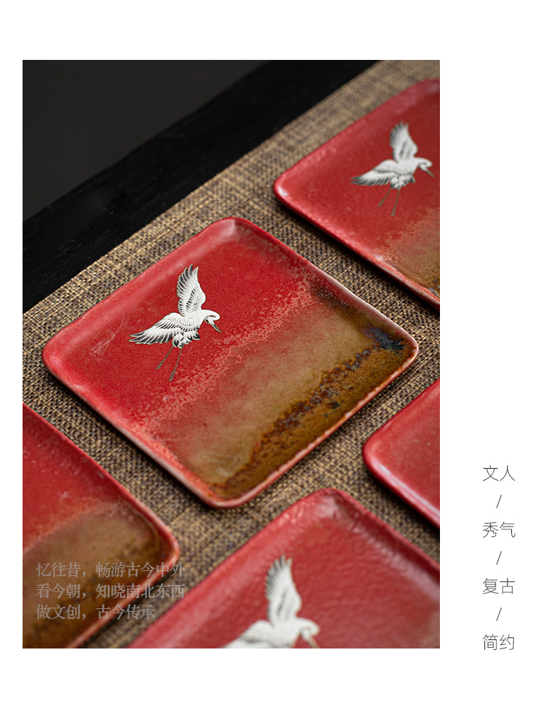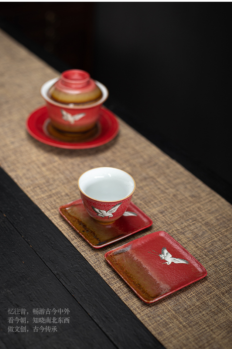 宫墙红中式方形杯垫陶瓷功夫茶具配件茶道茶艺茶台轻奢茶桌隔热垫