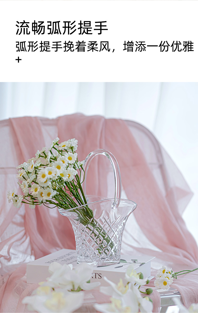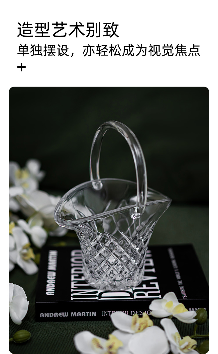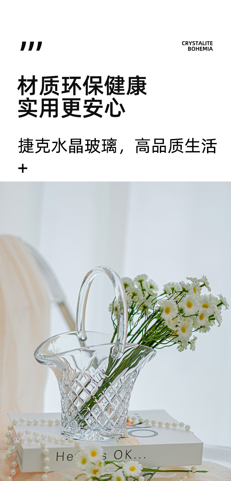 BOHEMIA捷克进口水晶玻璃花篮ins家用高档水果篮轻奢创意摆件送礼钻石经典花篮摆件
