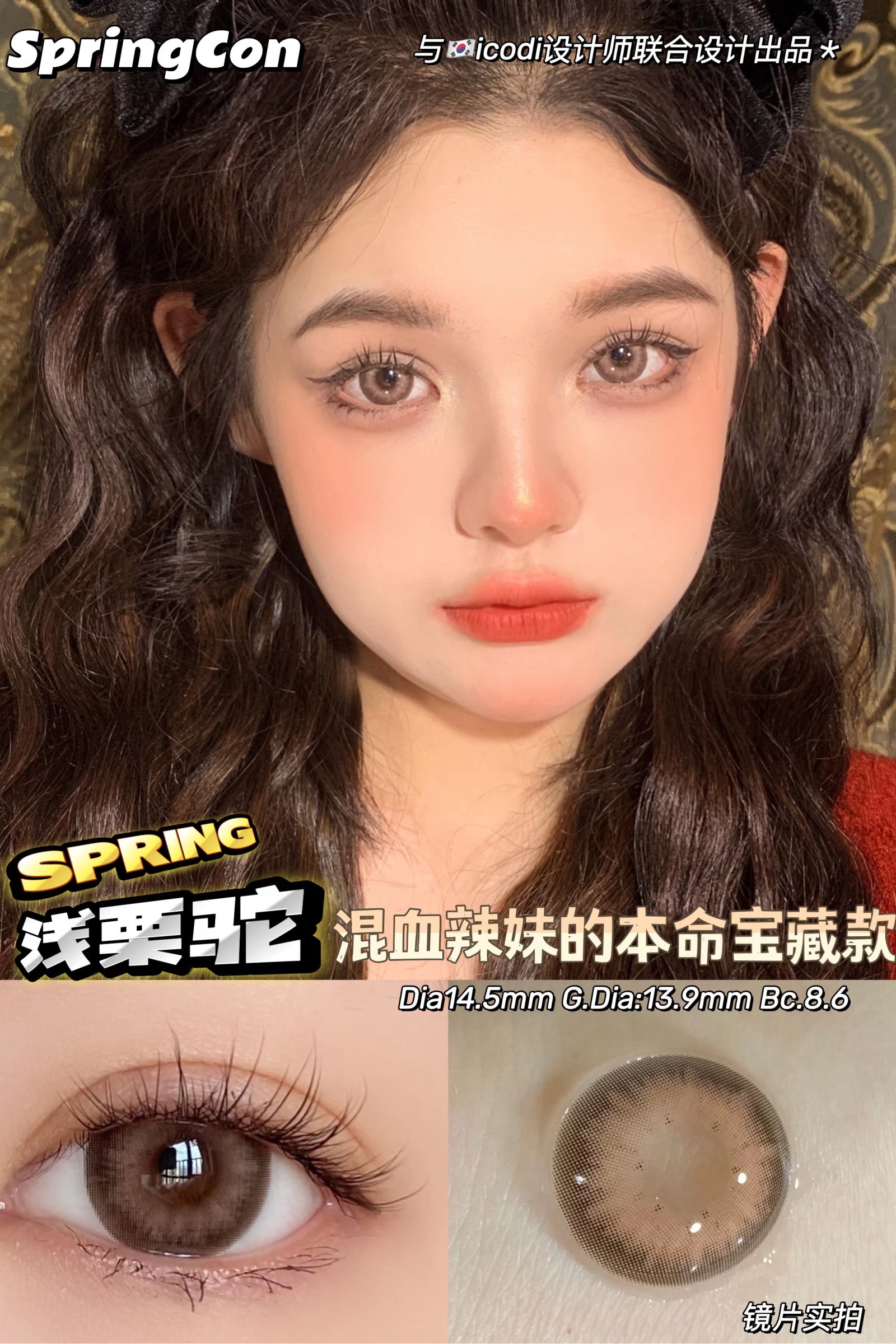 Springcon 浅栗驼 年抛 2片 14.5mm 参考着色13.9mm 基弧8.6 含水38% 韩国进口
