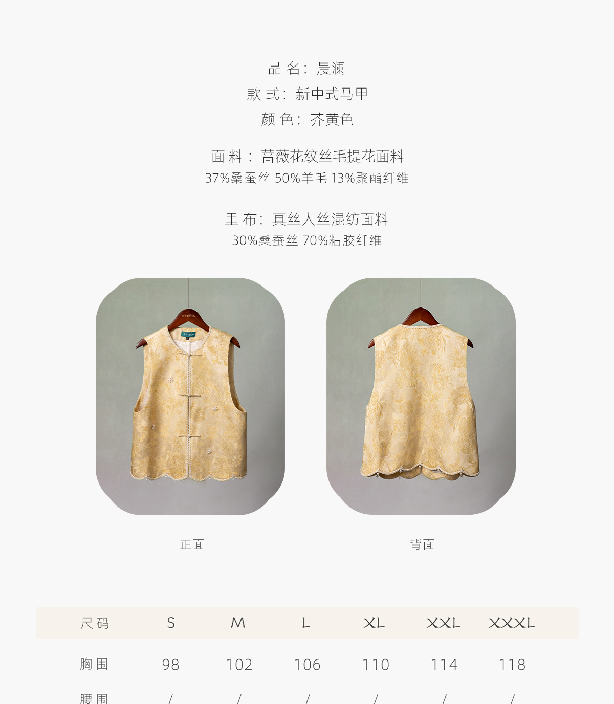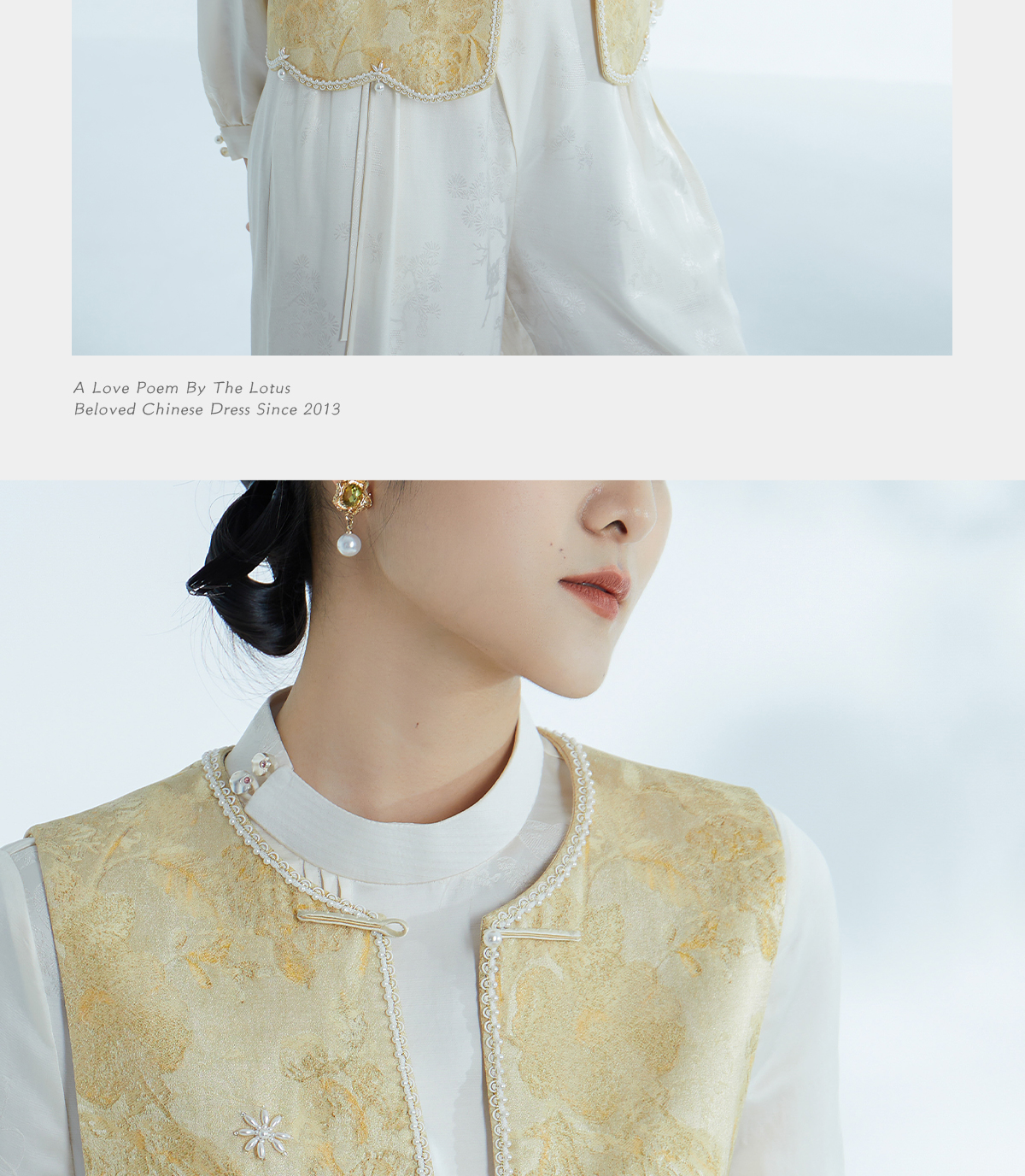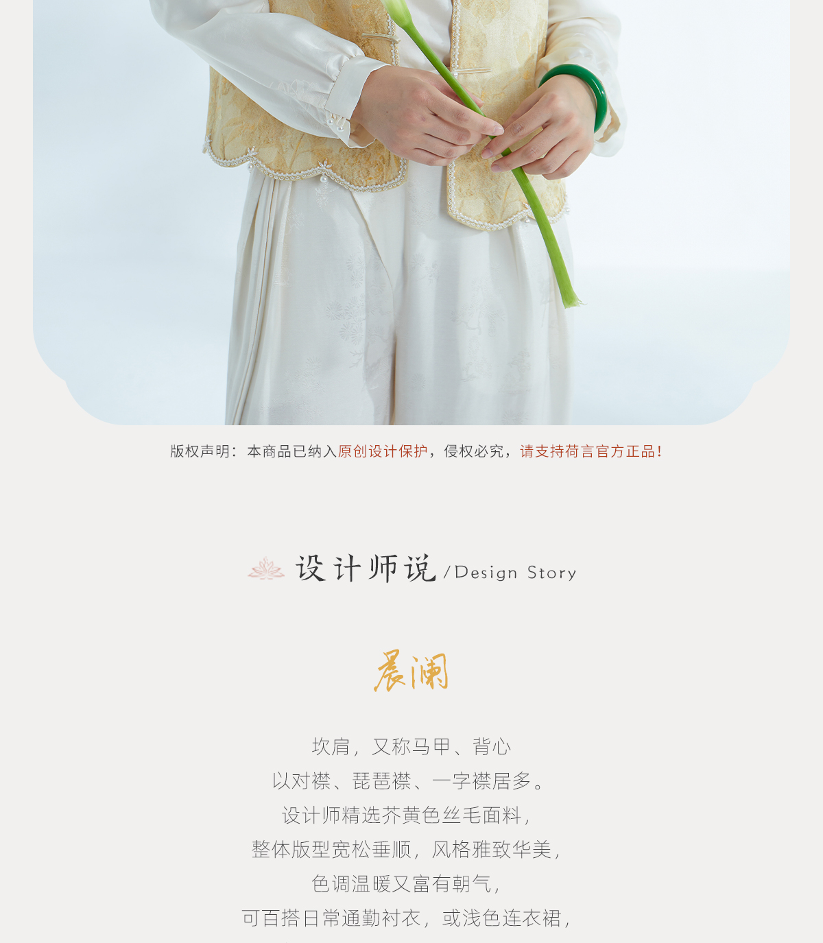 荷言HEYEN 晨澜 真丝羊毛蔷薇提花新中式马甲手工雪花钉珠波浪摆高定系列