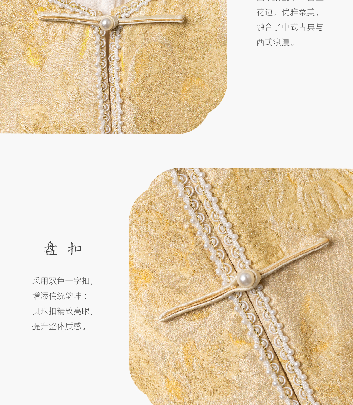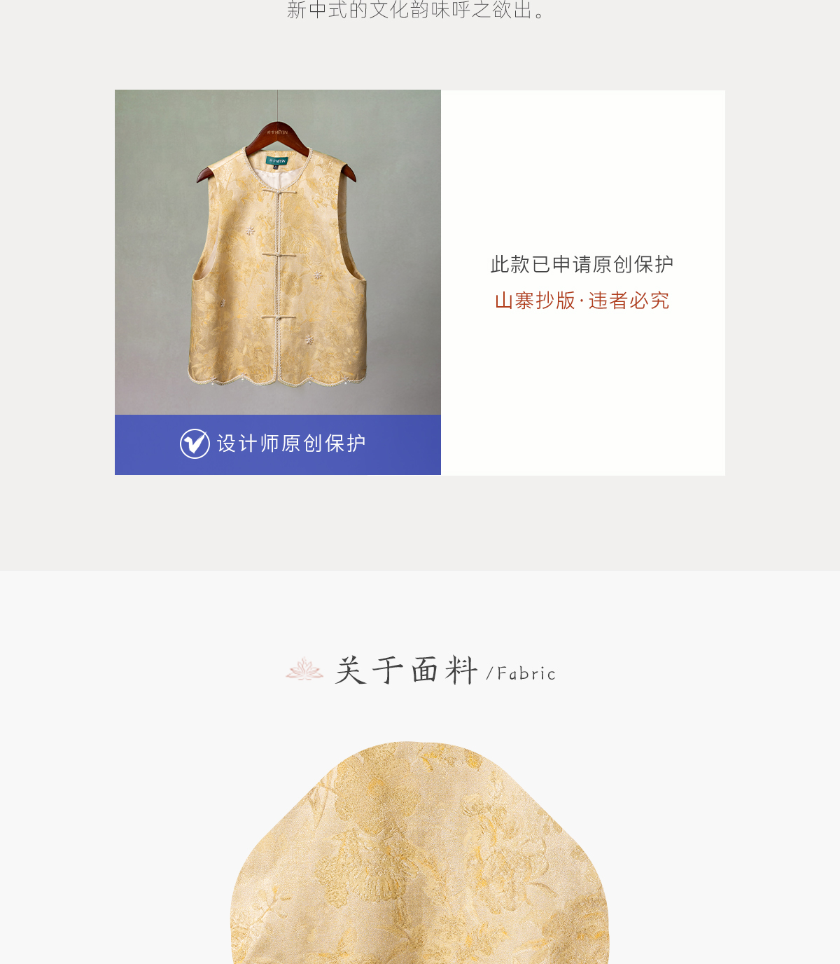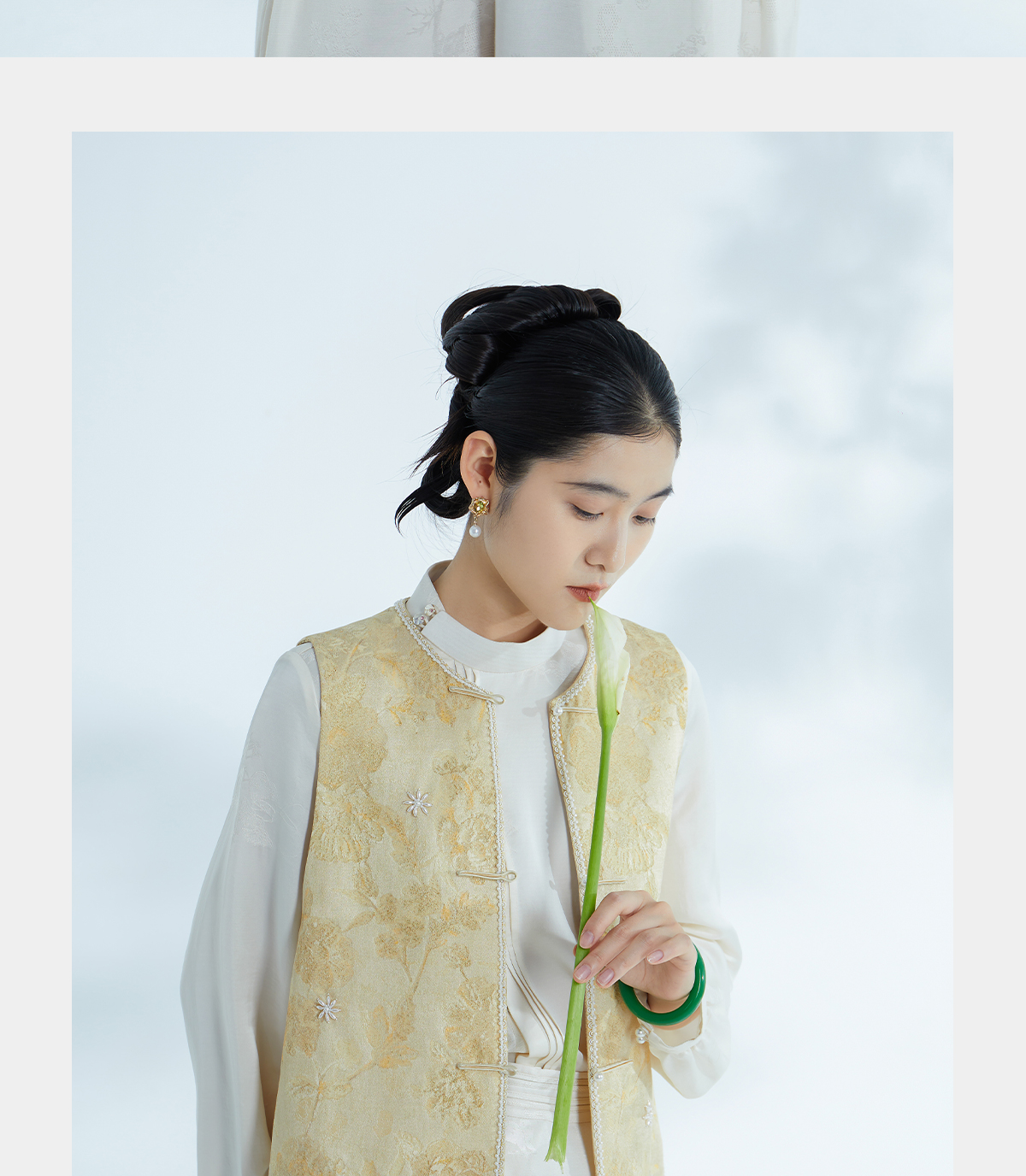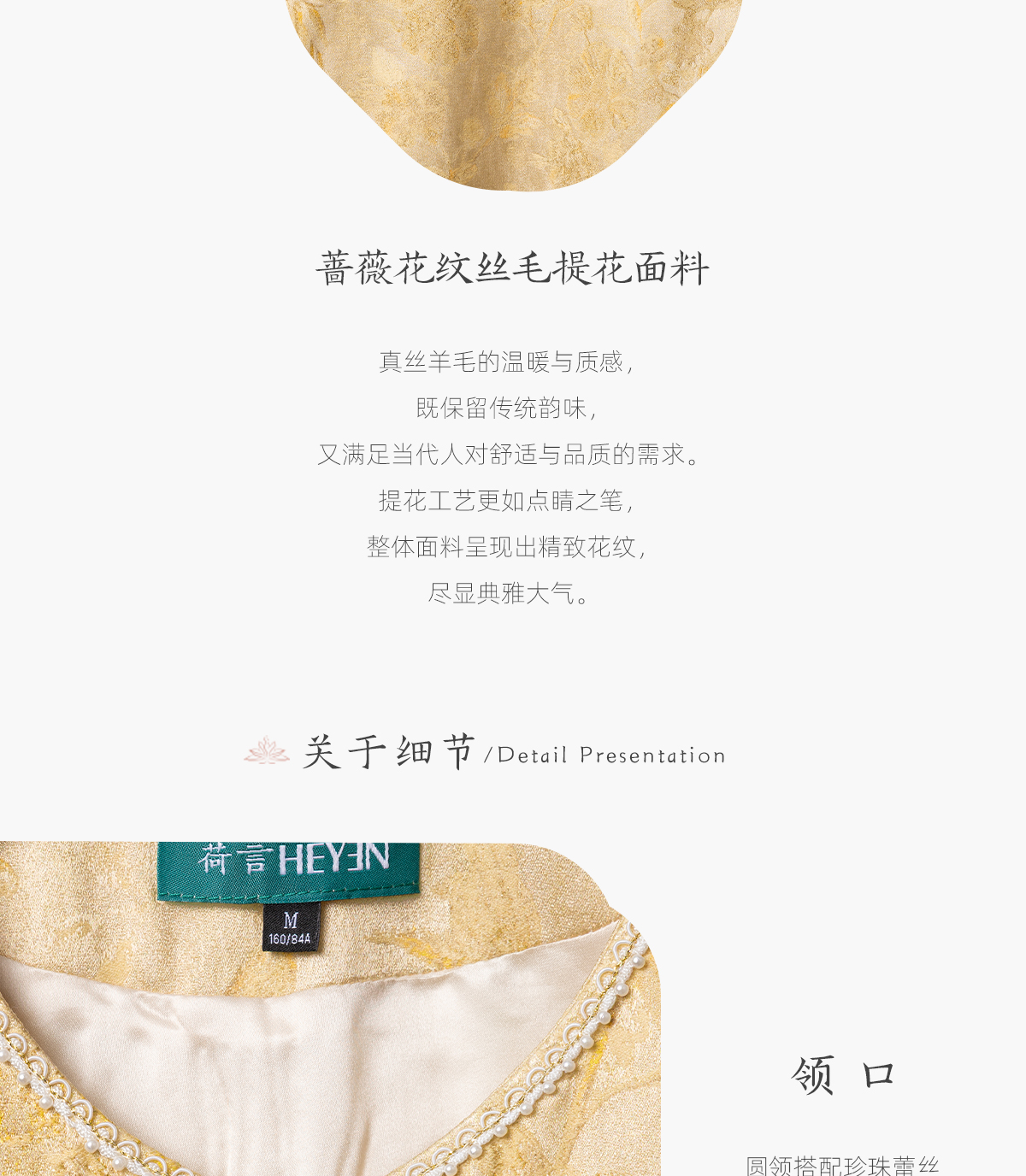 荷言HEYEN 晨澜 真丝羊毛蔷薇提花新中式马甲手工雪花钉珠波浪摆高定系列