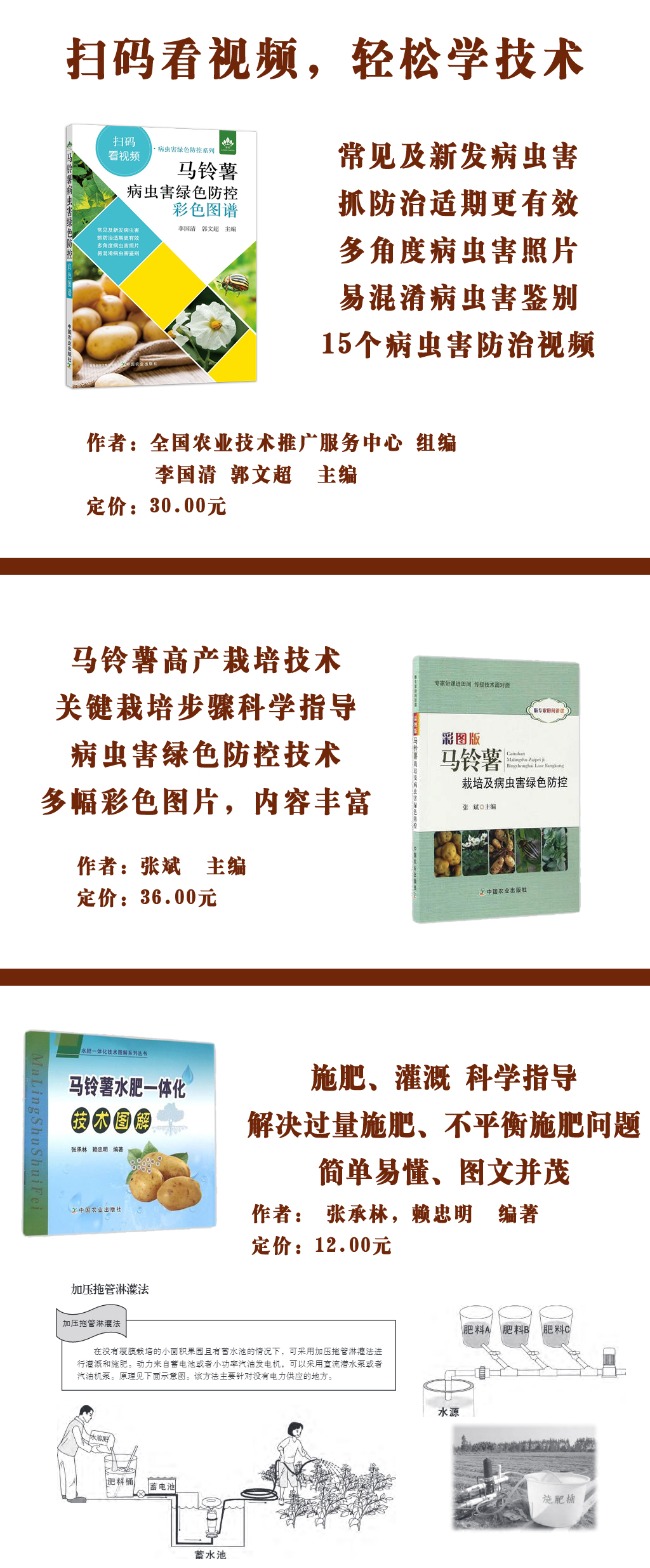 马铃薯栽培技术(3册)栽培技术+病虫害防治+水肥管理+视频技术指导
