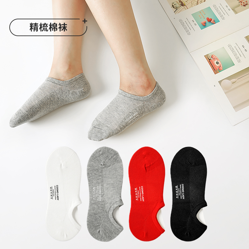 都市丽人简约系列精梳棉袜子中厚隐形袜本命年必备红品红色新年本命年红品LC3CA1