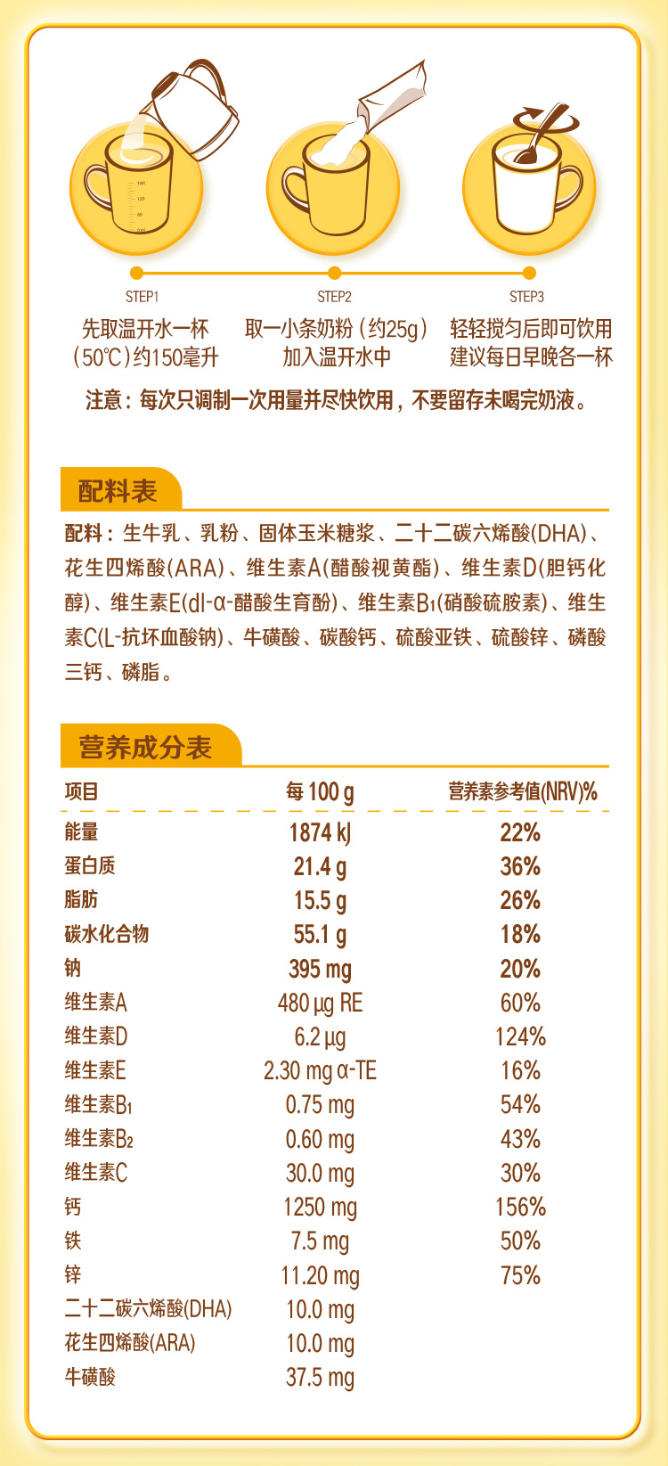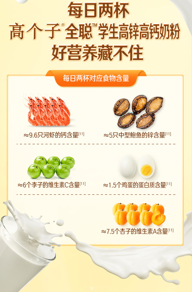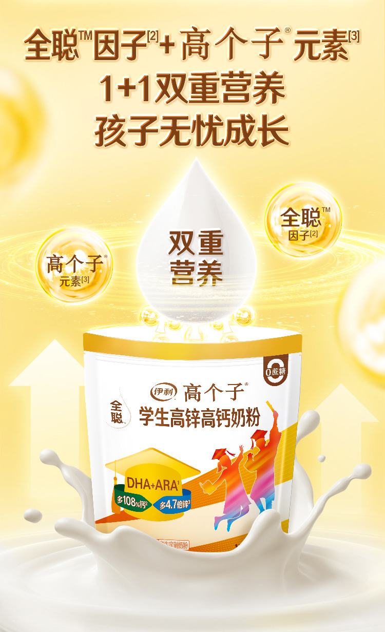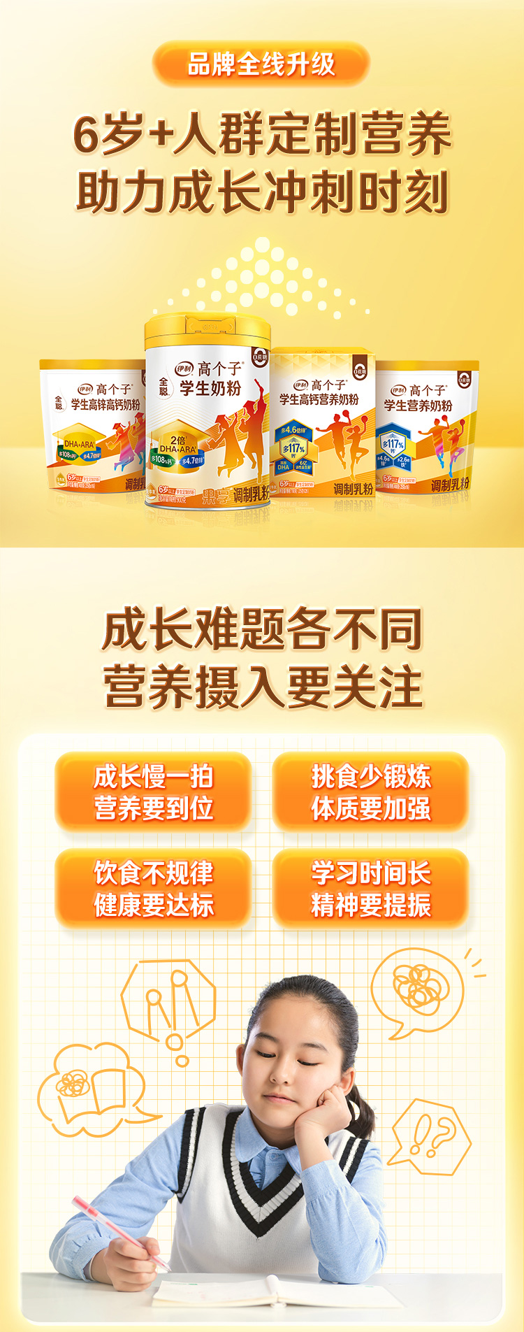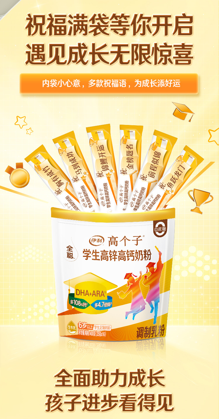 【商城优选】伊利学生全聪高锌高钙奶粉400g/袋(内含16小袋) 官方直营 新老包装随机发