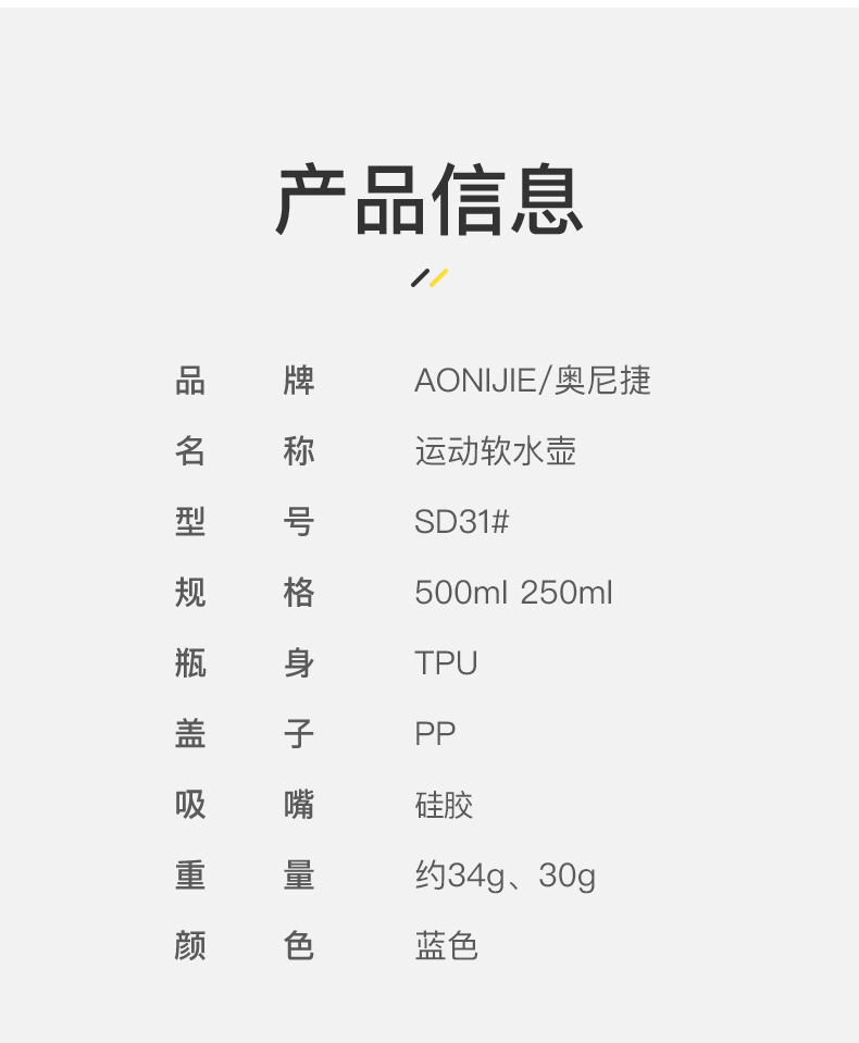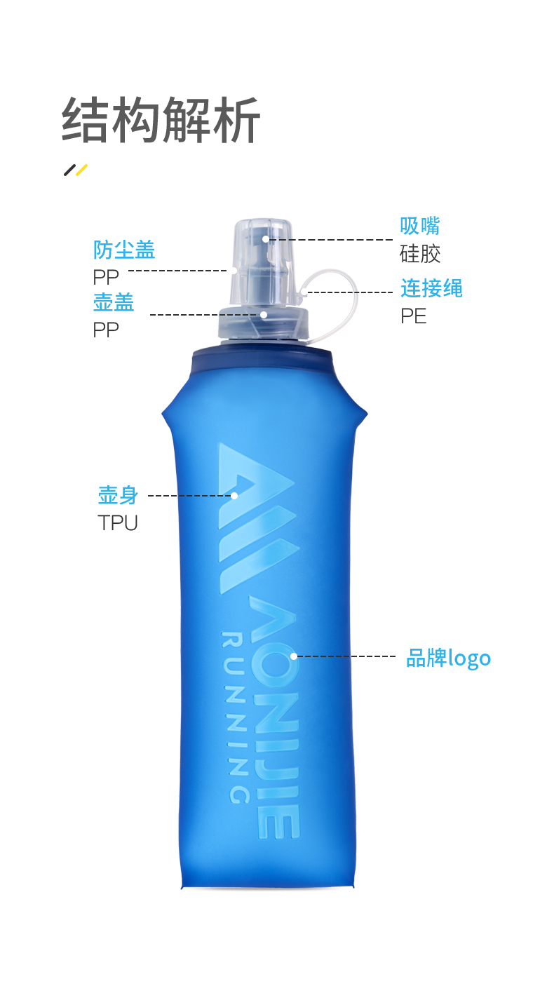 奥尼捷软水壶跑步户外便携水袋运动专用水壶可折叠马拉松越野水杯250ml/500ml/SD31