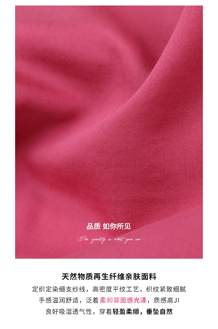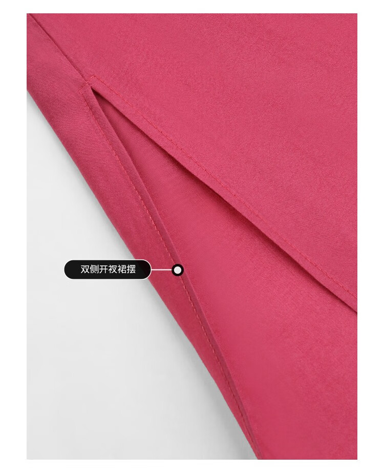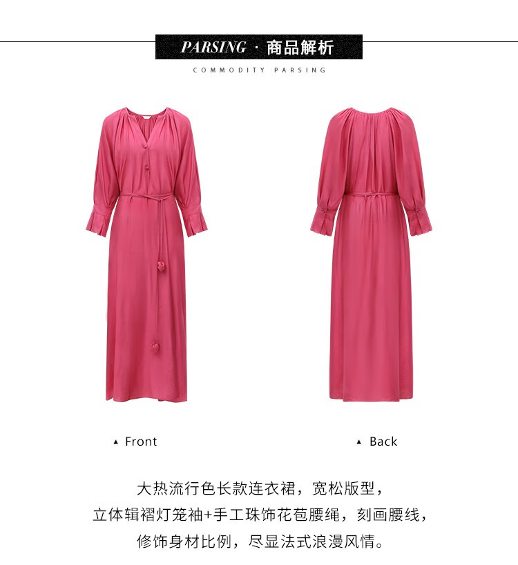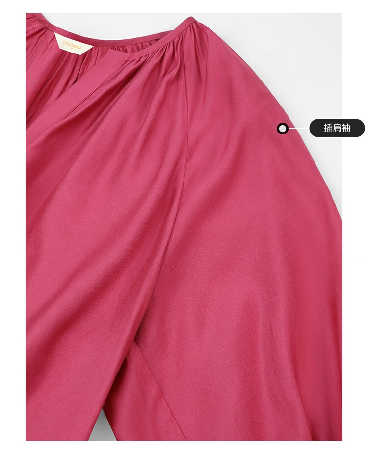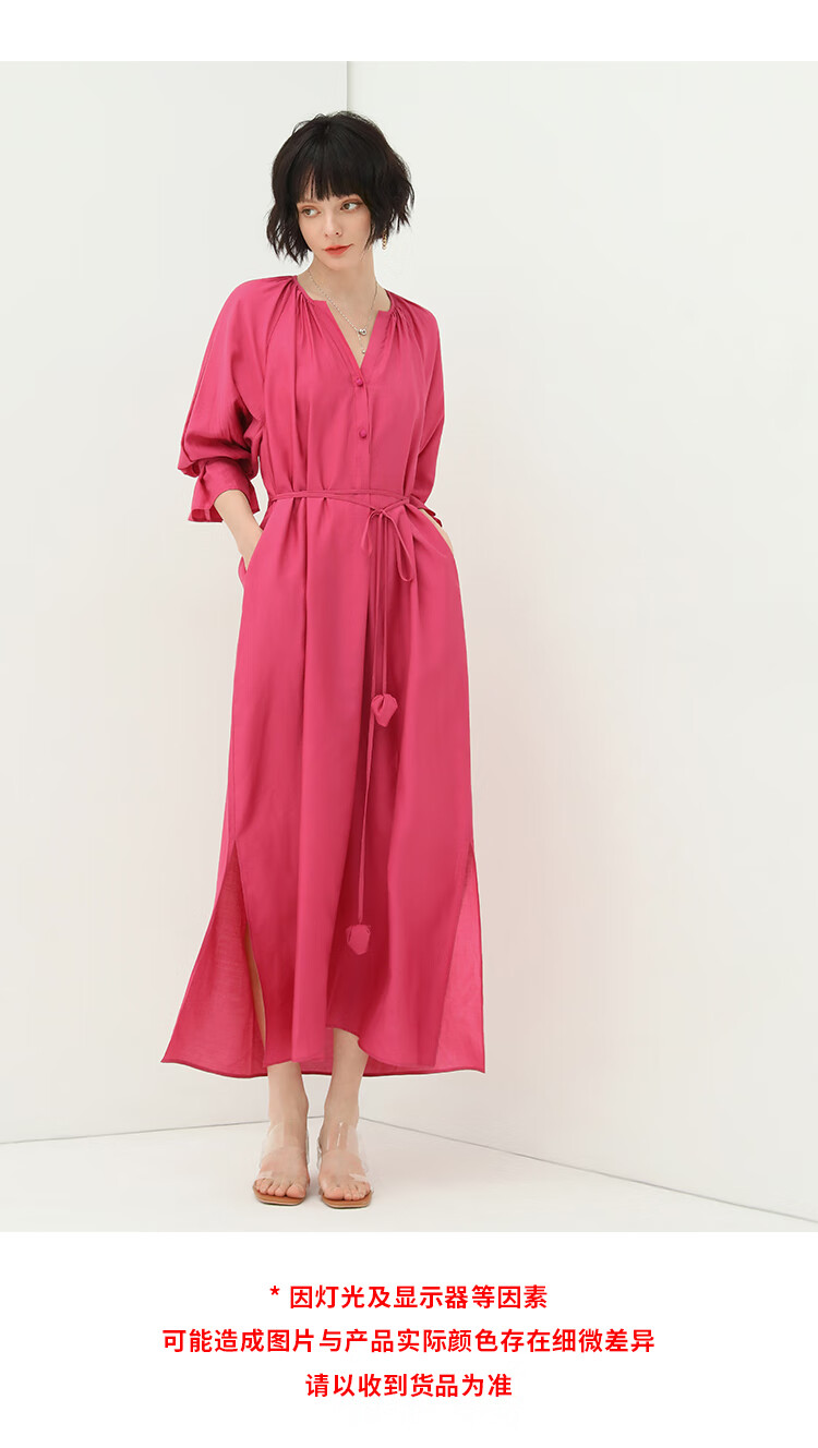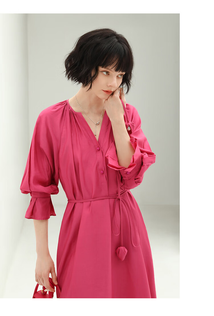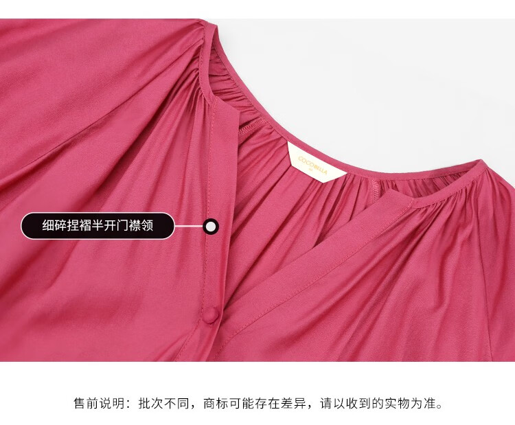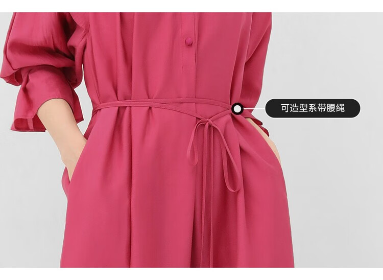 COCOBELLA玫瑰花苞腰绳捏褶衬衫裙气质玫红色度假连衣裙FR169