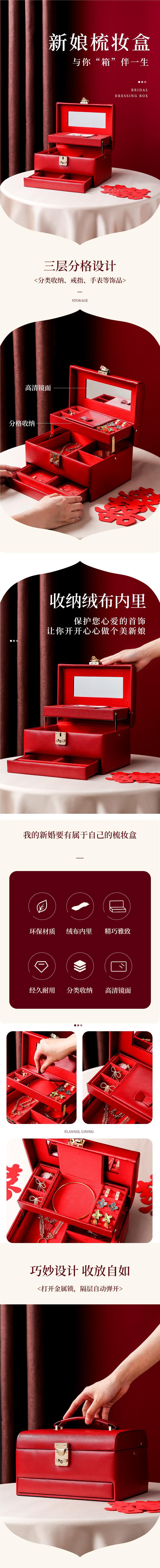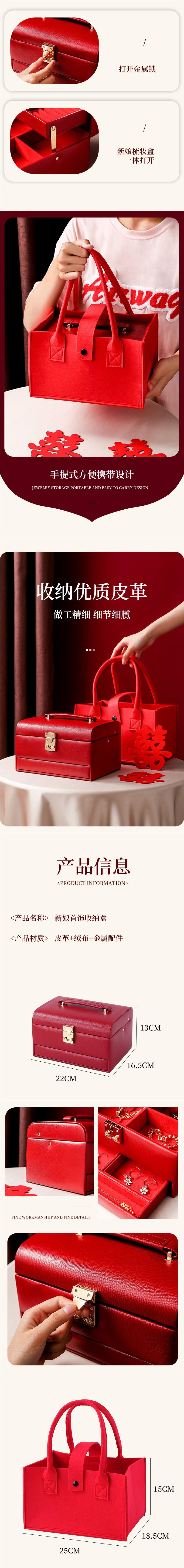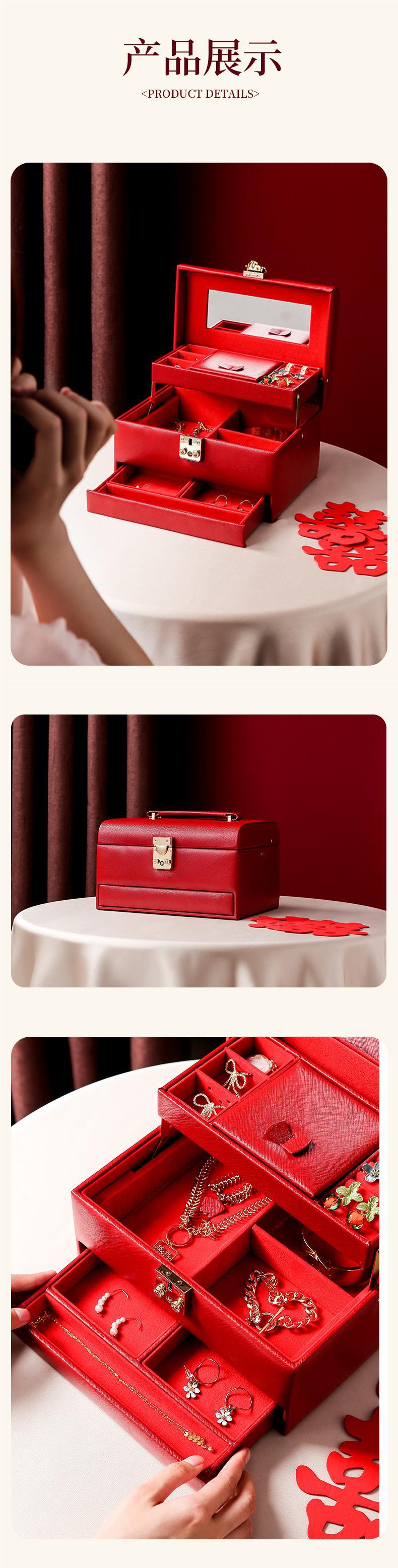 首饰盒收纳盒带锁轻奢饰品箱梳妆盒结婚新婚礼物首饰箱
