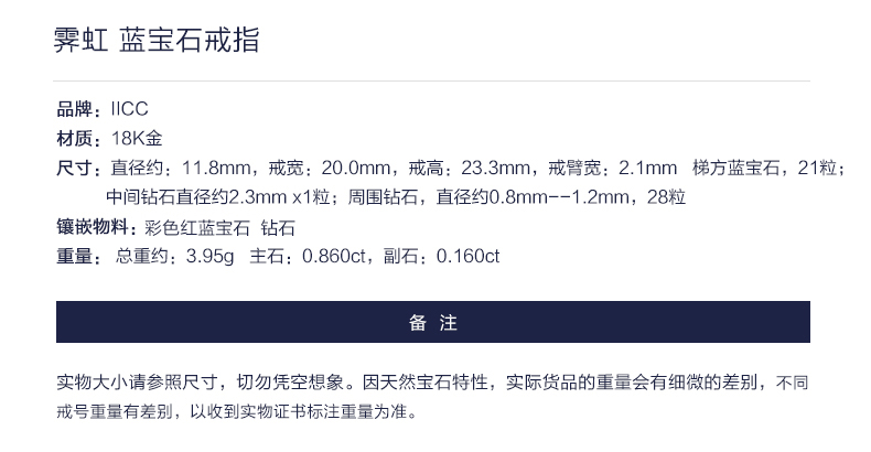 Fanci范琦×IICC珠宝【彩虹系列】霁虹戒指天然彩色蓝宝石指环彩宝手饰首饰 下单即赠(IICC珠宝专属礼盒)+顺丰空运+运费险