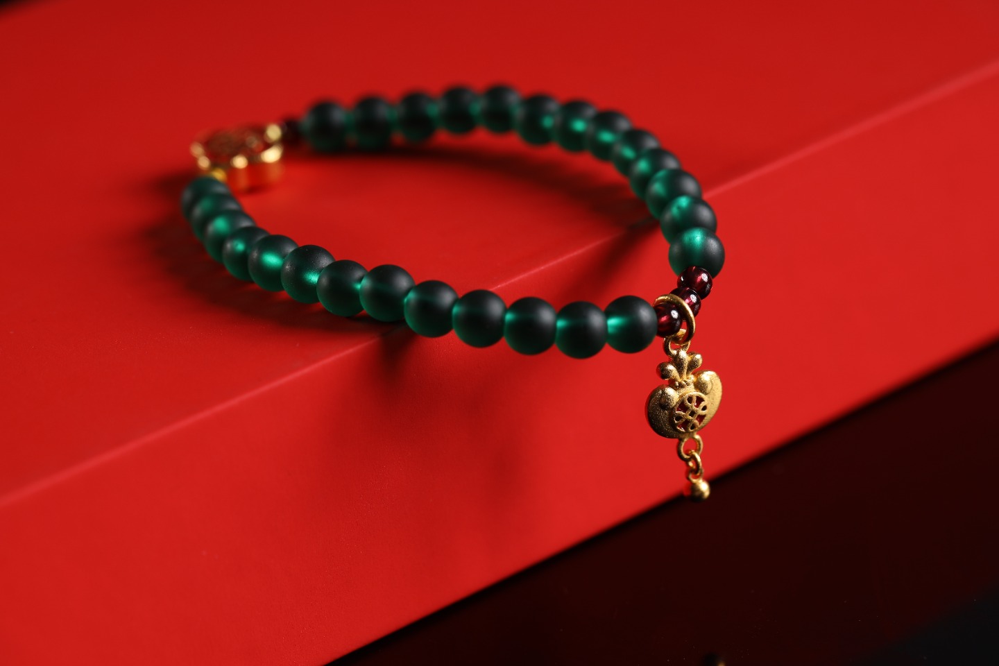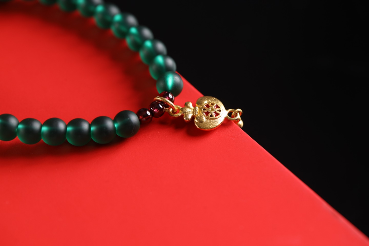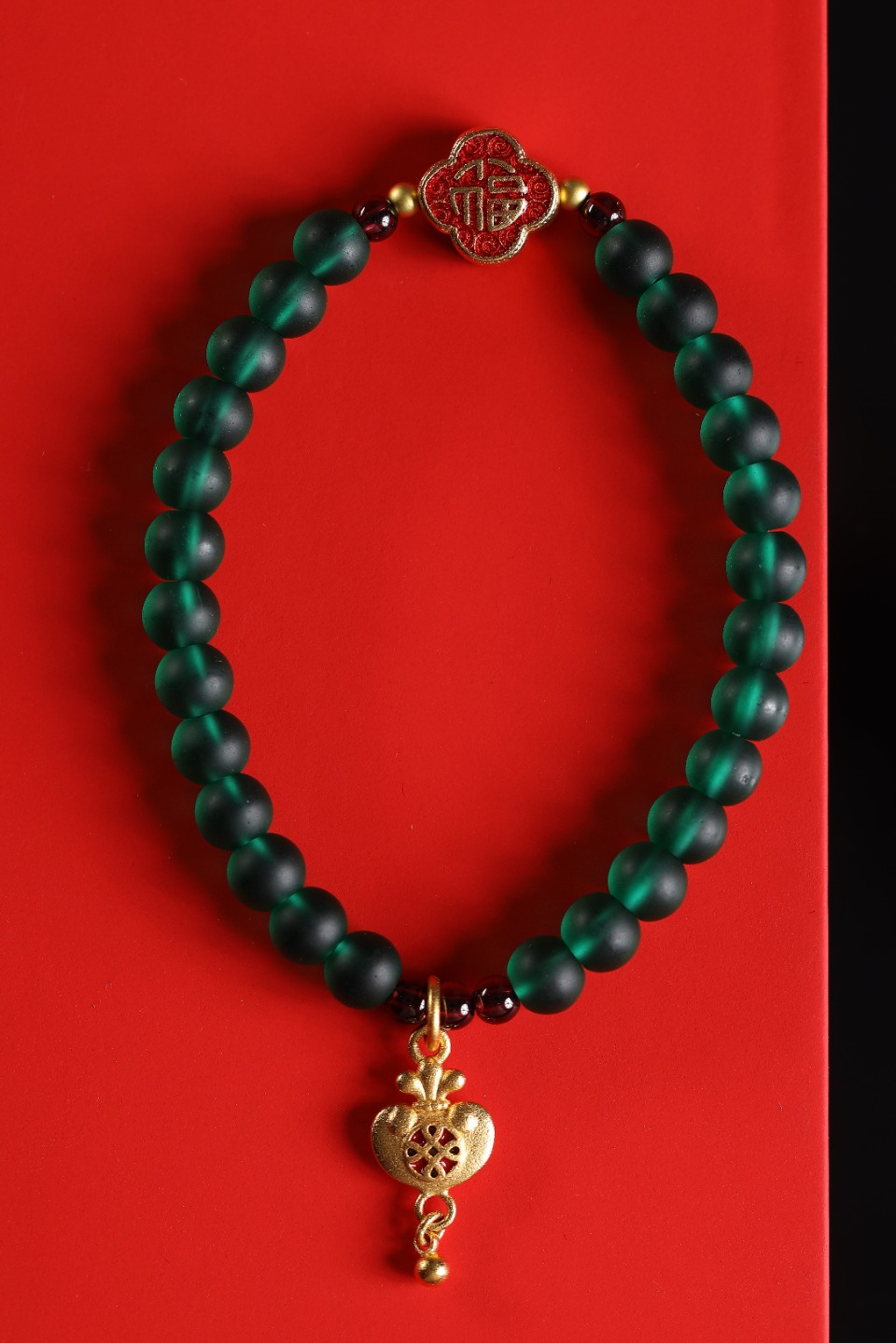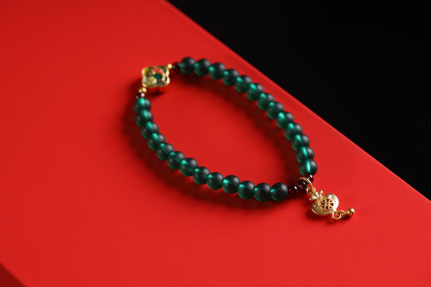 | 配件 | 石榴石,铜珠,沙金四叶草锦鲤隔珠,沙金钱袋吊坠 |