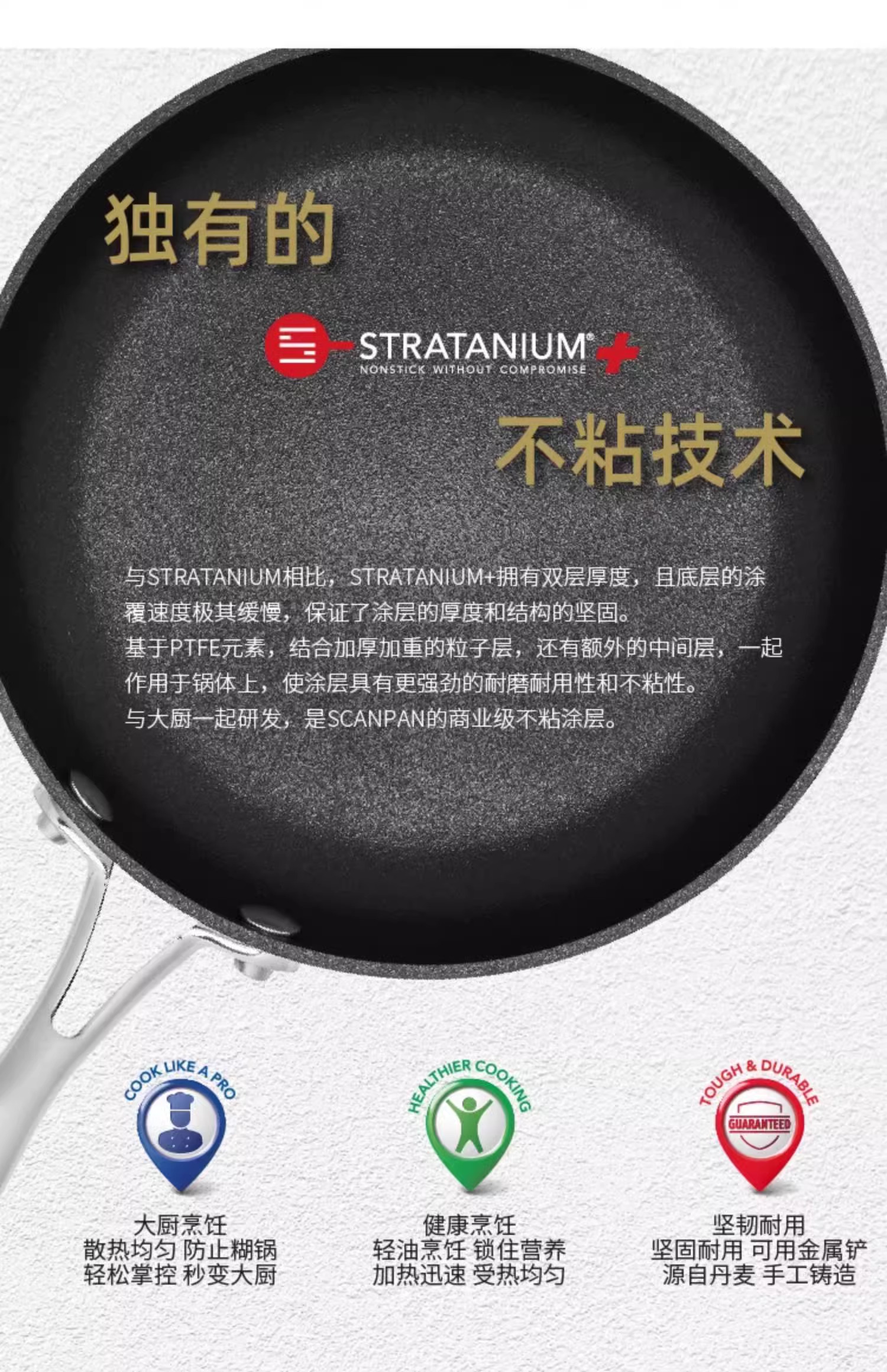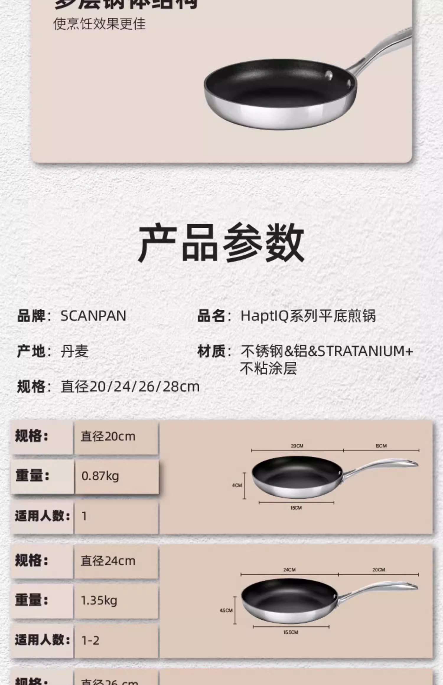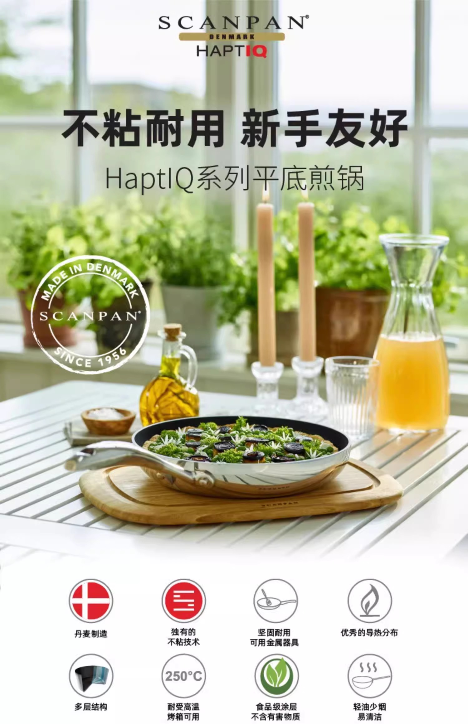 丹麦Scanpan平底锅进口不粘锅煎锅家用HaptIQ电磁炉燃气灶专用26cm