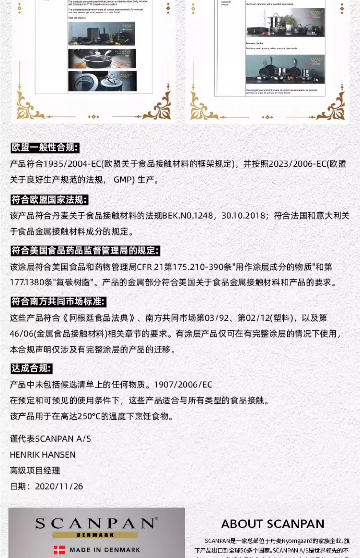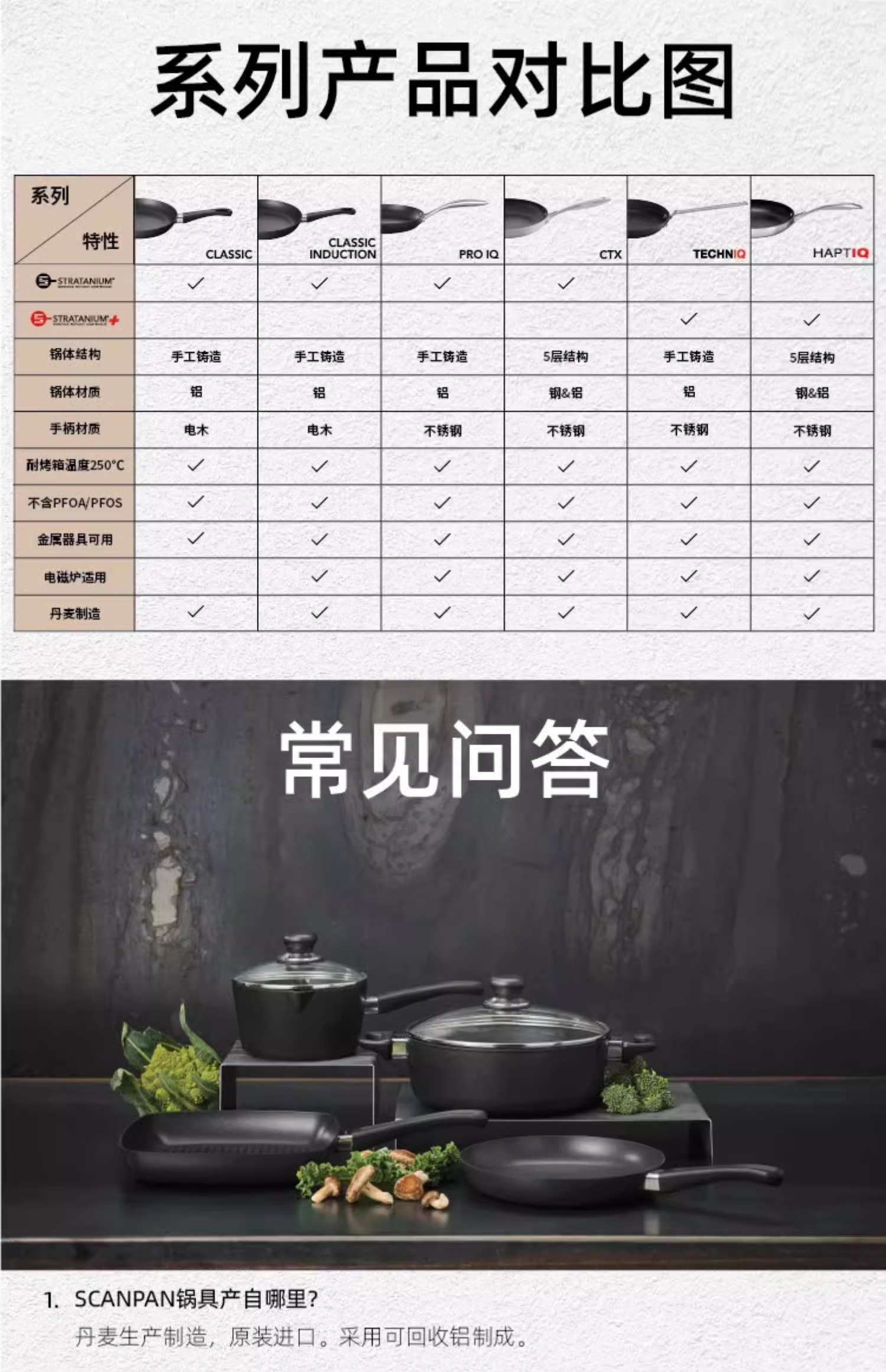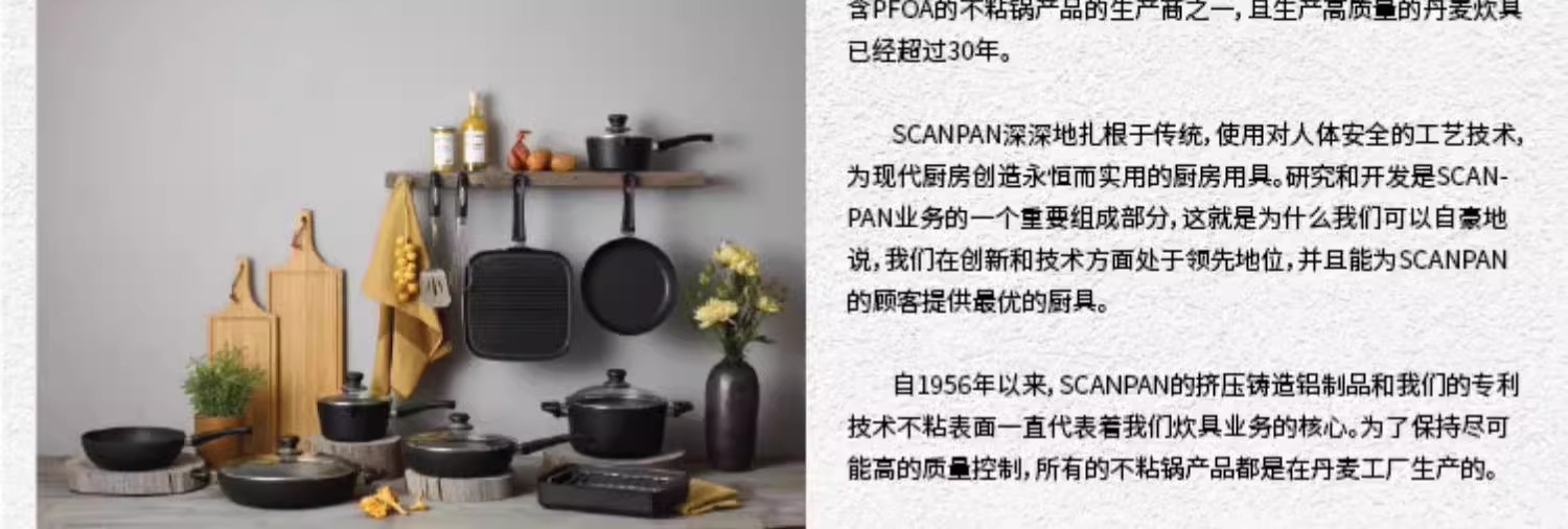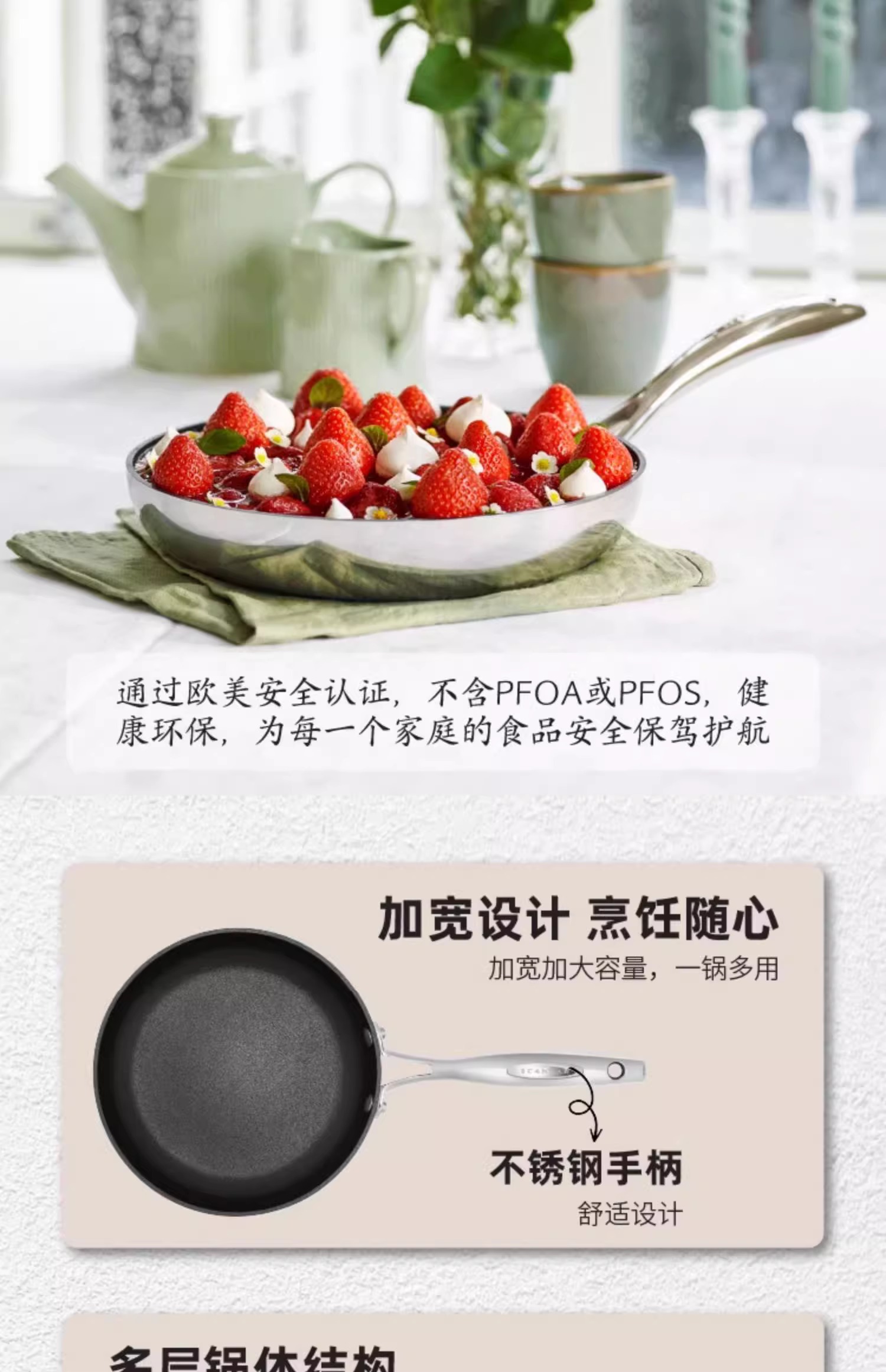 丹麦Scanpan平底锅进口不粘锅煎锅家用HaptIQ电磁炉燃气灶专用26cm