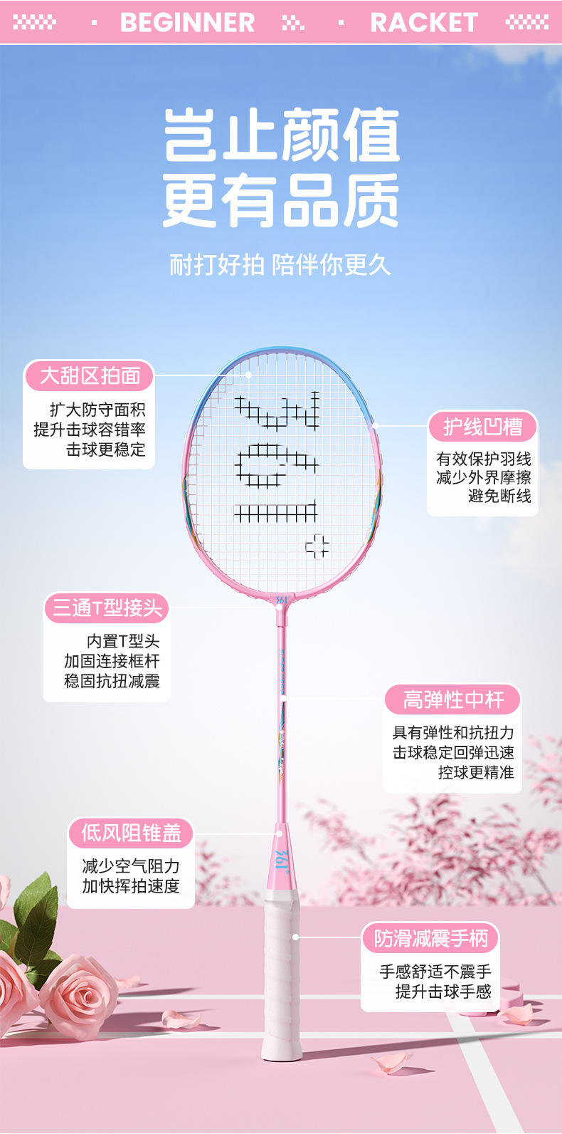361°羽毛球拍双拍耐打高弹力成人大学生版情侣专用高颜值羽毛球