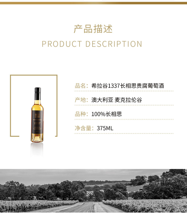 【泸州老窖酒名堂】澳洲原瓶进口 希拉谷1337长相思贵腐葡萄酒2011版 375ml*1单瓶装(带盒)
