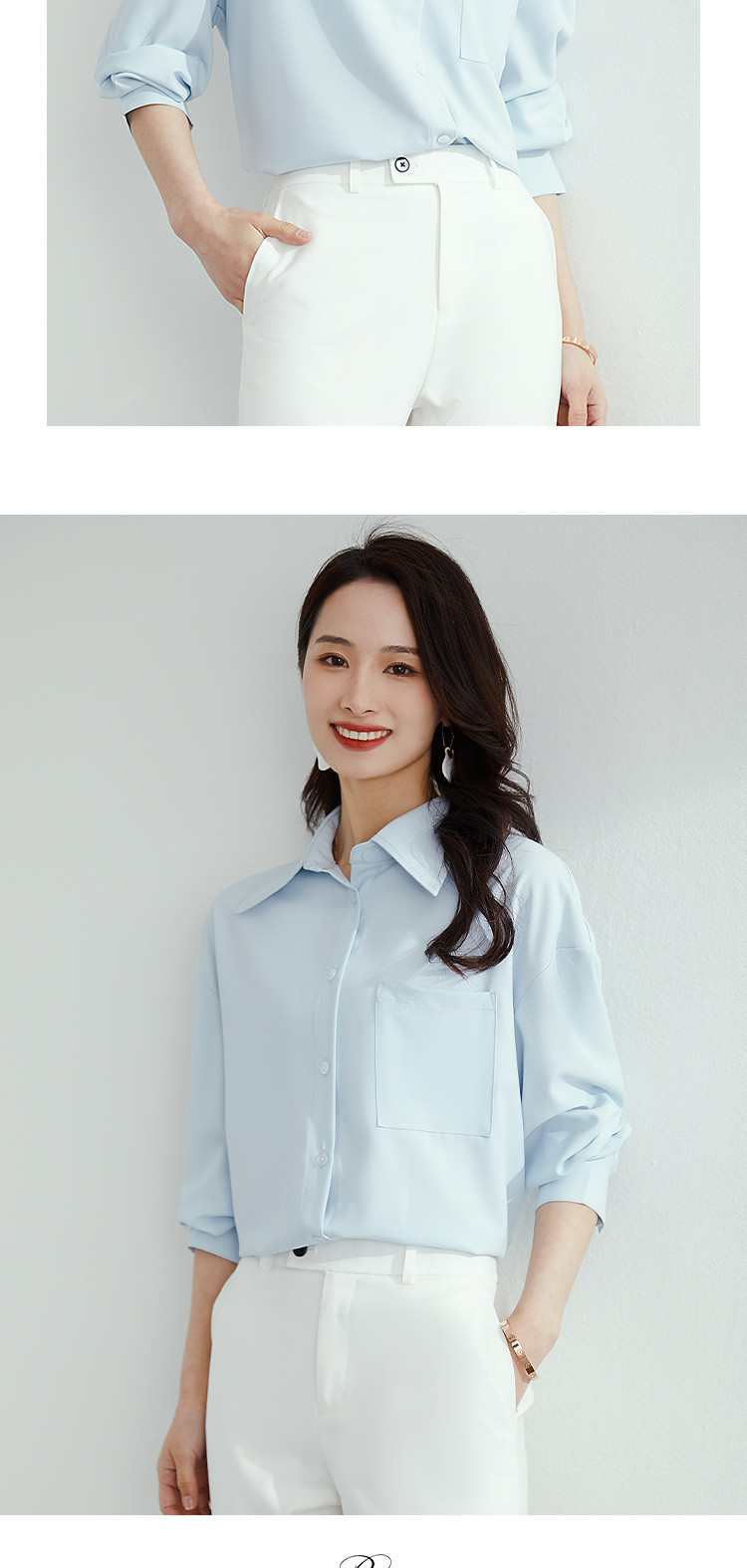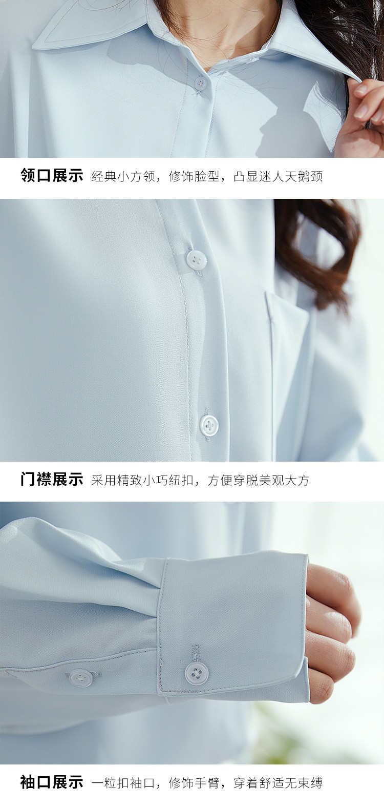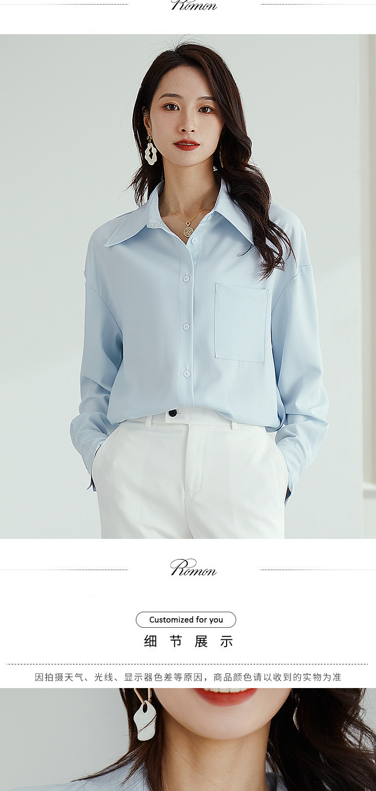 【气质纯色】罗蒙春秋款女士长袖衬衫时尚大口袋经典方领衬衣女