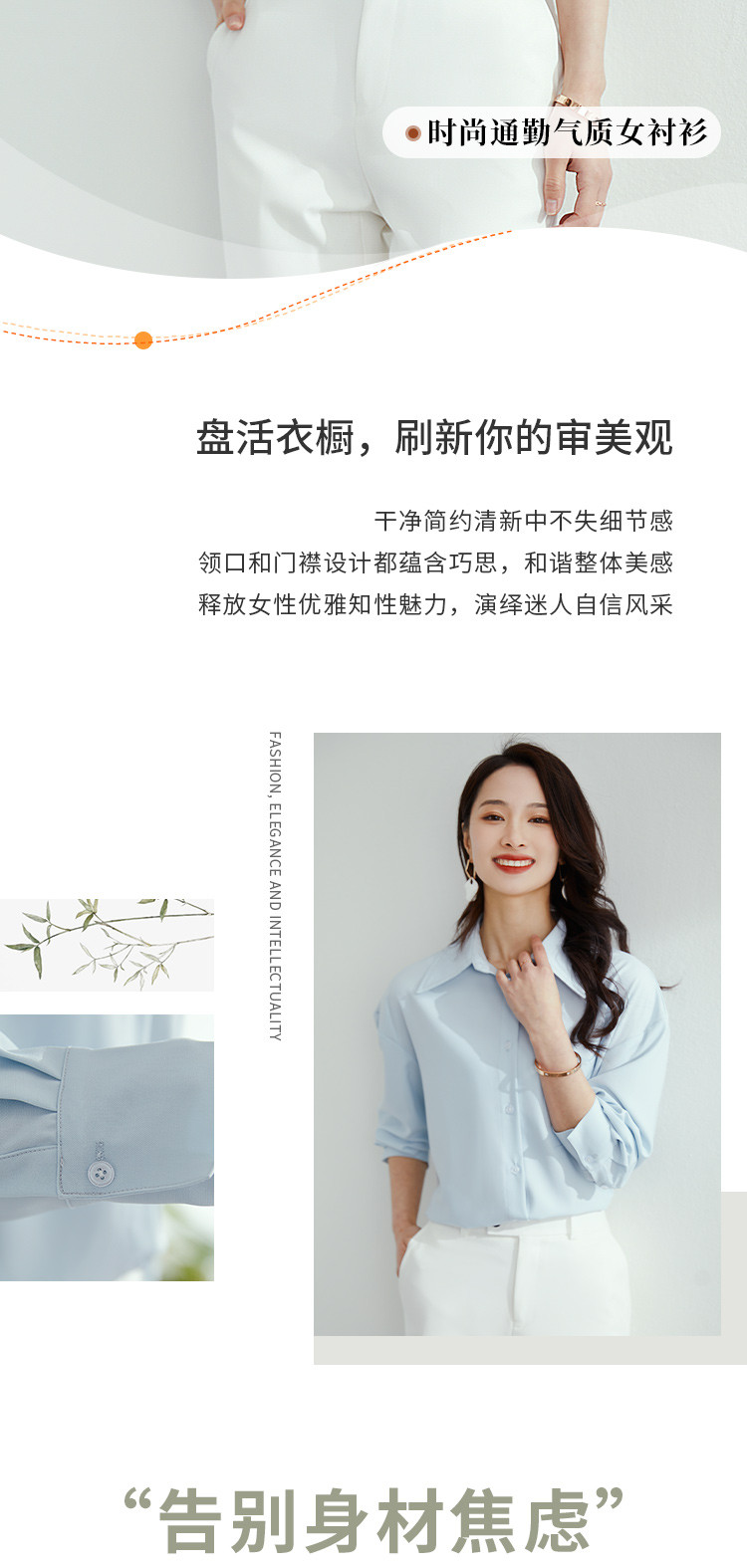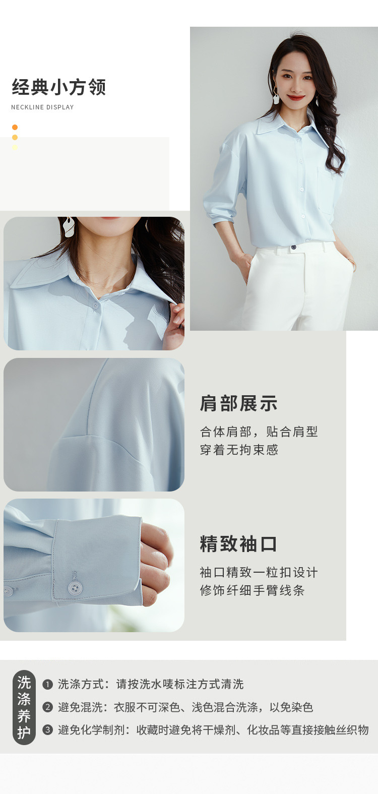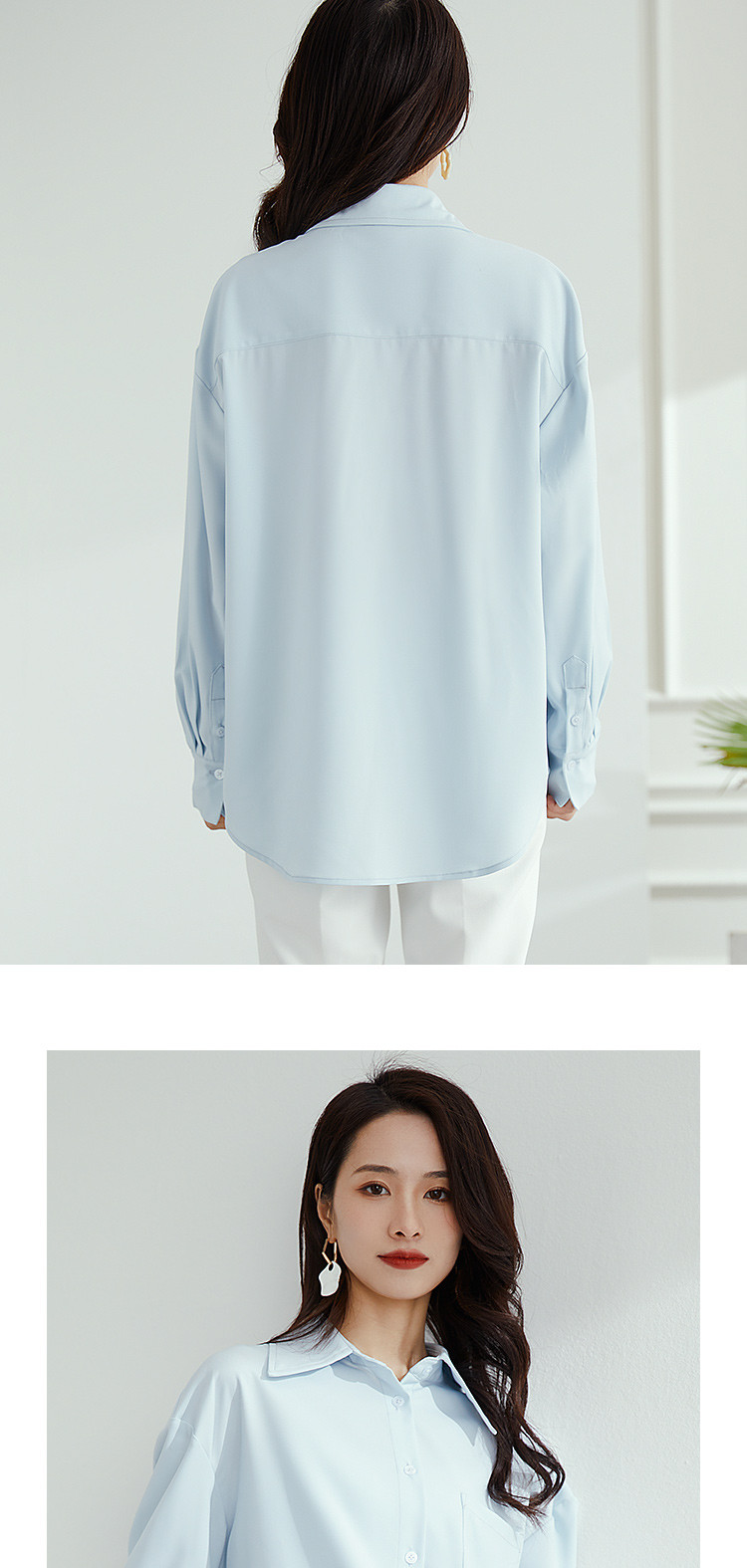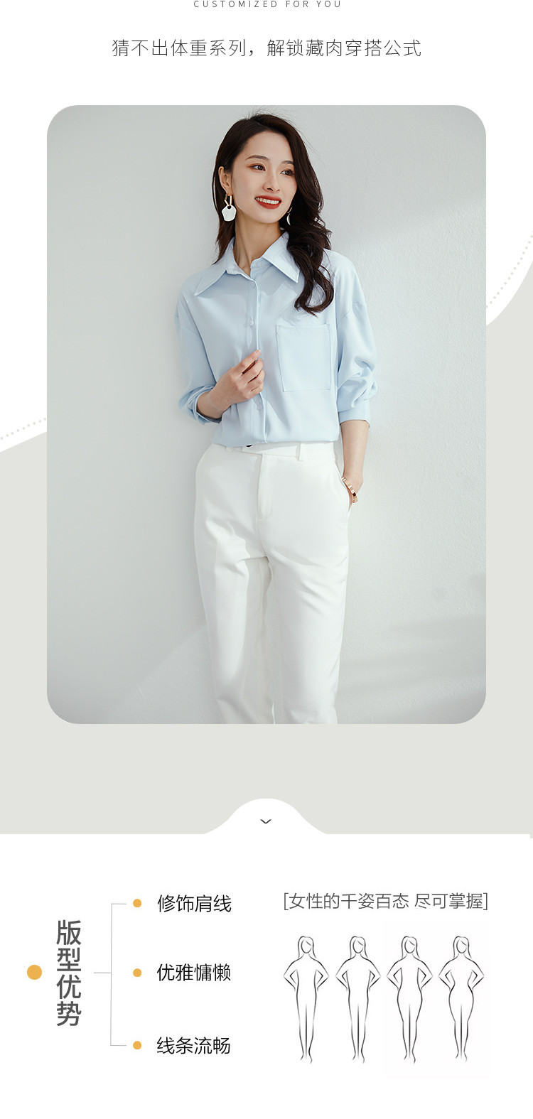 【气质纯色】罗蒙春秋款女士长袖衬衫时尚大口袋经典方领衬衣女