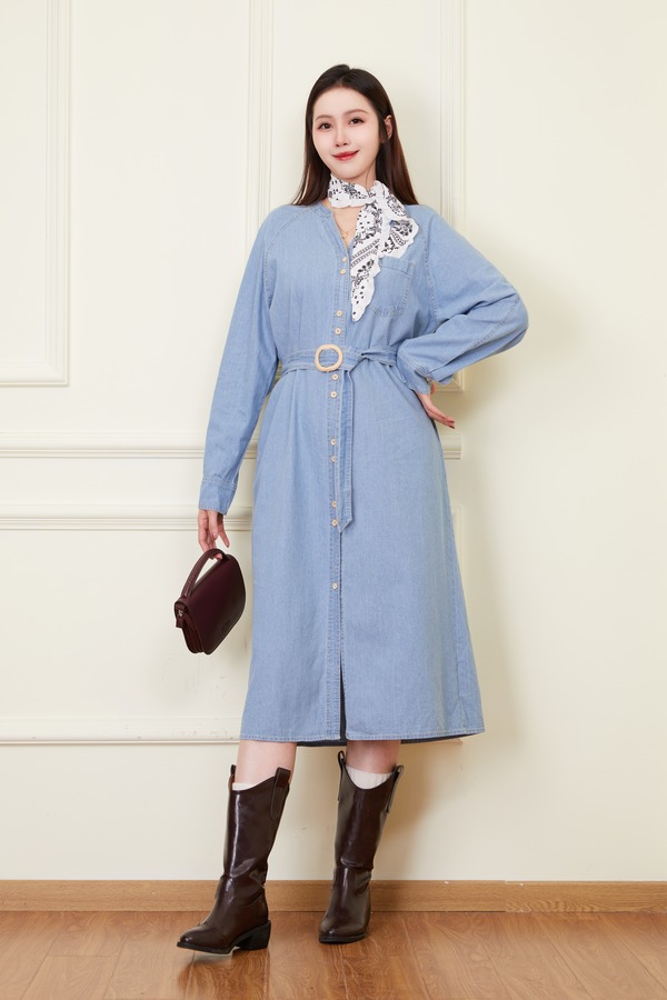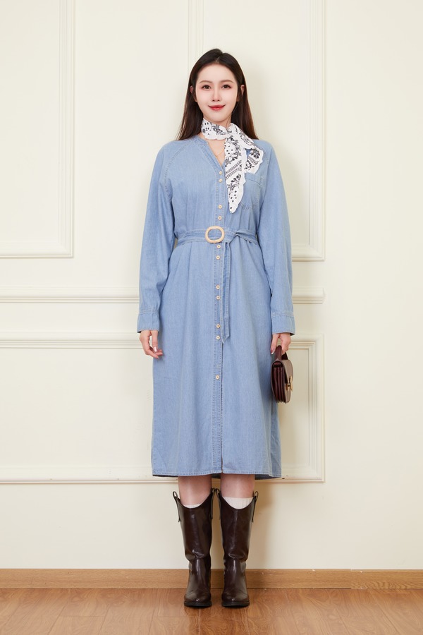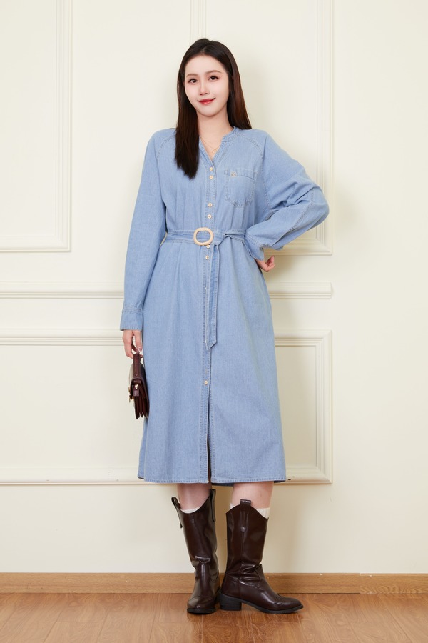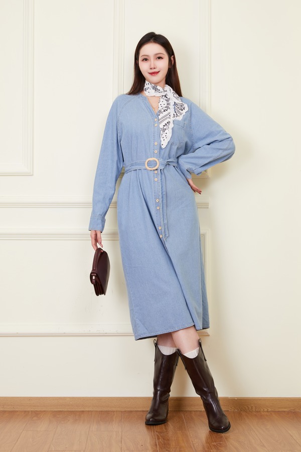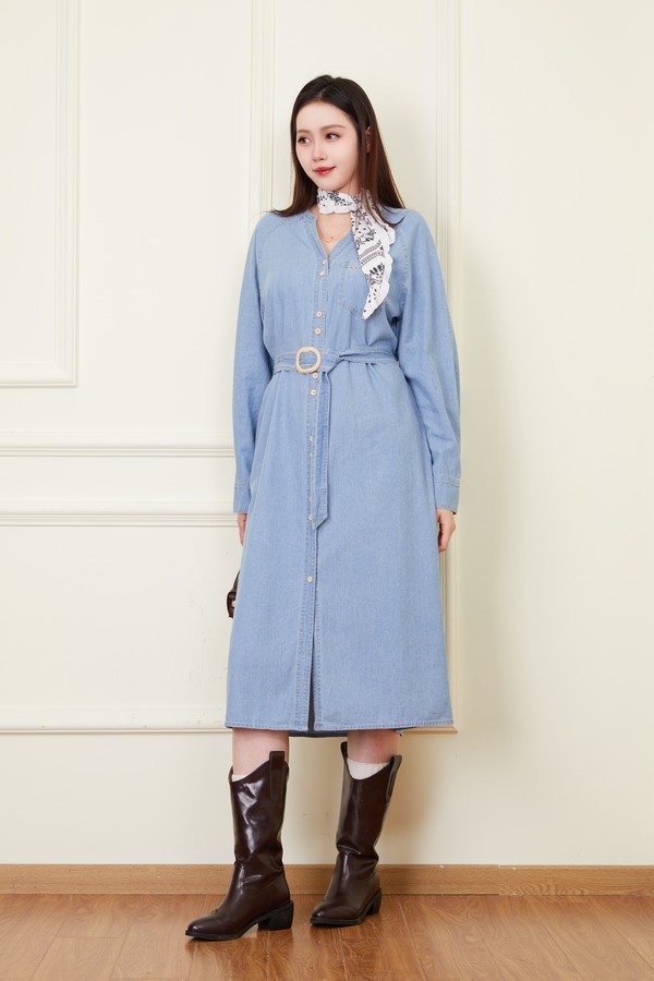 LNNNS 气质通勤复古V领牛仔连衣裙 22238