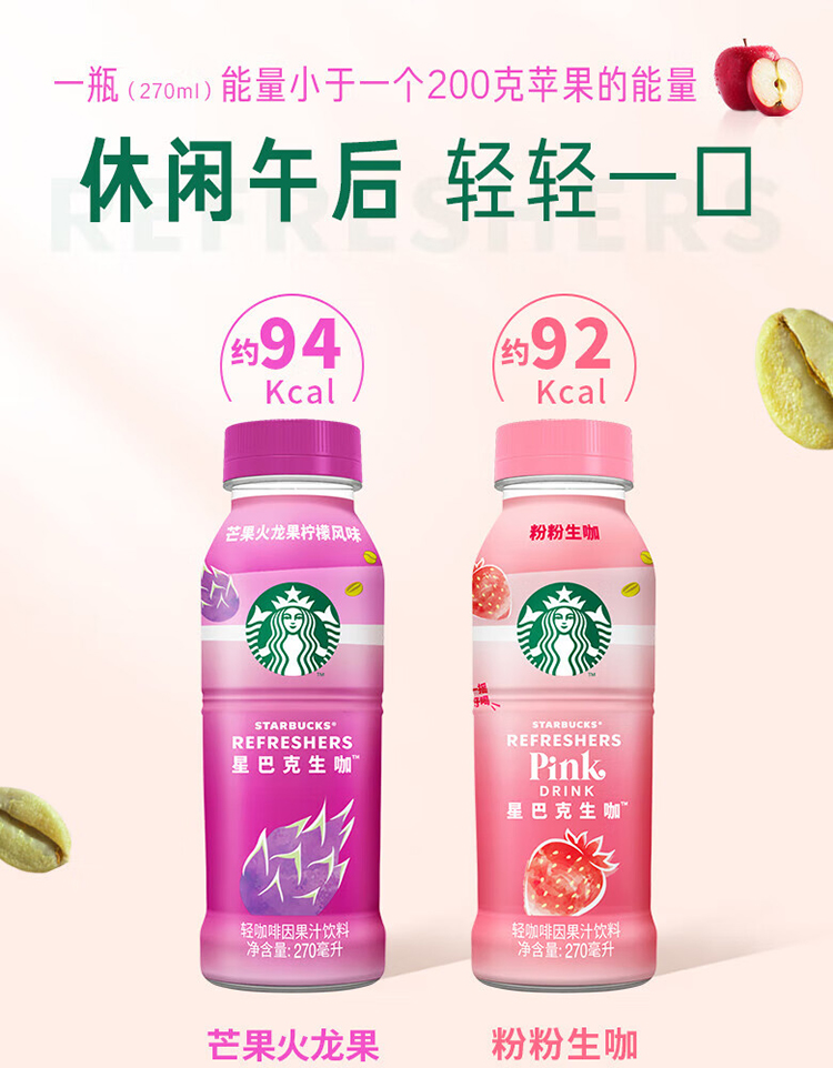 星巴克生咖粉粉生咖轻咖啡因果汁饮料270ml*15