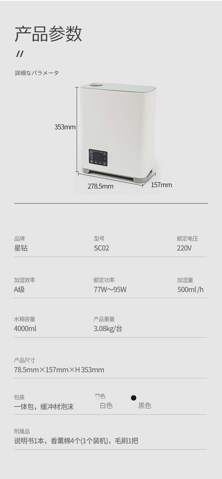 星钻加湿器大雾量杀菌静音孕妇婴儿家用客厅香薰加湿机出口