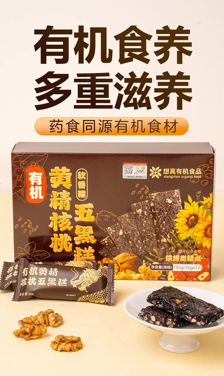 想真 有机黄精核桃五黑糕 192g盒装*2盒 健康代餐休闲营养零食小吃