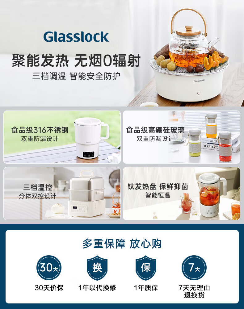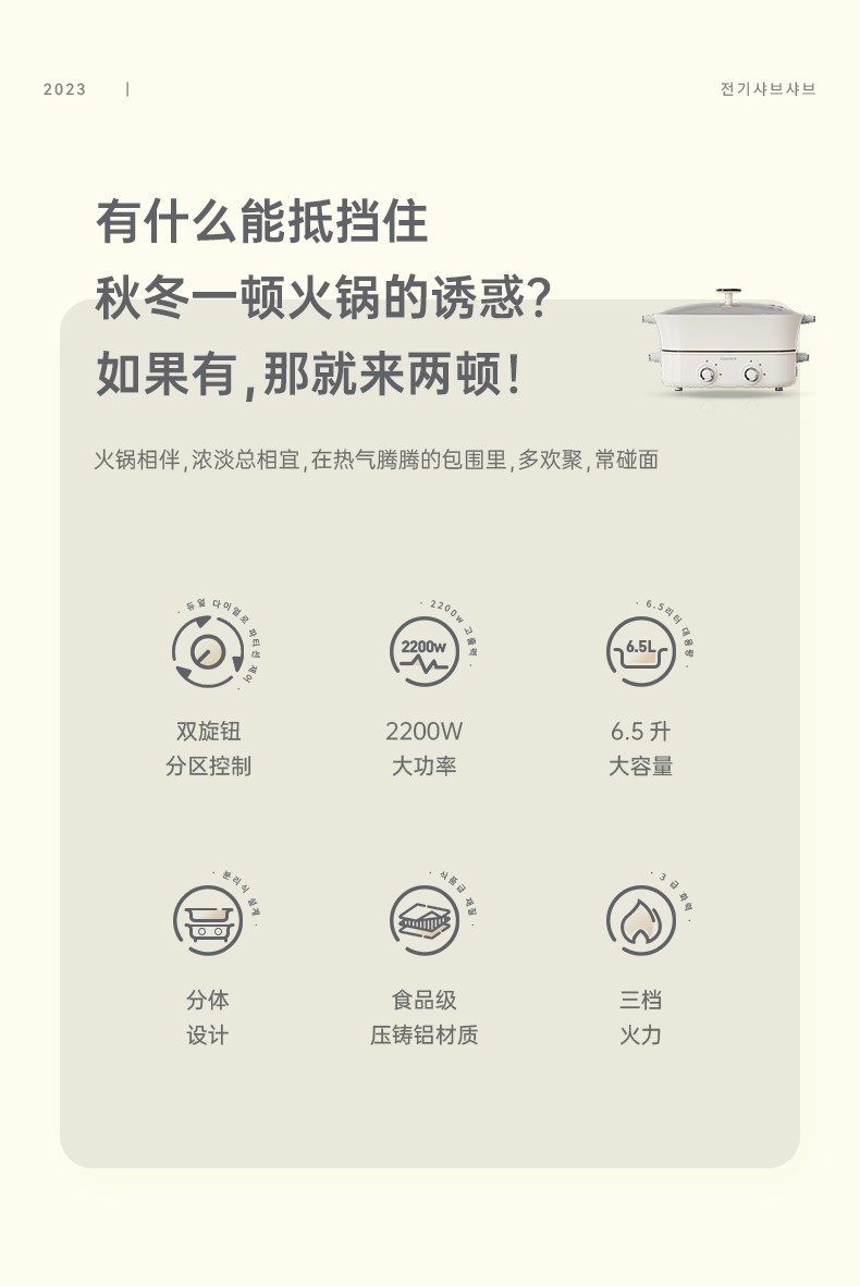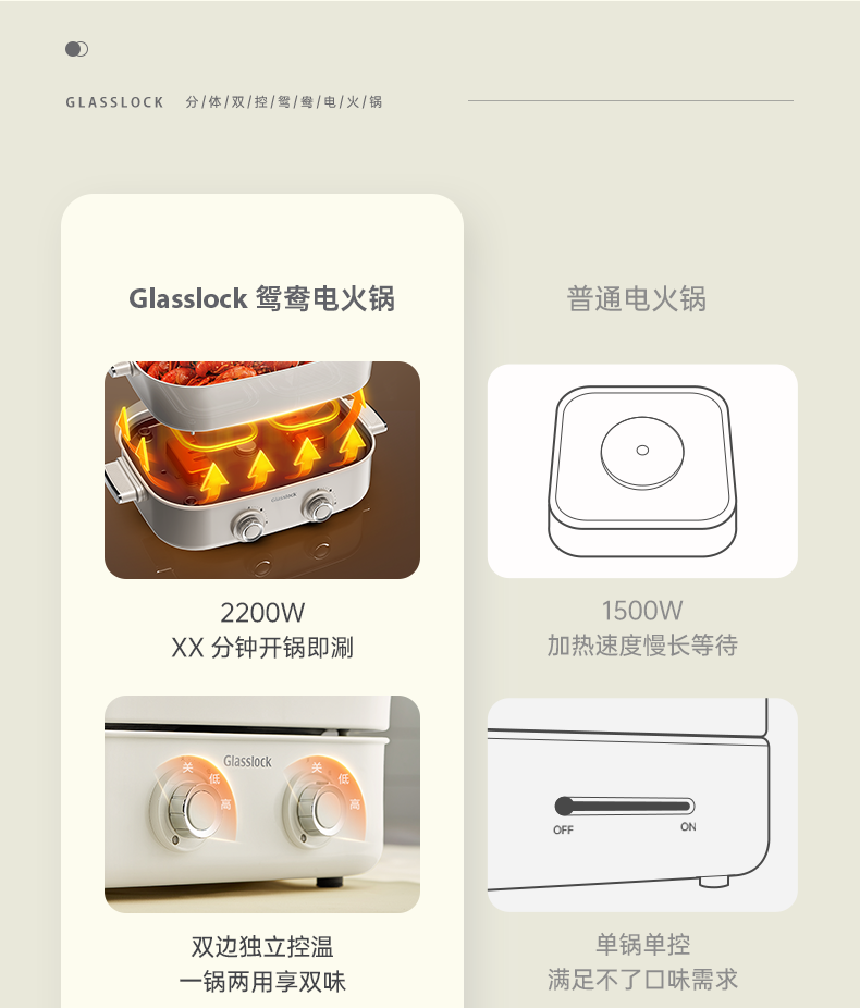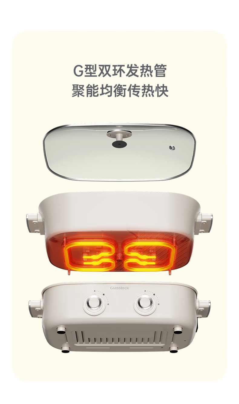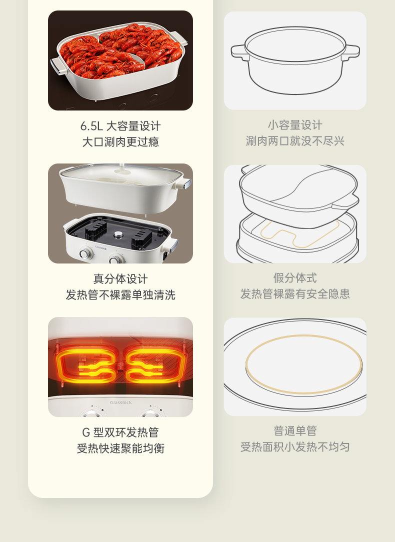 【小家电】GLASSLOCK韩国品牌速沸电火锅6.5L鸳鸯锅大功率多用途锅电煮锅多功能锅分体式家用电热锅涮肉锅火锅锅具HF