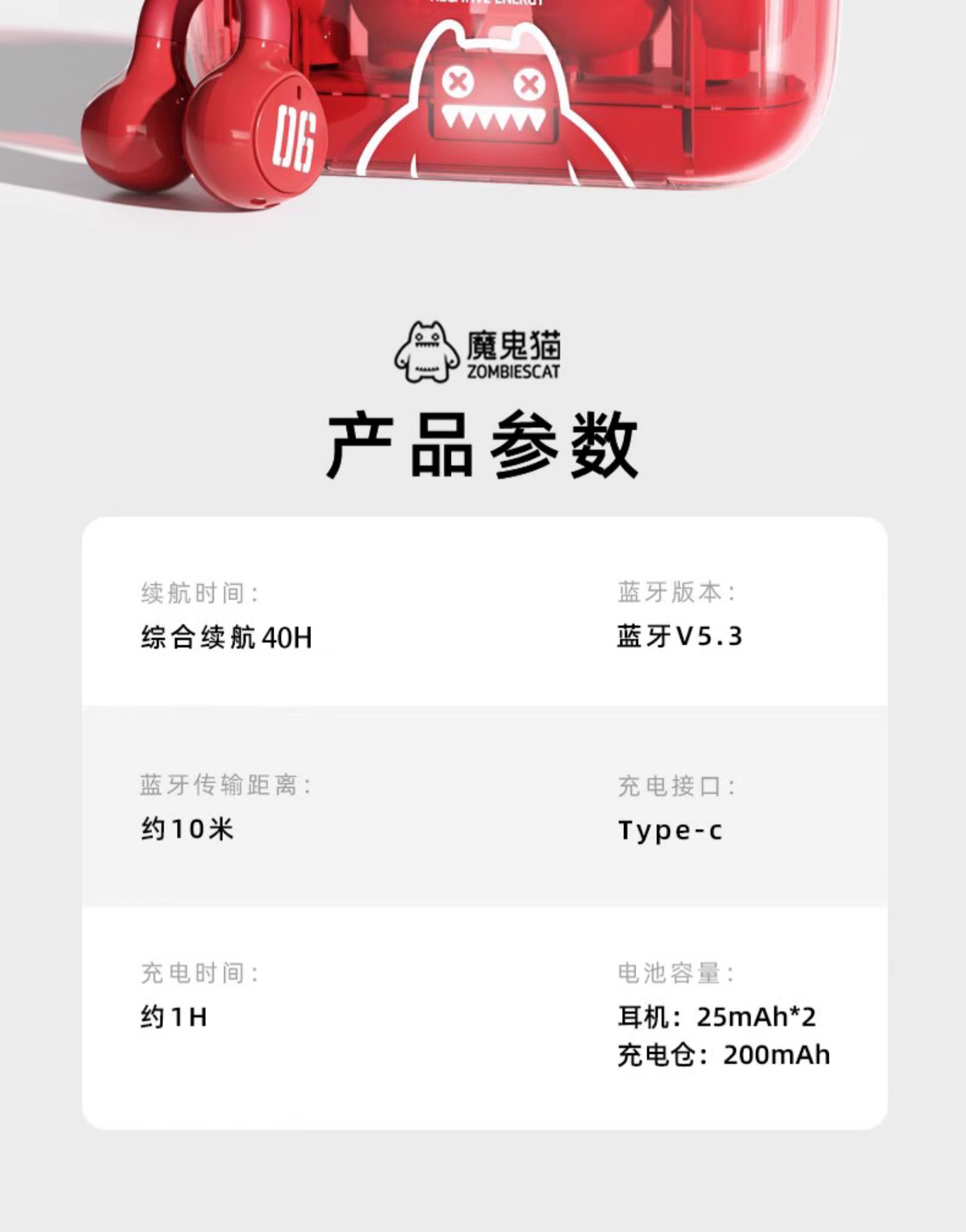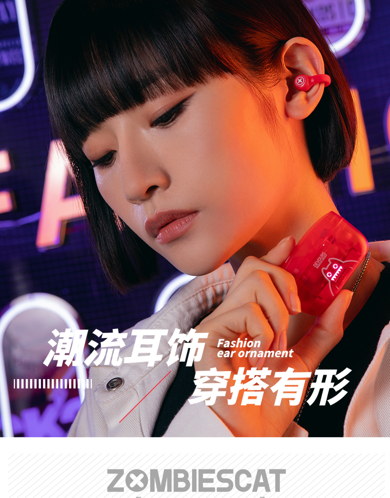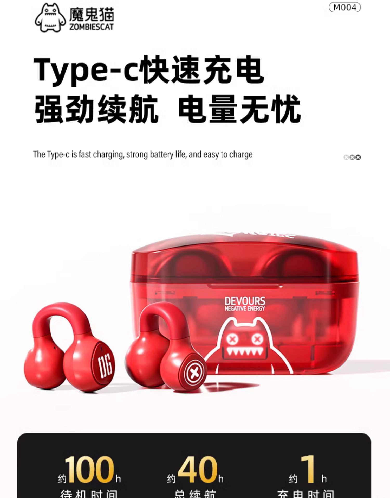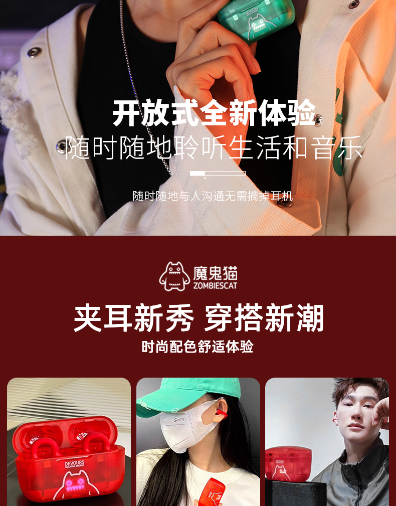 F-MGM-004 青橙魔鬼猫联名款运动夹耳开放式耳机