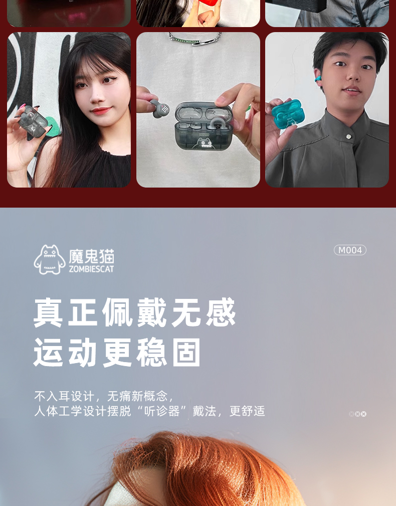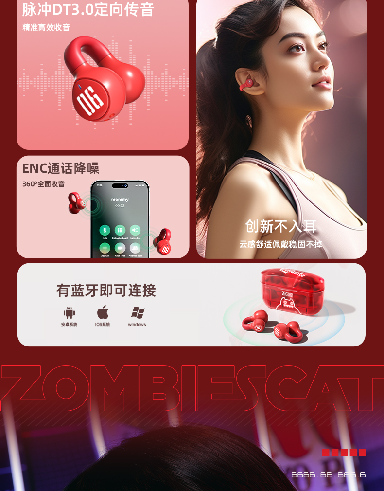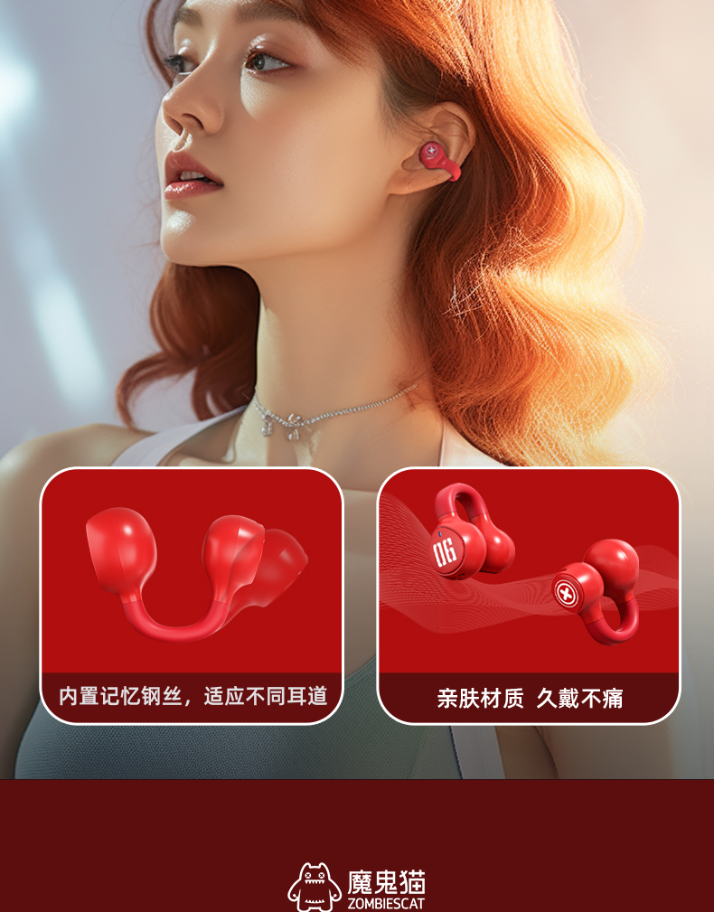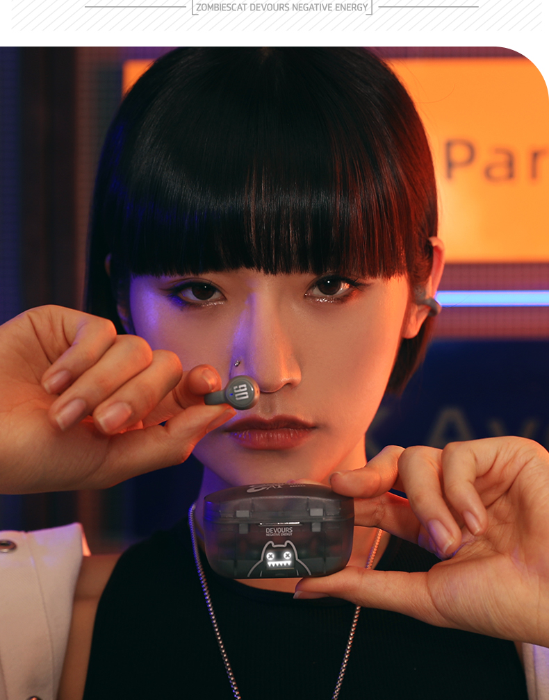 F-MGM-004 青橙魔鬼猫联名款运动夹耳开放式耳机
