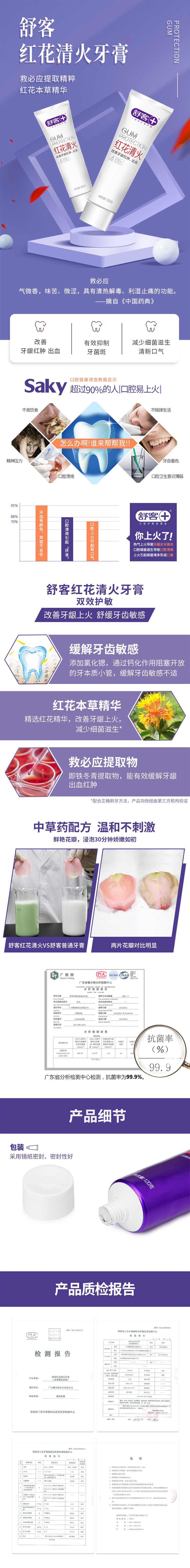 舒客 红花本草清火护龈牙膏120g/支