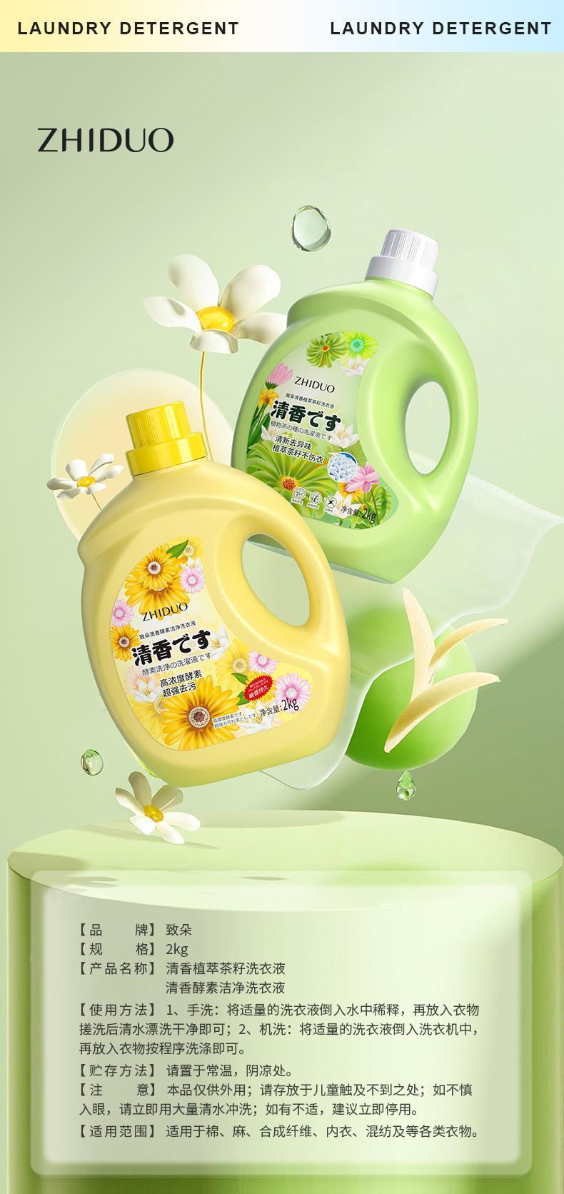「4斤装!两款香型」致朵清香植萃茶籽洗衣液 清洁去污香氛家庭装居家日用清洁工具