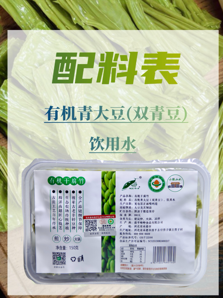 有机干腐竹(150g/袋)【有机青豆豆制品满6份包邮】 商品图0