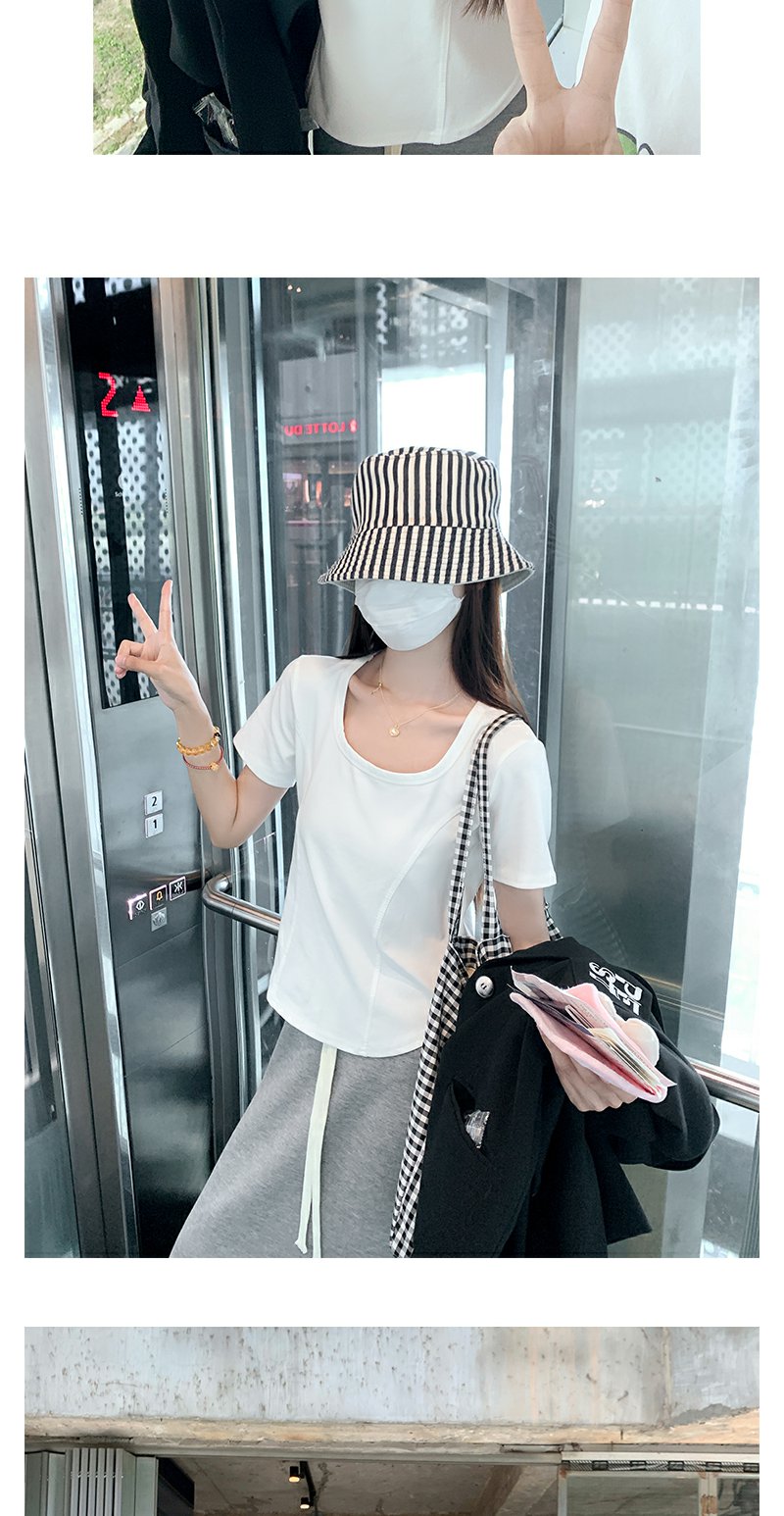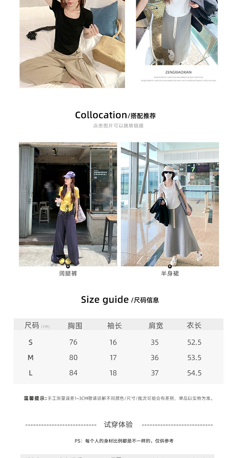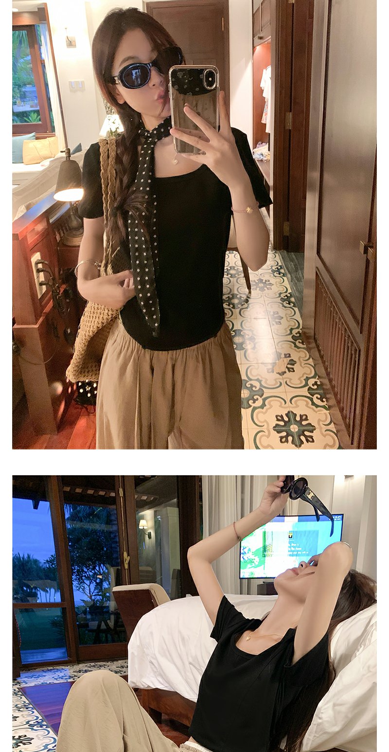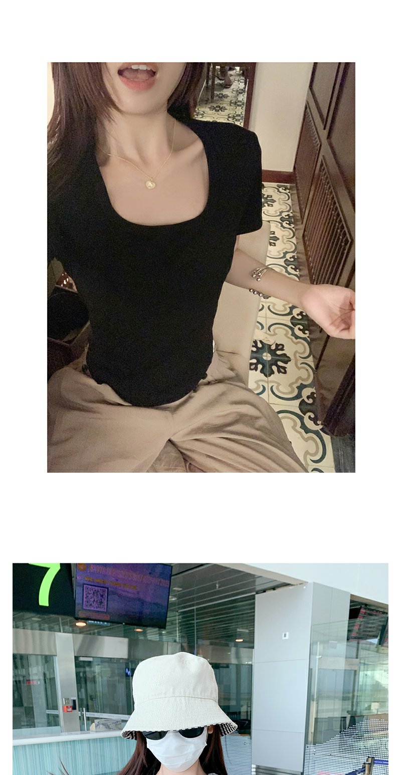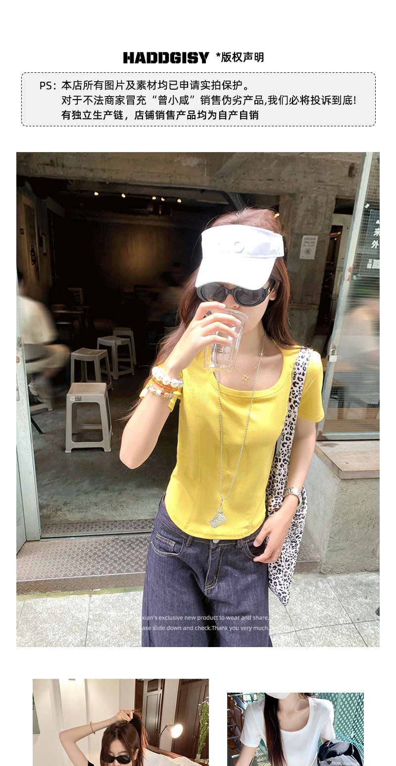 <曾小咸推荐>方领正肩短袖T恤女夏季收腰修身