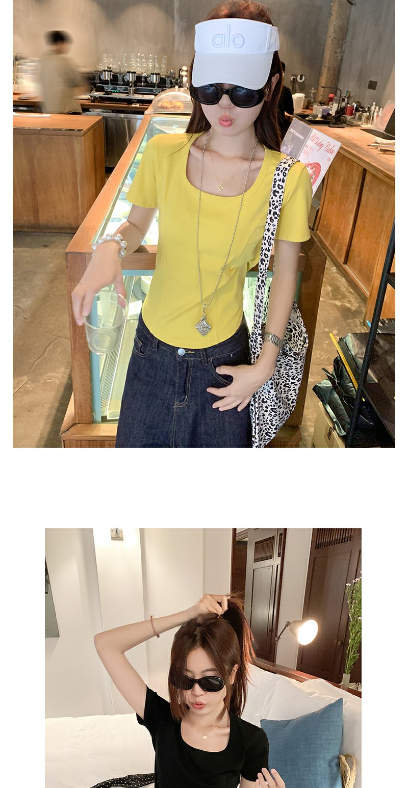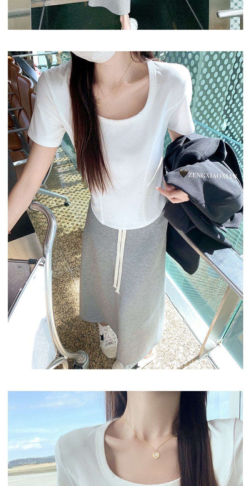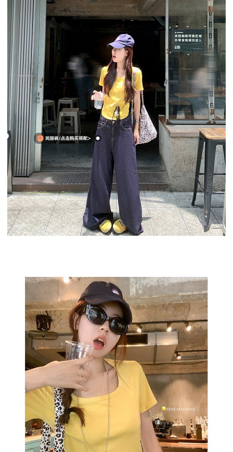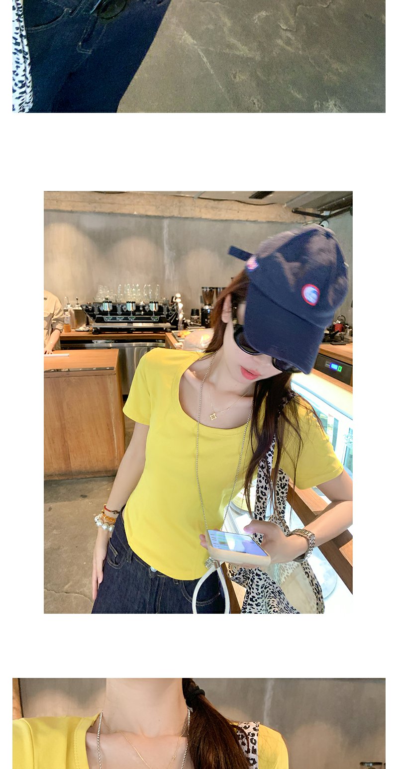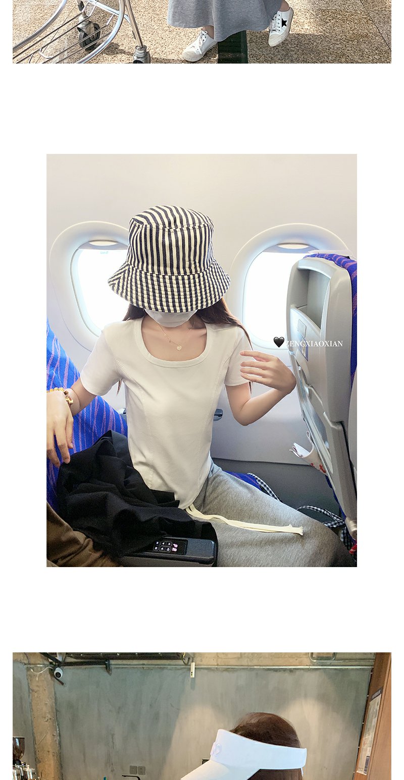 <曾小咸推荐>方领正肩短袖T恤女夏季收腰修身