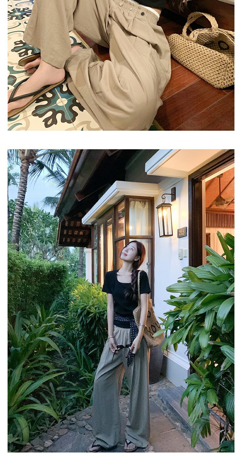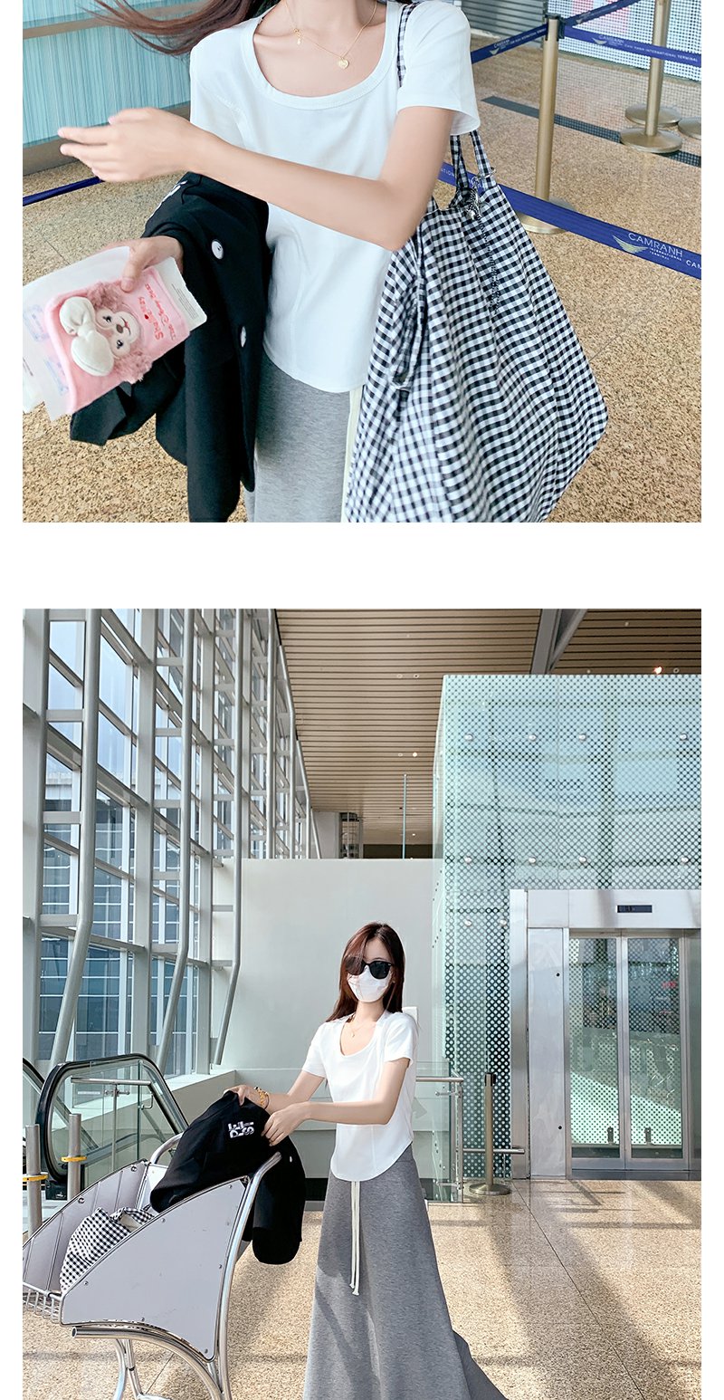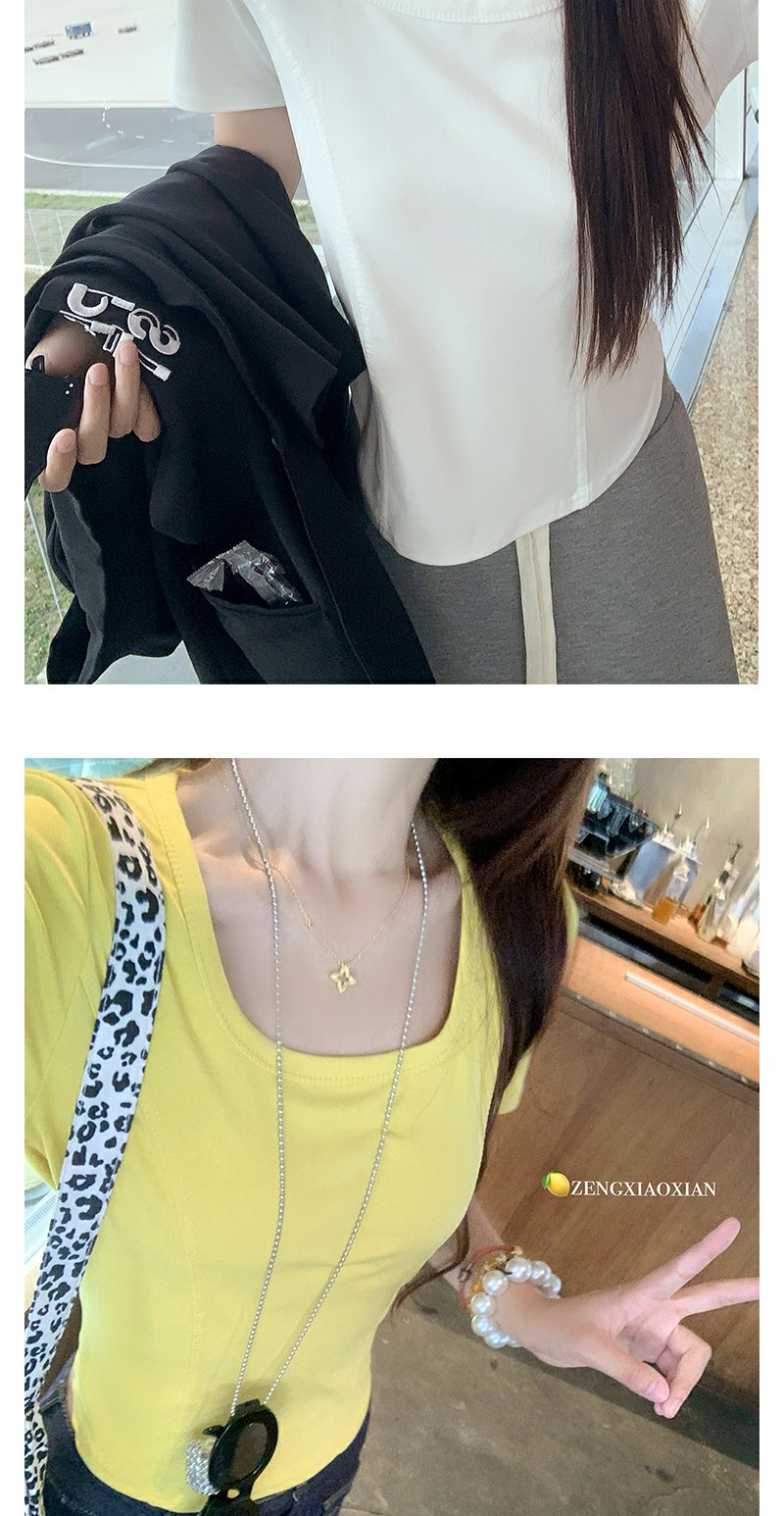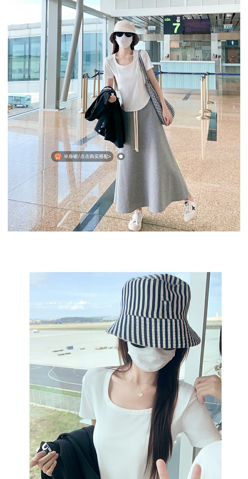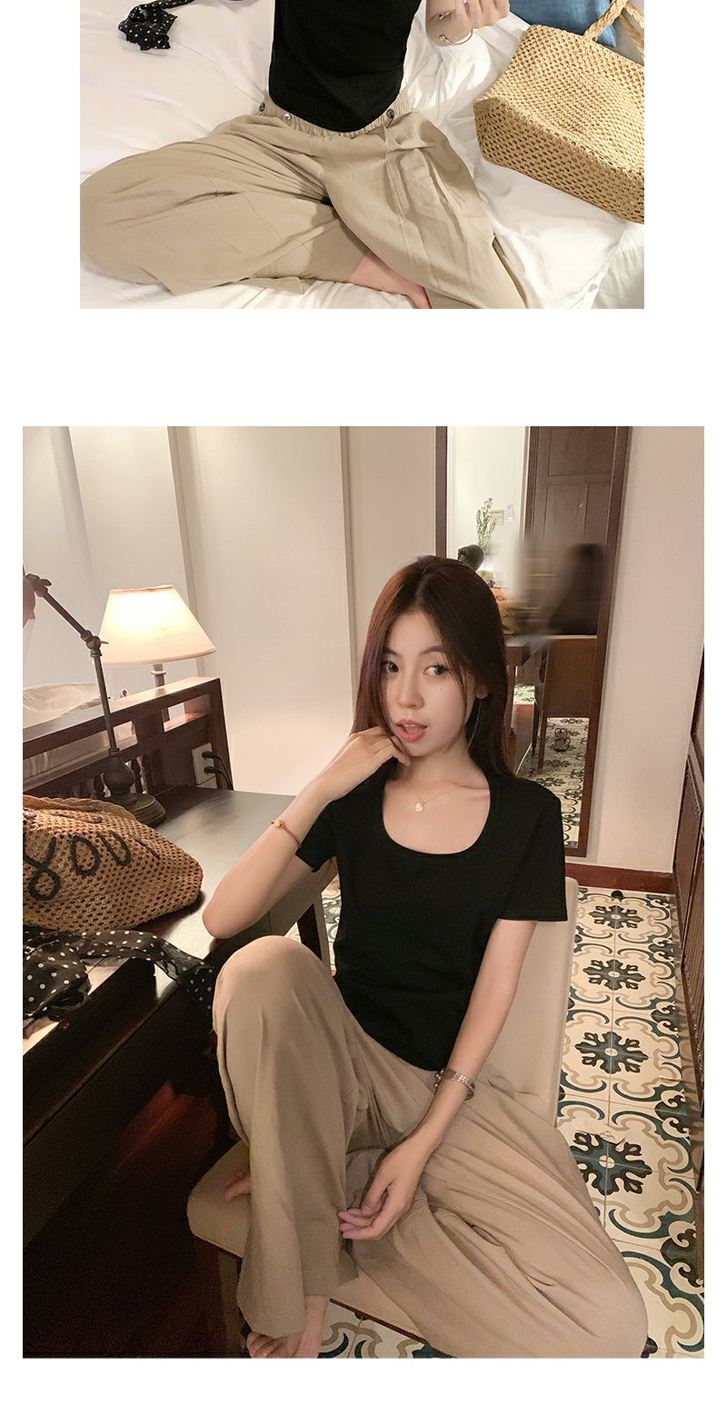 <曾小咸推荐>方领正肩短袖T恤女夏季收腰修身