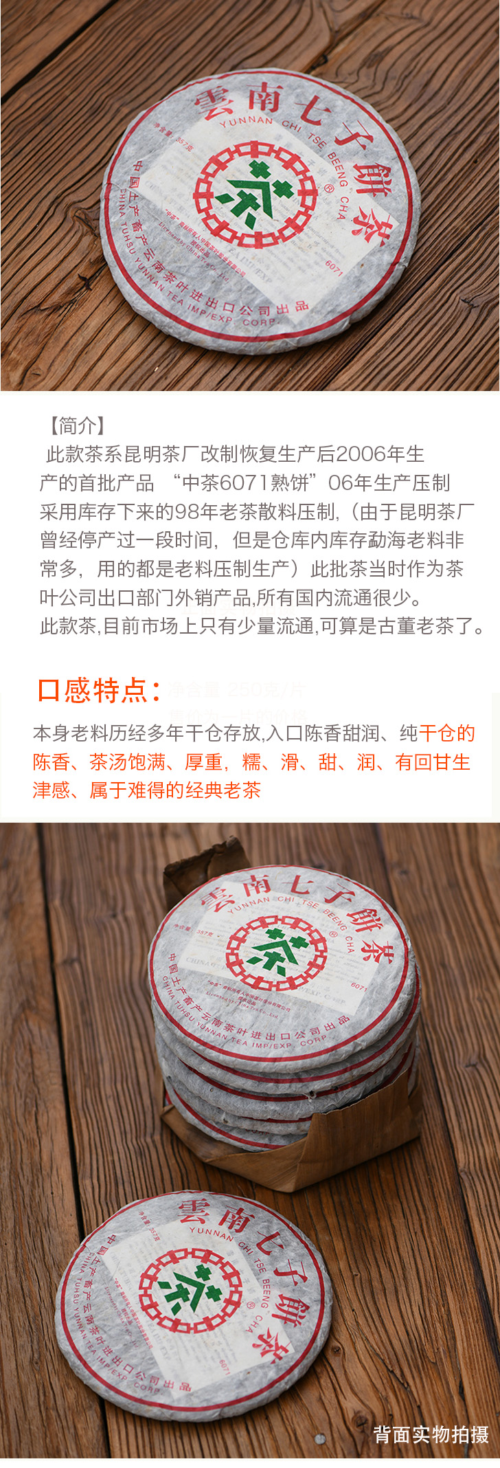 中粮-中茶 2006年(98老茶料)普洱茶熟茶06年中茶6071特级普洱熟茶饼茶叶357g /云南干仓直发