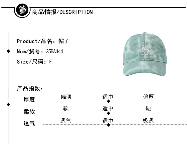 ONIARAI/鬼洗25春夏新品茶文化六片棒球帽男女同款 25BA444