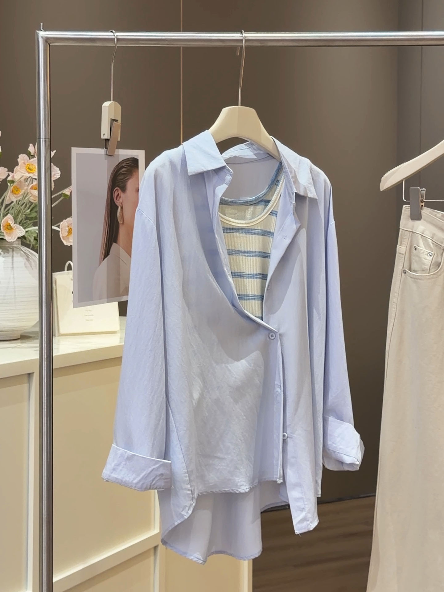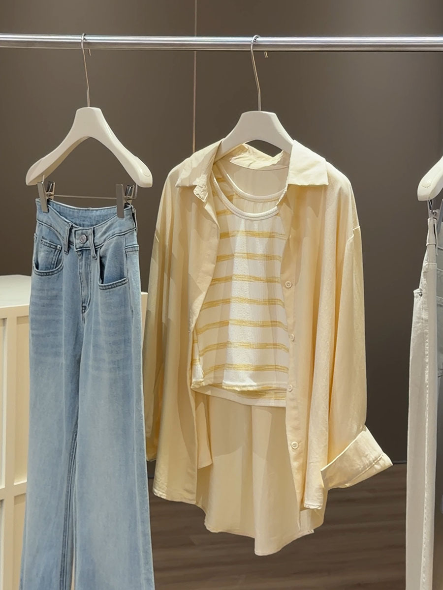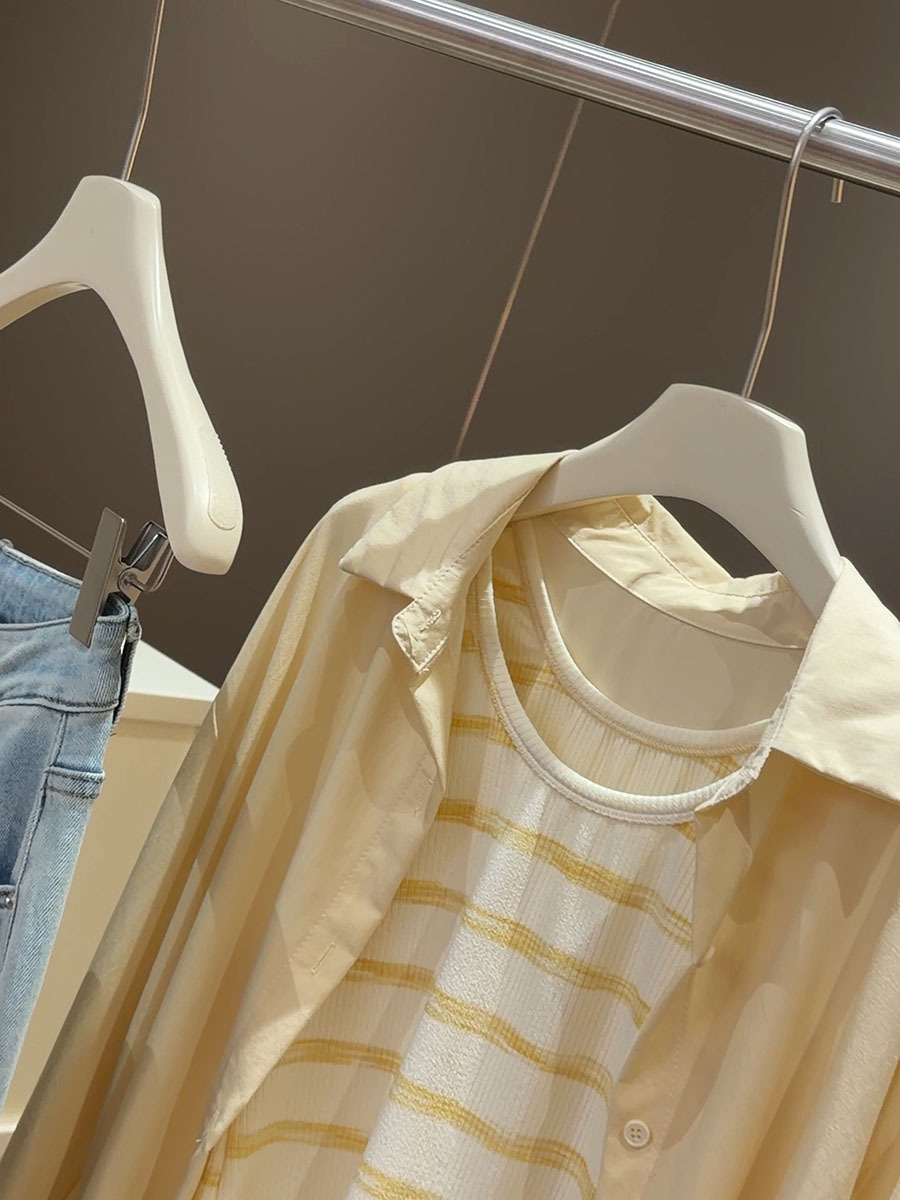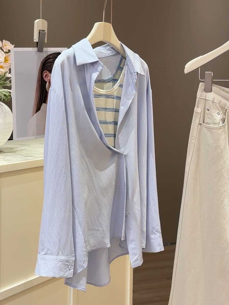 法式小众翻领衬衫 女夏季设计感洋气两件套显瘦衬衣 防晒开衫配吊带两件套