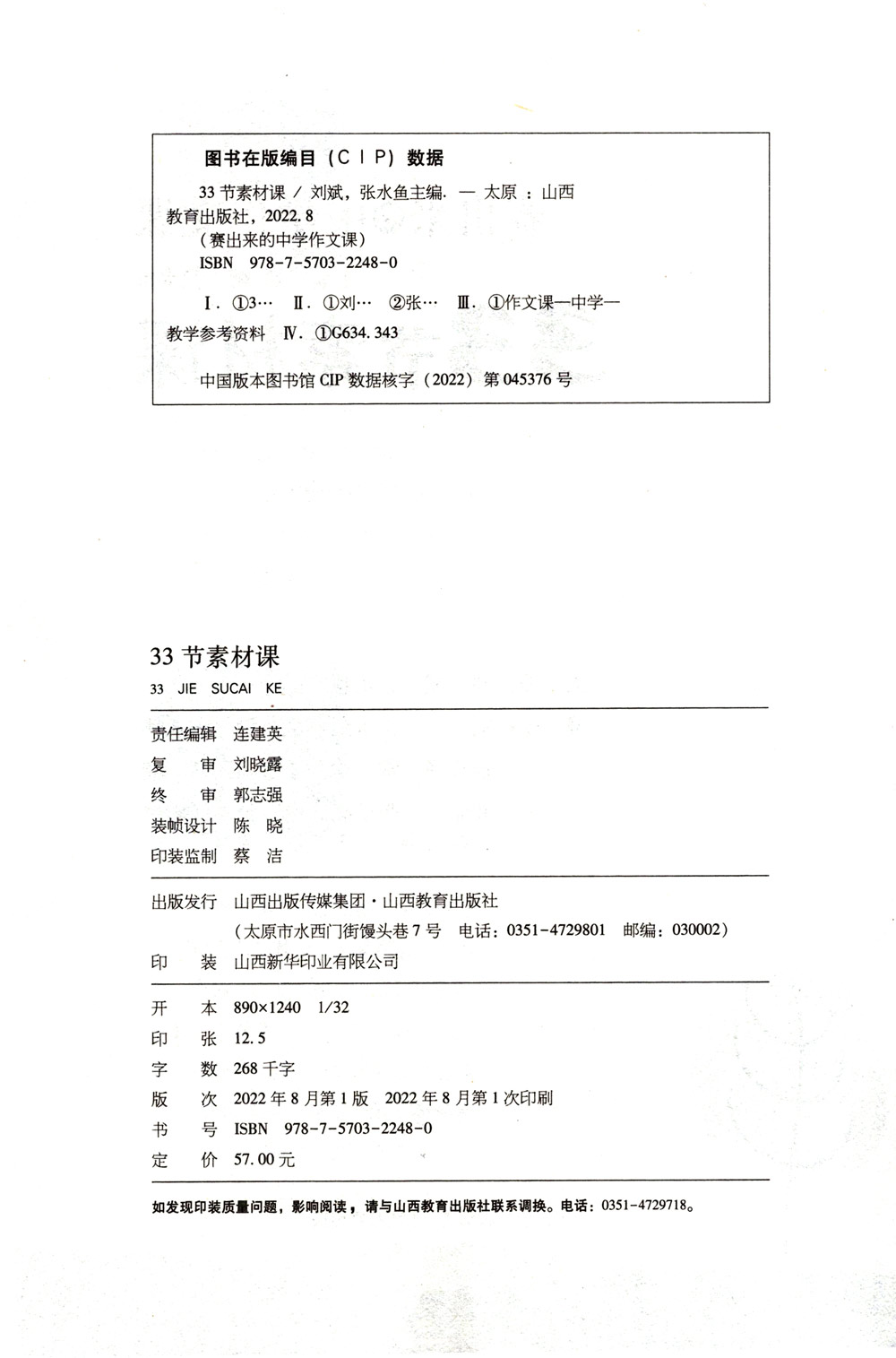 正版 33节素材课 中学作文课 刘斌 张水鱼主编 山西教育出版社出版