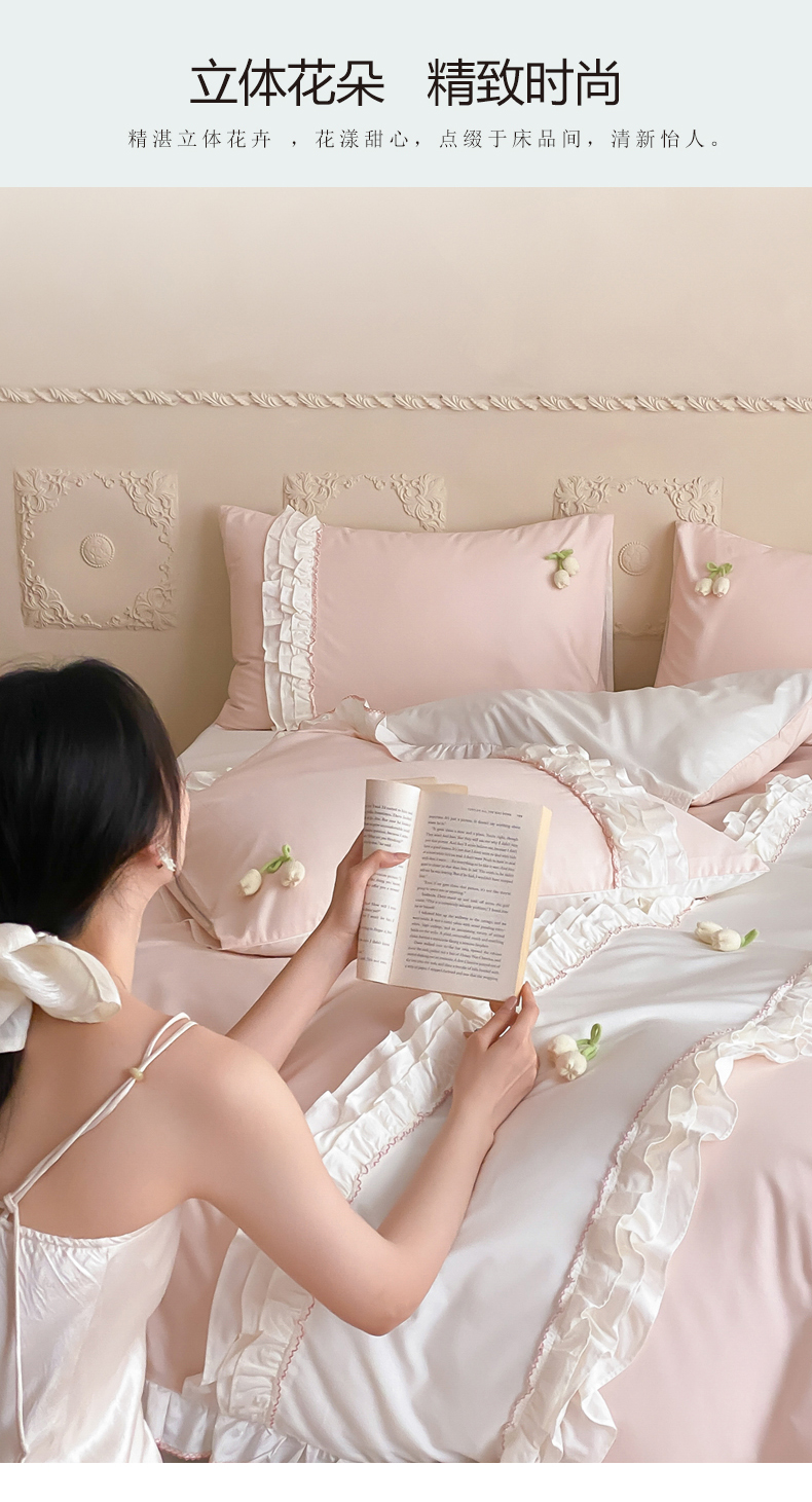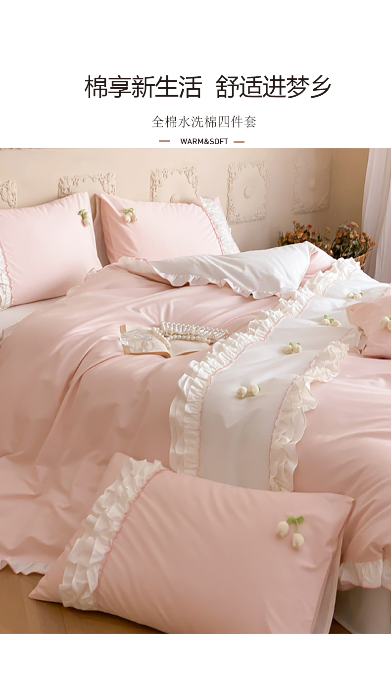 自然醒全棉床上四件套100纯棉小清新被套床笠宿舍卡通床单三件套床品NH128