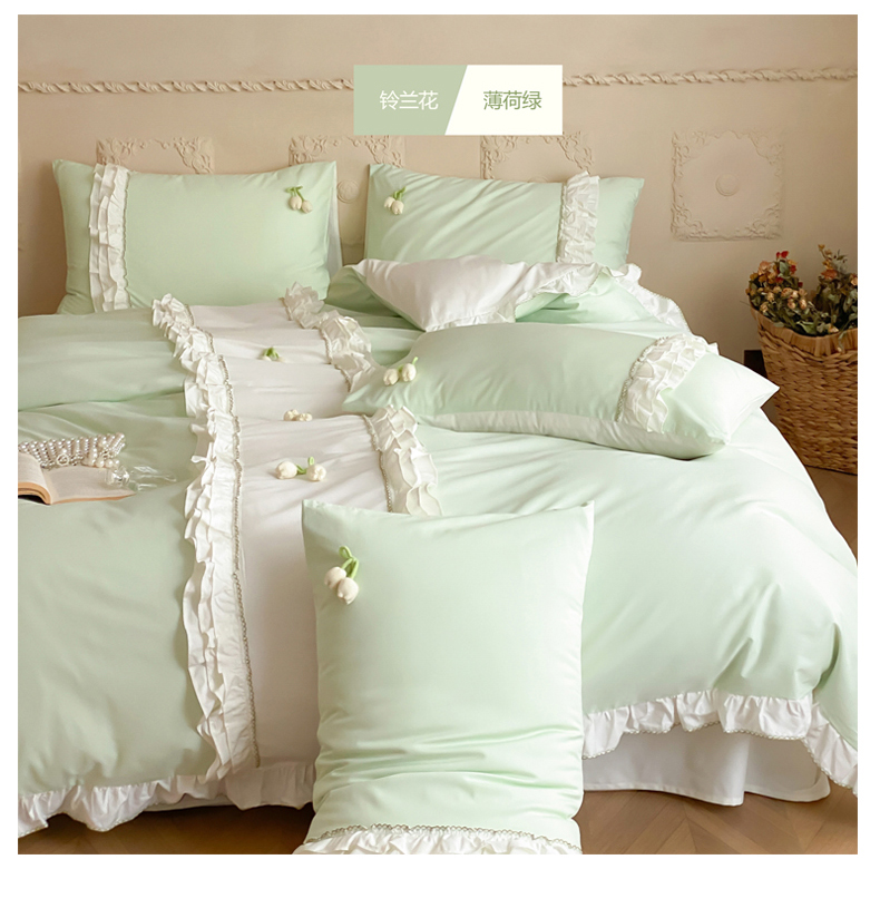 自然醒轻奢高端60支长绒棉刺绣床上四件套全棉纯棉100高级感床单床笠款被套三件套床品NH