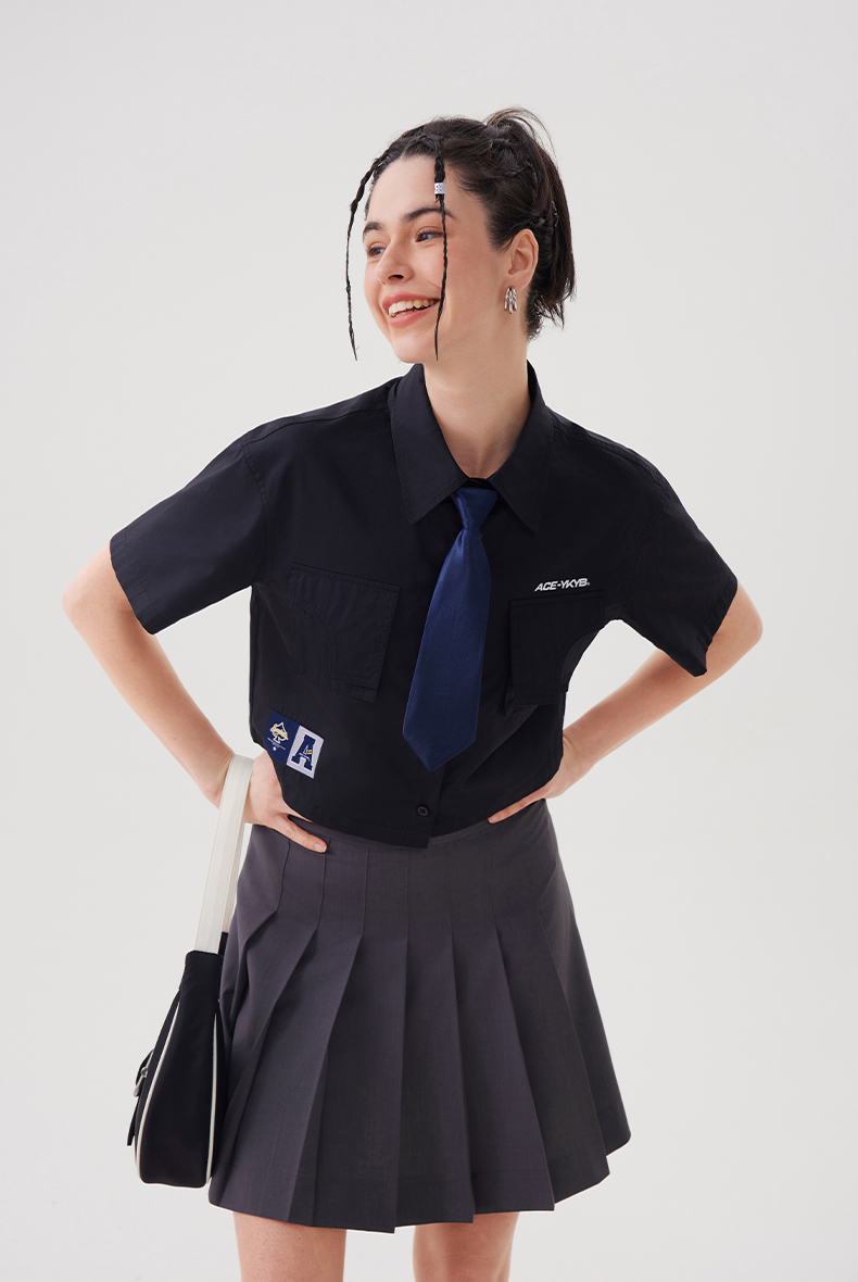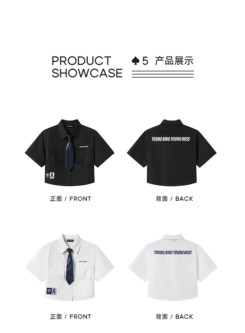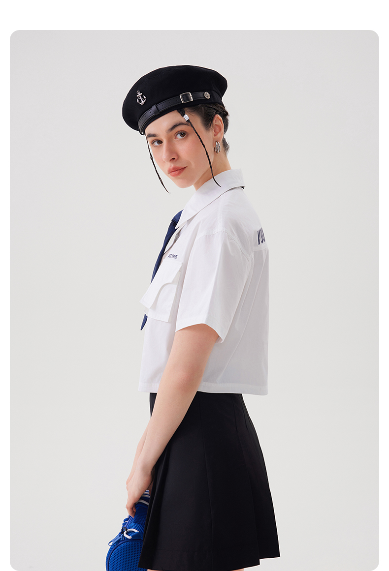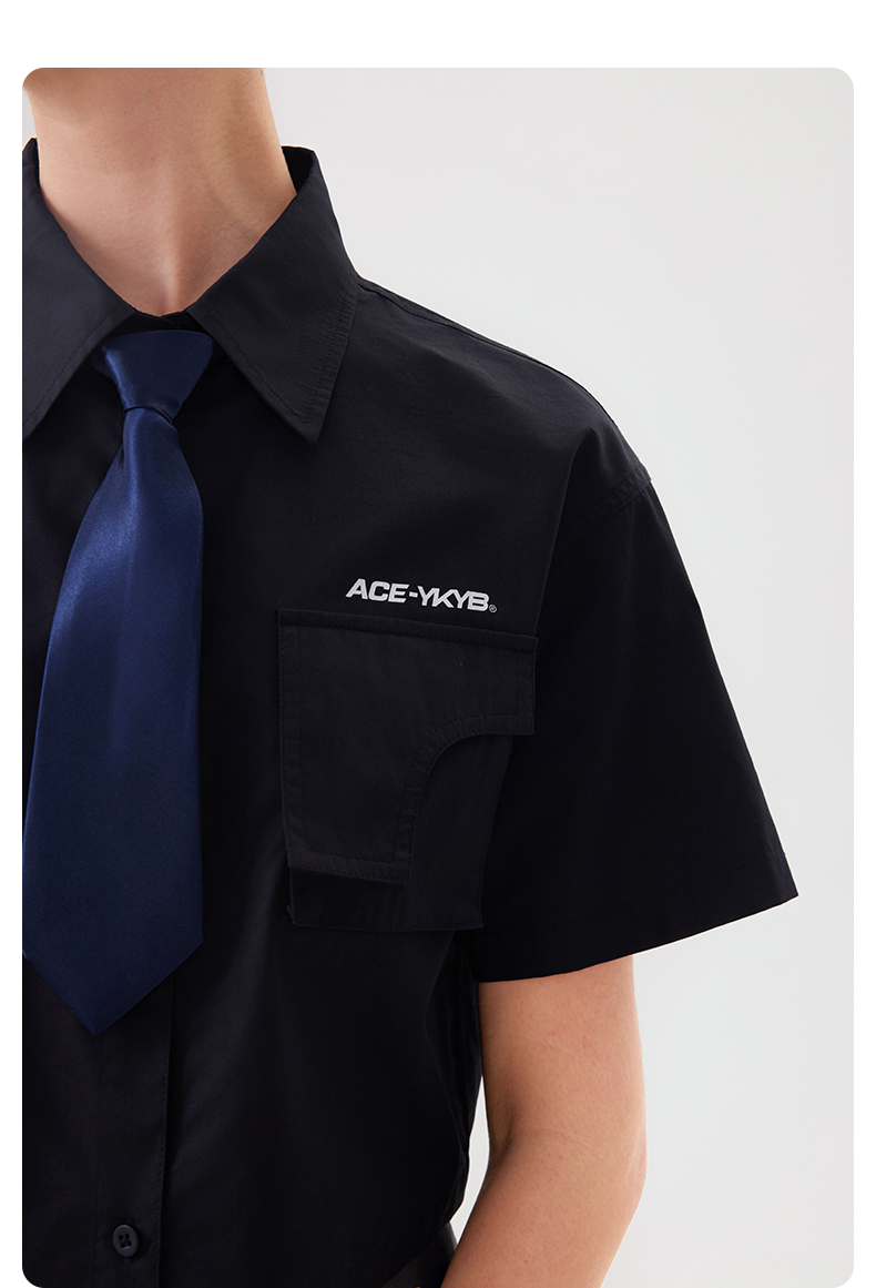 YKYB 23SS复古学院风短款衬衫女撞色领带可拆卸上衣休闲百搭潮